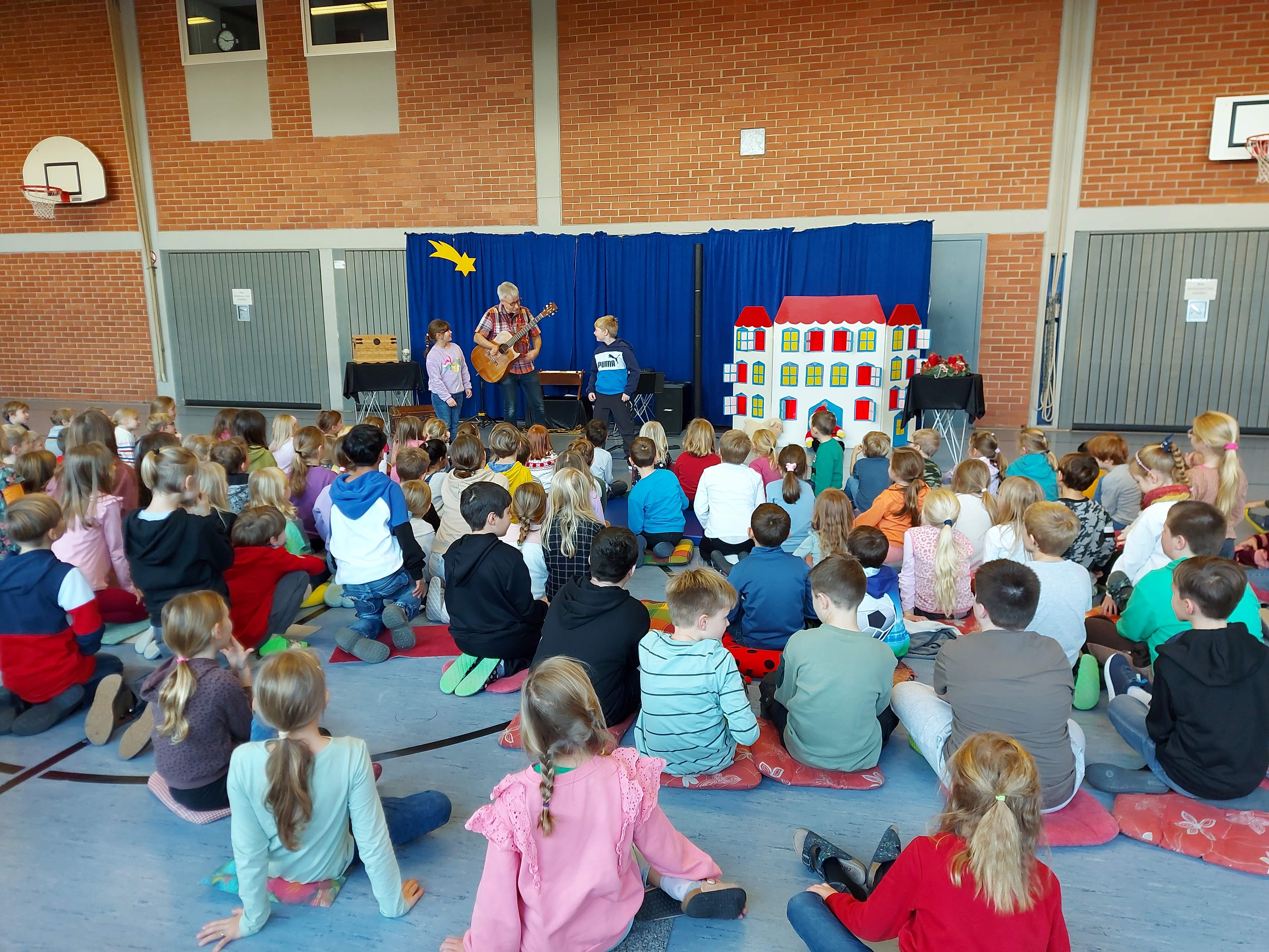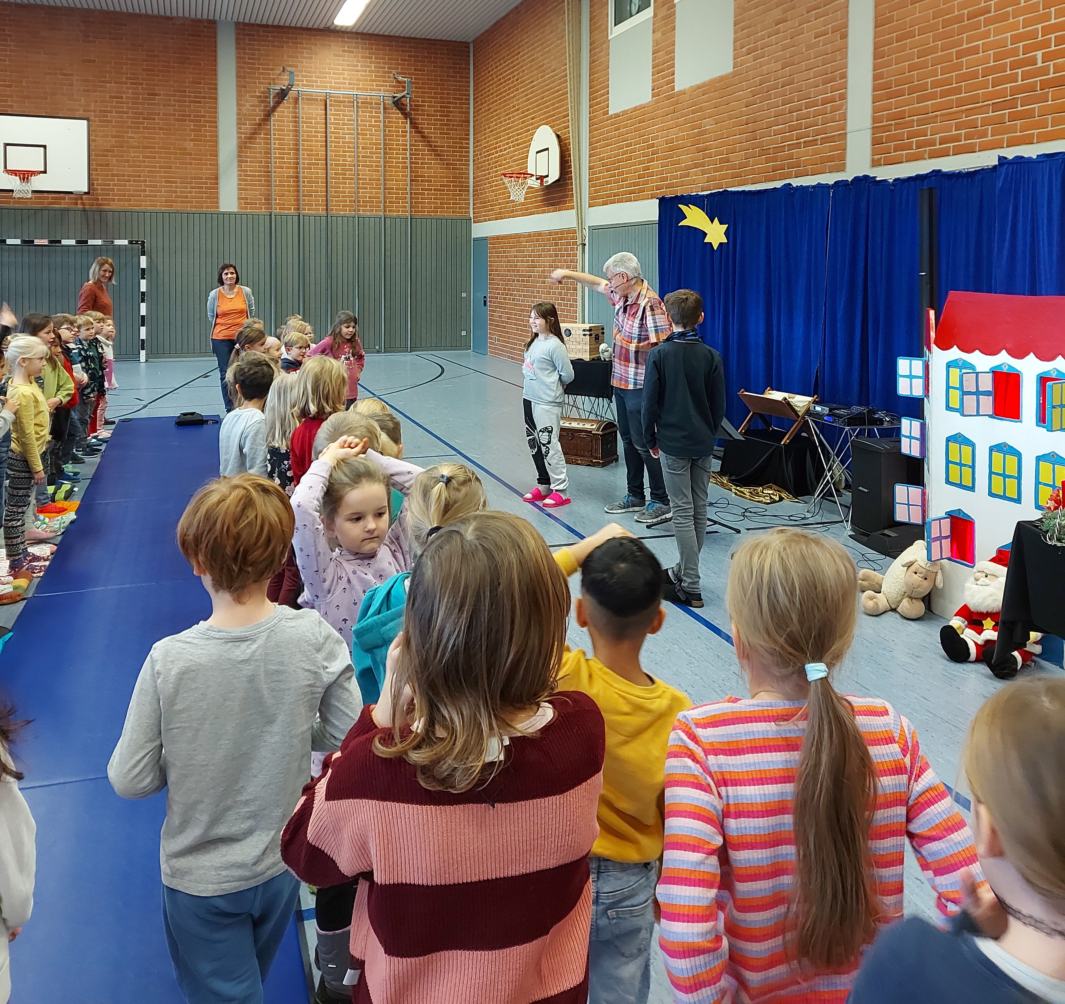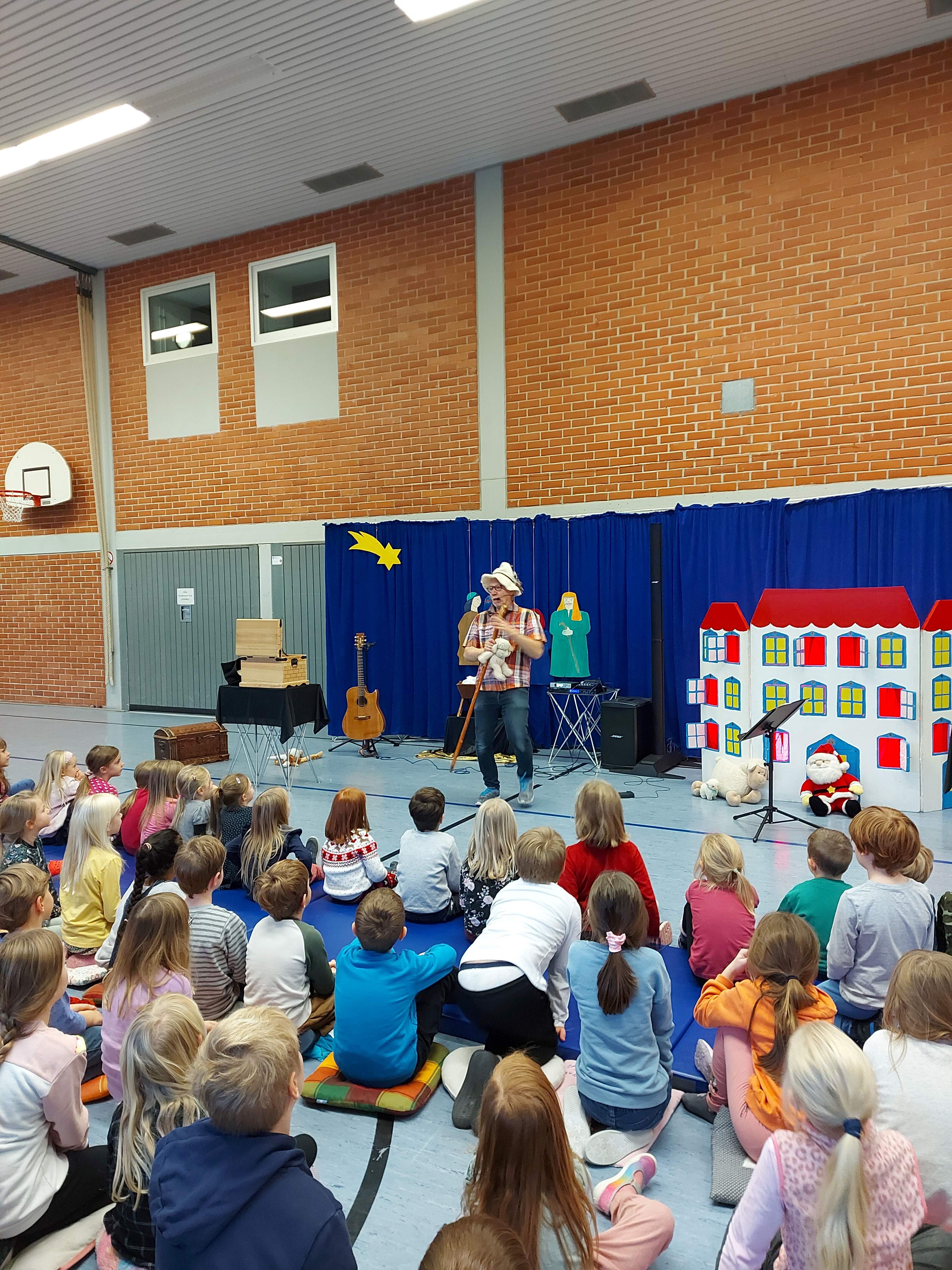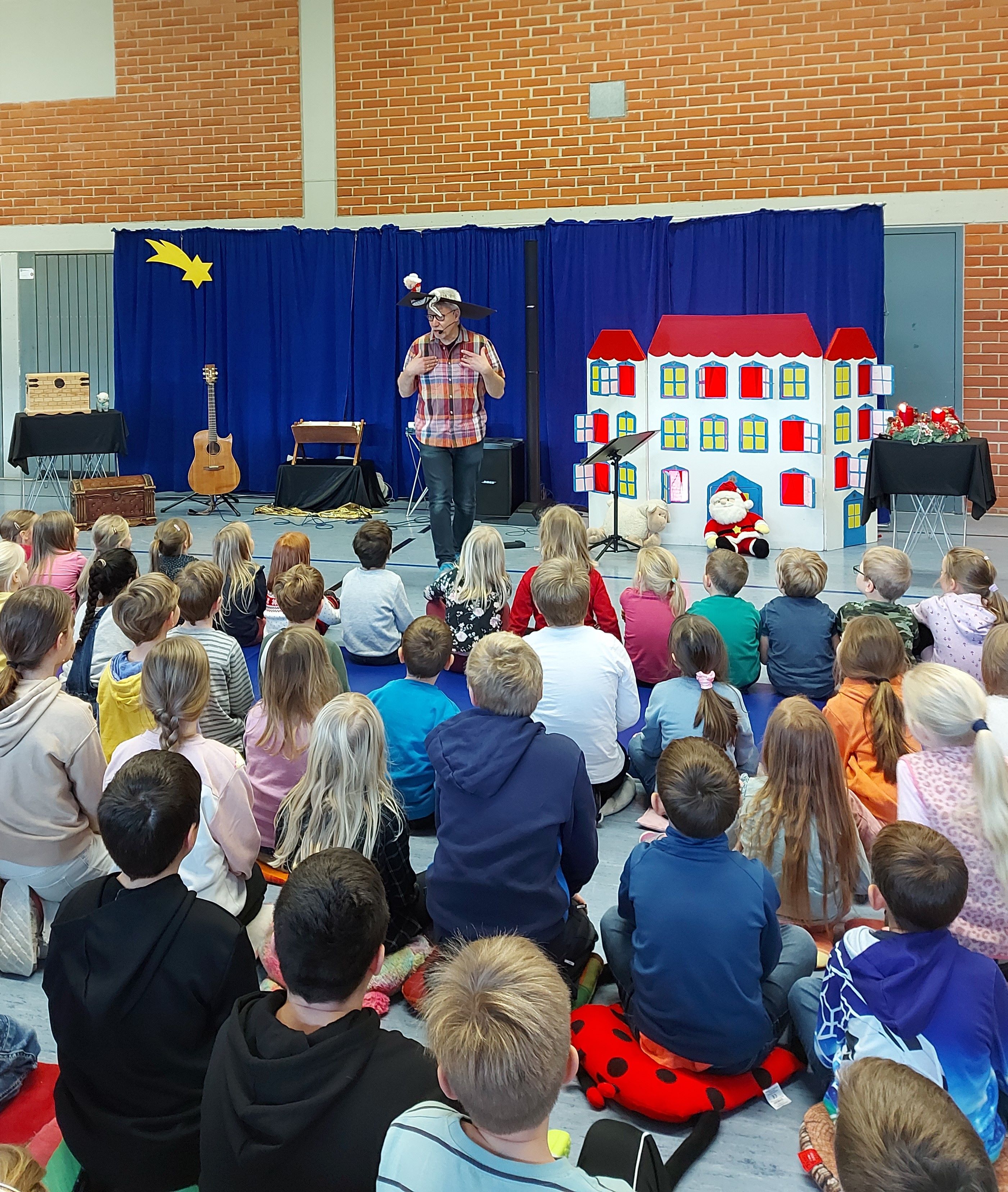 Bei dem einstündigen Konzert lud der Kinderliedermacher Uwe Lal Klein und Groß zum Lachen, Mitsingen und -bewegen ein. Vor weihnachtlicher Kulisse hielt der Musiker so manche Überraschung bereit. Als besonderer Gast trat „Holzwurm Wurbel“ auf, der mit seinem „Wurbel-Rap“ die Weihnachtsgeschichte erzählte. Mit diesem und anderen Liedern und Geschichten stimmte uns Uwe Lal auf das anstehende Fest der Liebe ein.