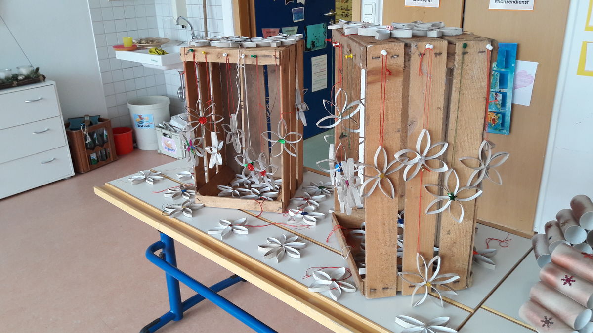 Bei unseren Herbstprojekttagen zum Thema „Müll“ hatten unsere Schüler verschiedene Dinge aus Müll gebastelt. So entstanden z.B. aus alten Unterhemden individuelle Tragetaschen, aus Gläsern stimmungsvolle Windlichter und aus leeren Dosen witzige Insektenhotels. Beim Basar an unserer Weihnachtsfeier konnten diese Sachen mit einer Spende erworben werden. Der Ansturm war groß und viele schöne Teile wurden an diesem Abend verkauft. Bereits im Vorfeld hatten wir uns entschieden, die möglichen Einnahmen für einen guten Zweck zu spenden. Am letzten Schultag übergaben Rektorin Monika Baumgarten und Steffi Gunzelmann im Beisein aller Schüler den stolzen Betrag von 400 € an Regina Herath von der Geschwister-Gummi-Stiftung in Kulmbach. Damit soll Kindern, die Weihnachten nicht in der Geborgenheit einer Familie verbringen können, eine Freude bereitet werden. Ein großer Dank an alle fleißigen Spender!