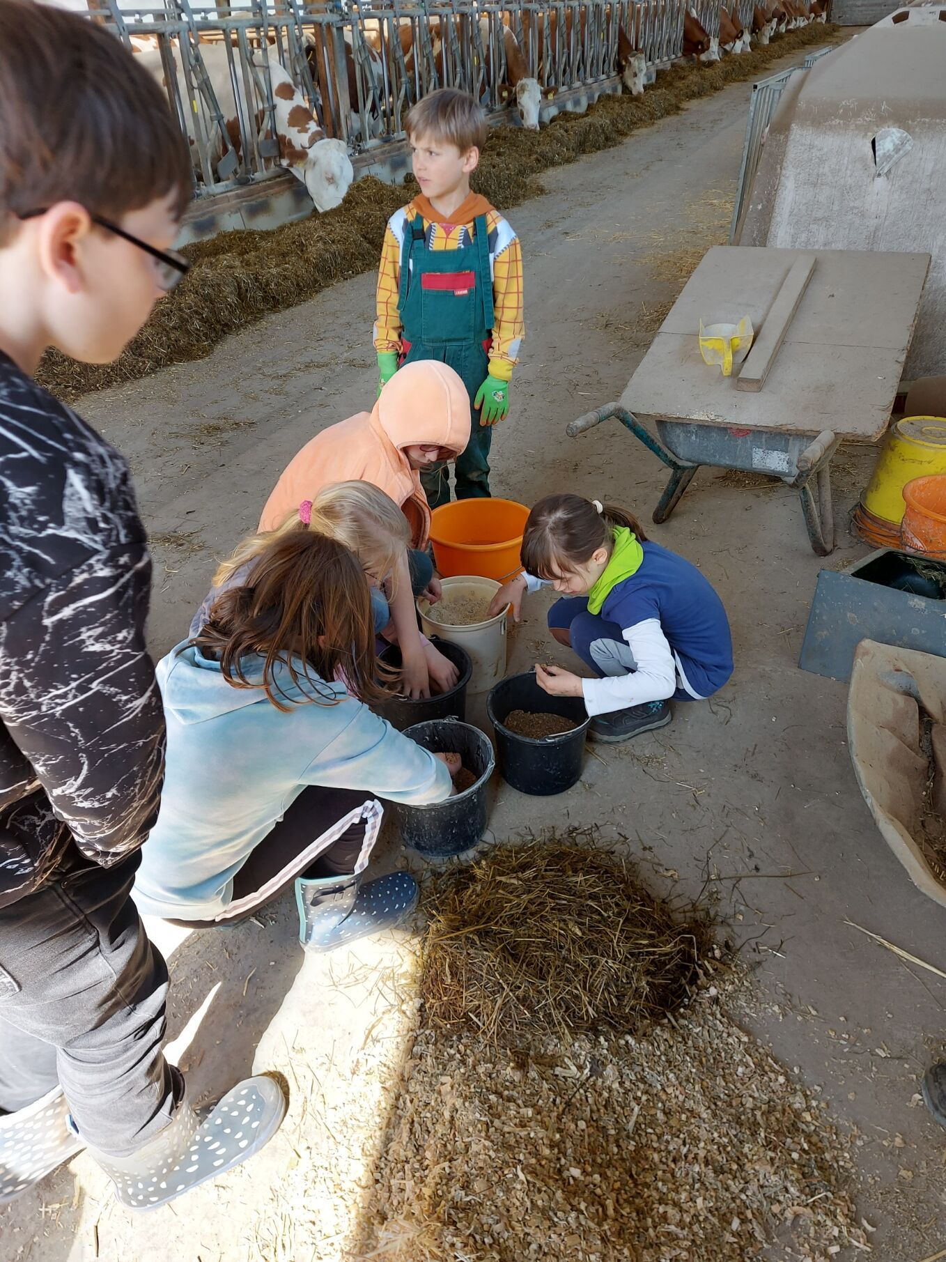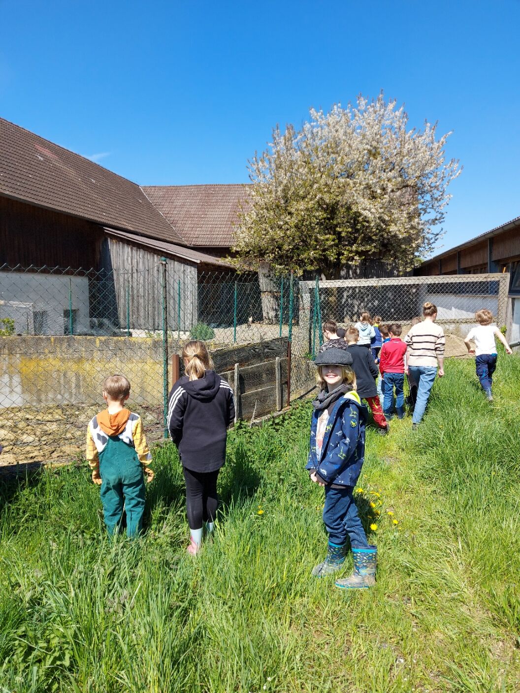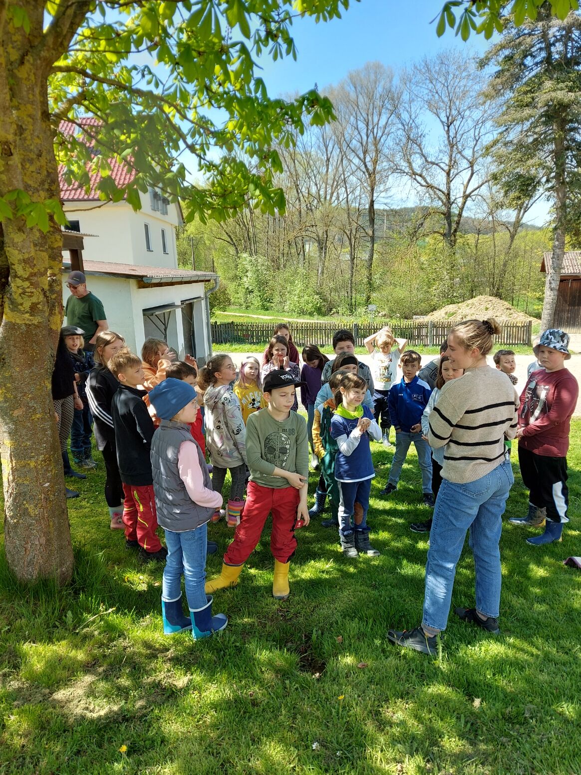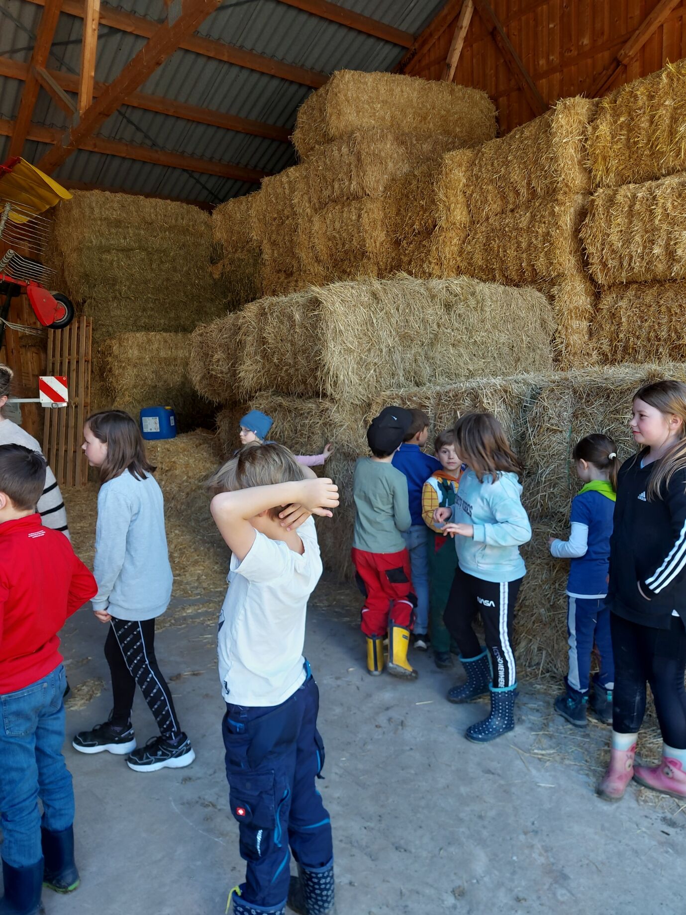 Im Rahmen des Projektes "Brücken.bauen" besuchten wir mit 30 Kindern den Bauernhof der Familie Täuber in Thurnau. In zwei Gruppen stellten uns Herr Täuber und seine Tochter Sandra ihren Hof vor. Sie zeigten uns die Ställe mit den Kühen und erklärten uns, wofür die vielen Maschinen benötigt werden, was ihre Kühe fressen und wie die Milch in den Tank gelangt. Zum Abschluss gab es einen gesunden Imbiss aus leckeren Milchprodukten und selbstgebackenem Kuchen für alle. Bei strahlendem Sonnenschein endete unser Ausflug mit einem gemütlichen Picknick und einem Geschenk für die kleinen Besucher. Vielen herzlichen Dank an Familie Täuber für diesen schönen Nachmittag!