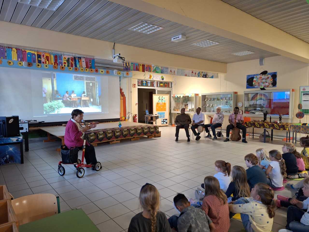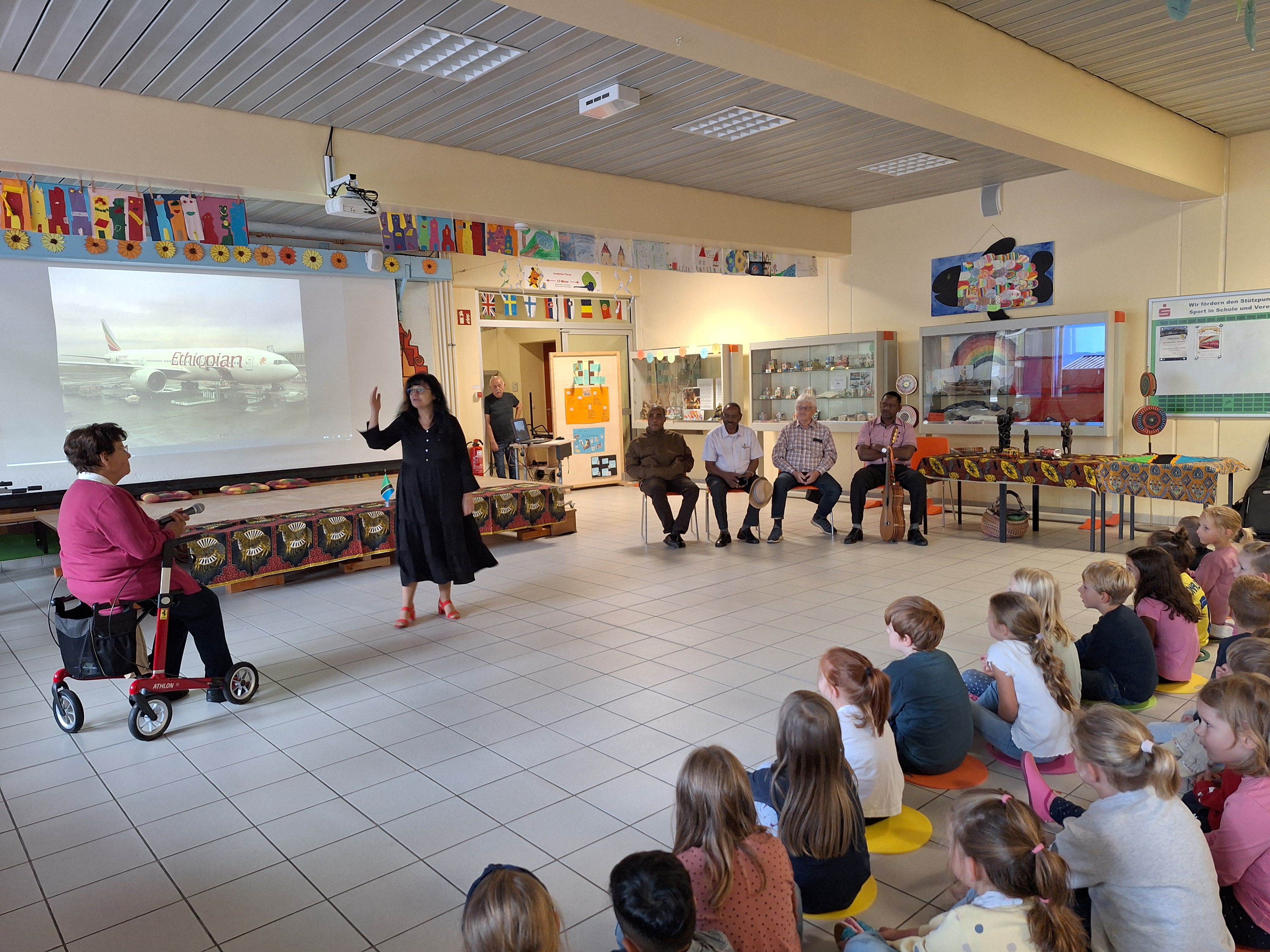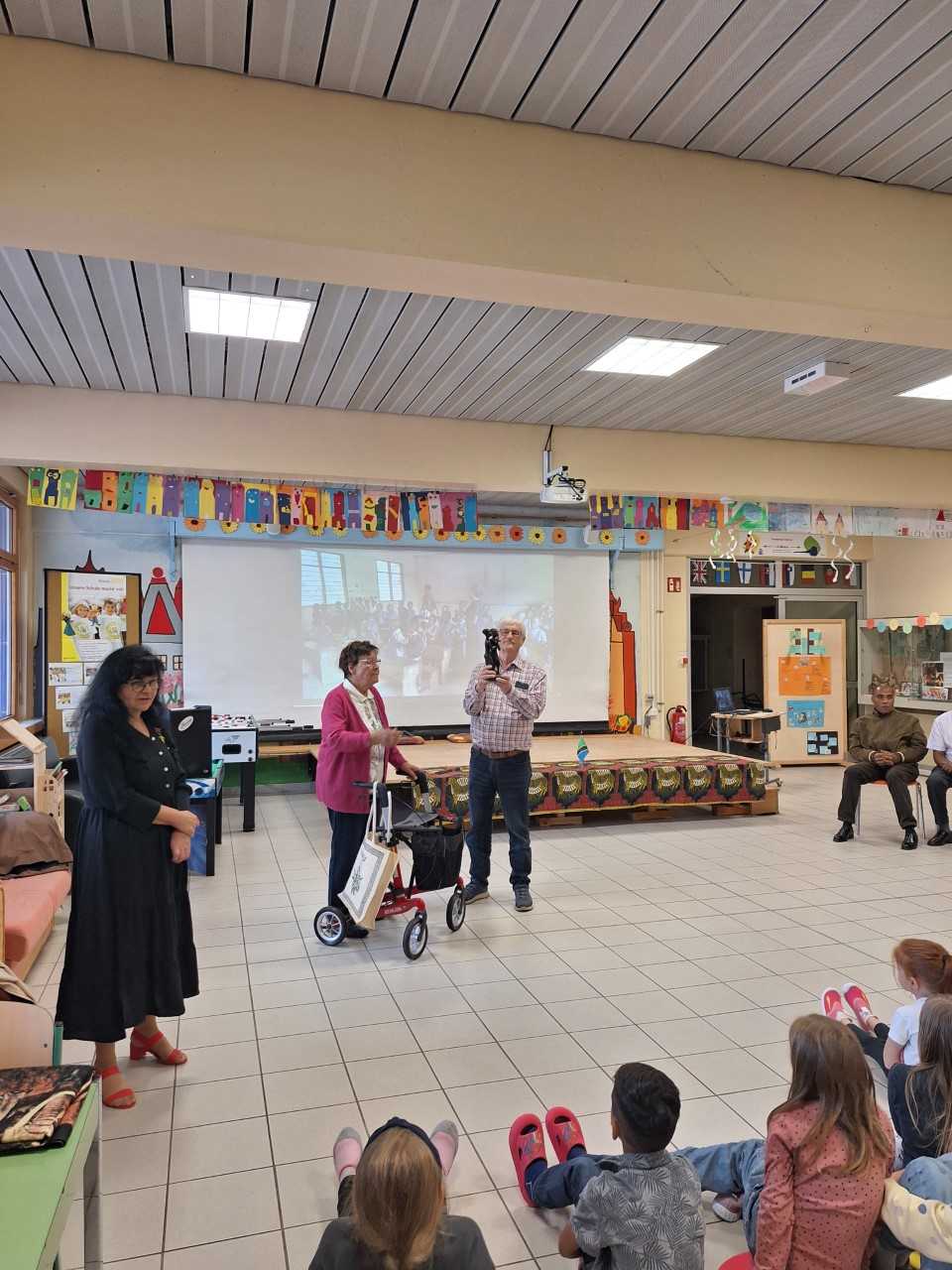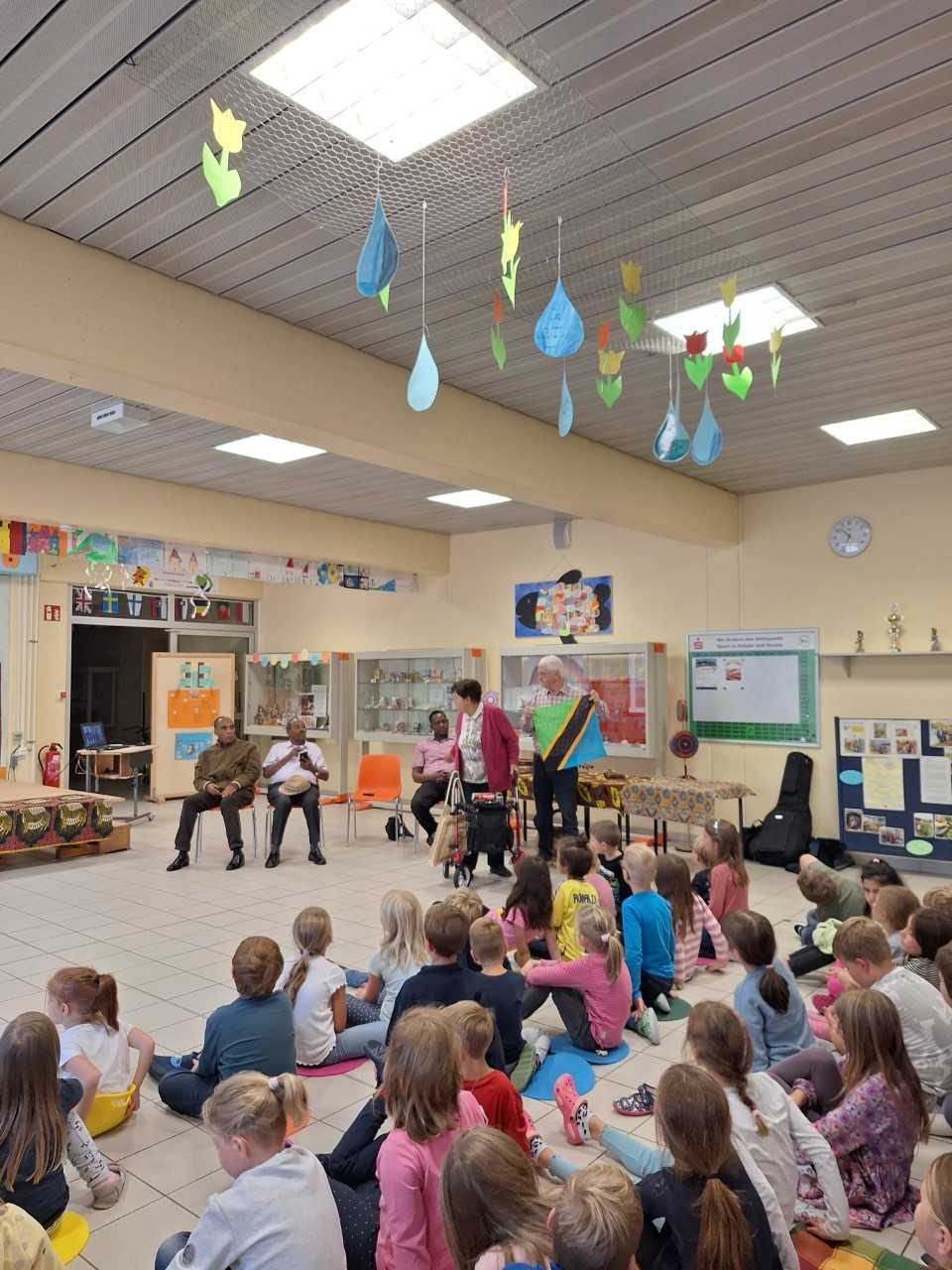 Seit vielen Jahren gibt es bereits eine Partnerschaft unserer Schule mit einem Kindergarten in Tanga. Mit Spenden (z.B. Weihnachtsfeier) unterstützen wir z. B. die Versorgung der Kinder mit einer warmen Milchmahlzeit am Tag. Im September war es dann wieder so weit, eine kleine Delegation aus Tansania besuchte, gemeinsam mit Frau Fisch, unsere Grundschule. Die Gäste aus Tanga zeigten Bilder aus ihrer Heimat, sangen gemeinsam mit uns Lieder und berichteten über die Verwendung der Spendengelder. Als Dankeschön brachten sie eine wunderschöne Holzskulptur und ein handgefertigtes Tuch für uns mit. Vielen Dank an das Dekanat Selb!