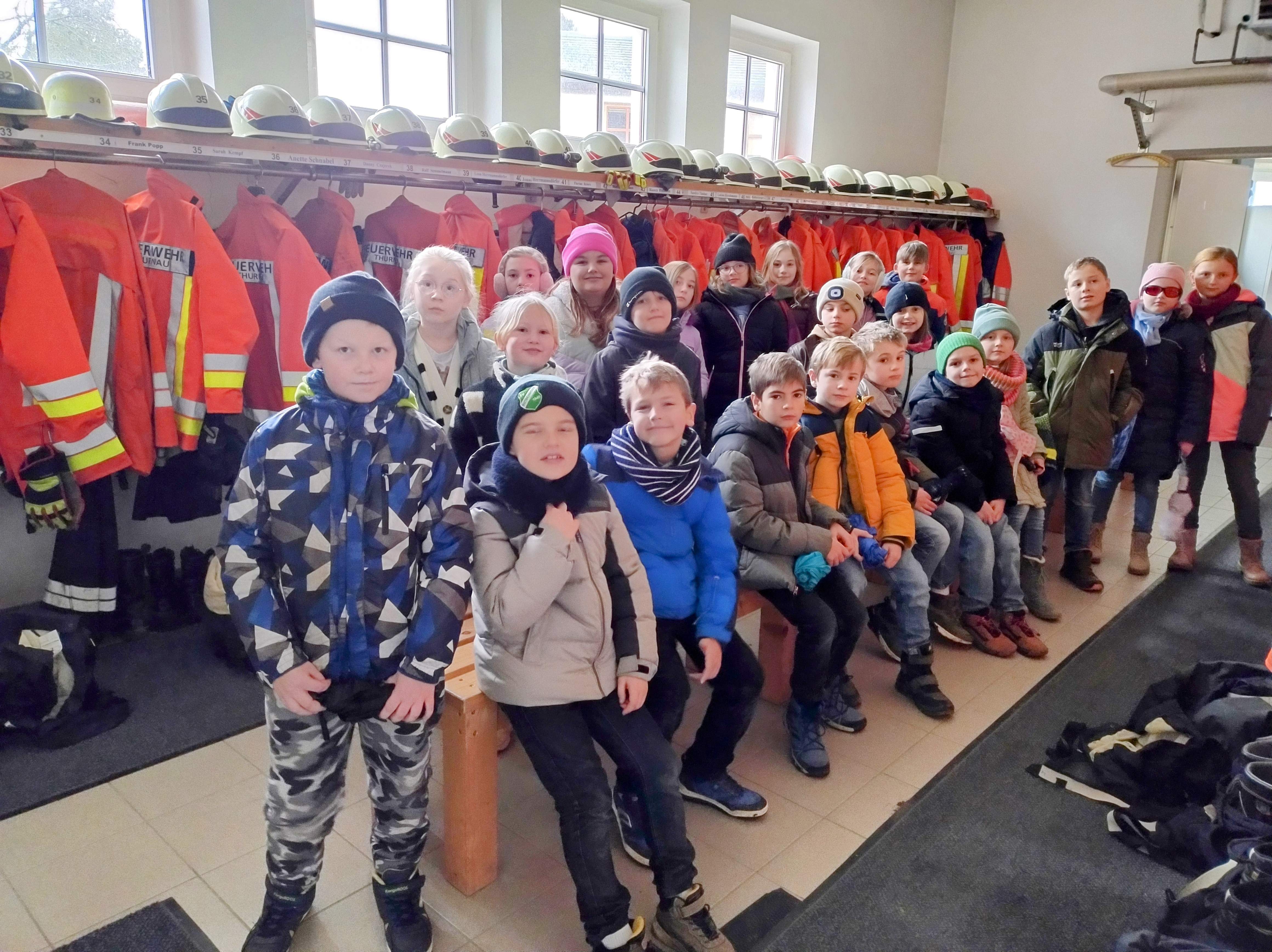 Im Rahmen des Heimat- und Sachunterrichts zum Thema Feuer besuchte die Klasse 3a die Freiwillige Feuerwehr Thurnau. Die Schülerinnen und Schüler durften sich im Umkleideraum umsehen und die Schutzanzüge der Feuerwehrleute genau betrachten. Danach zeigte Kommandant Jörg Schneider die Feuerwehrautos, in die sich die Kinder sogar hineinsetzen konnten. Anschließend beantwortete er geduldig alle Fragen. Zum Schluss fuhr er noch das große Feuerwehrauto mit der Drehleiter heraus und zeigte, wie hoch man die Leiter ausfahren kann. Ein sehr interessanter Ausflug! Vielen Dank an das Team der Feuerwehr Thurnau!