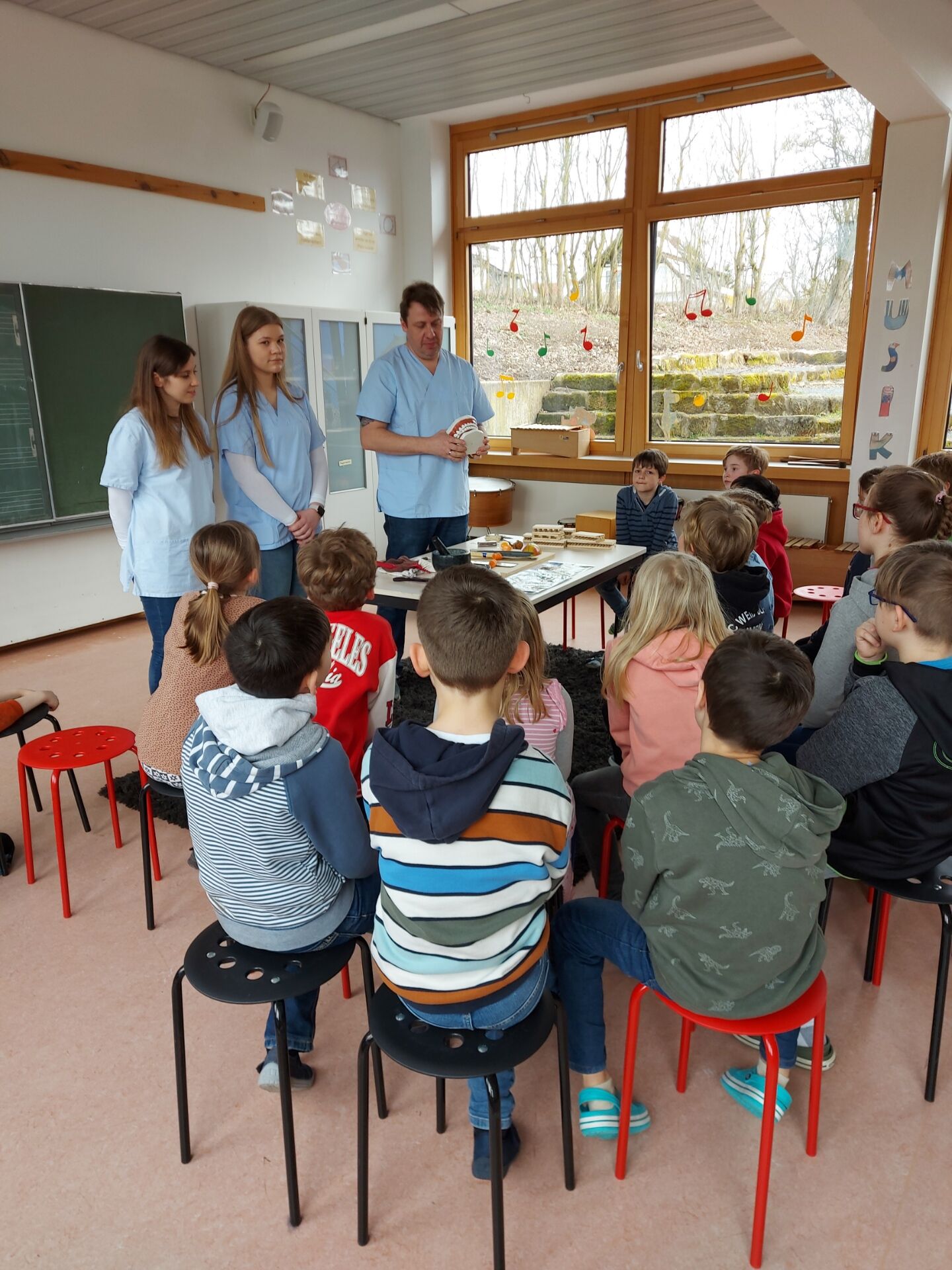 Der Thurnauer Zahnarzt Moritz Weigel besuchte mit seinem Team wieder unsere Grundschule und erklärte uns anschaulich, wie wichtig die Pflege und Gesunderhaltung unserer Zähne ist. Zum Abschied gab es für jeden ein Zahnputzset als Geschenk. Vielen Dank an das ganze Team!