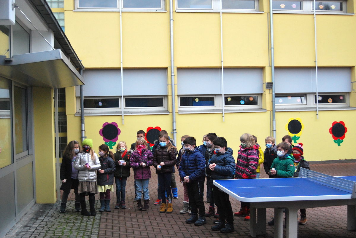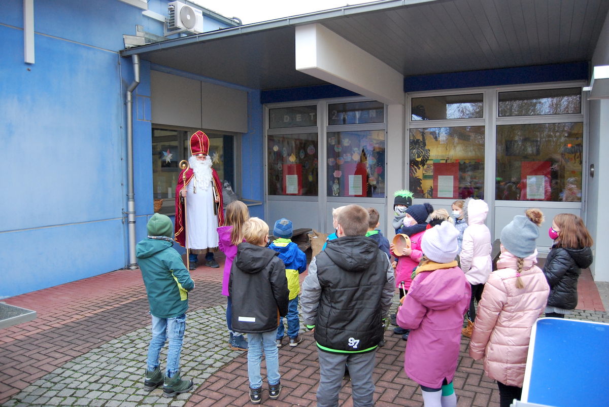 Die Augen unserer Erst- und Zweitklässler waren groß, als im Pausenhof der Nikolaus auf sie wartete. Da der Nikolaus alles sieht und weiß, wusste er ganz viel Gutes über unsere Schüler zu berichten. Im goldenen Buch standen aber auch gaaaanz wenige Sachen, die ihm keine Freude machen. Doch mit ihren Liedern und Gedichten konnten die Schüler den Nikolaus begeistern und es gab für jedes Kind ein liebevolles Geschenk. Natürlich bekamen auch unsere "Großen" Geschenke vom Nikolaus. Ein herzliches Dankeschön an den Nikolaus und seine fleißigen Helferlein!