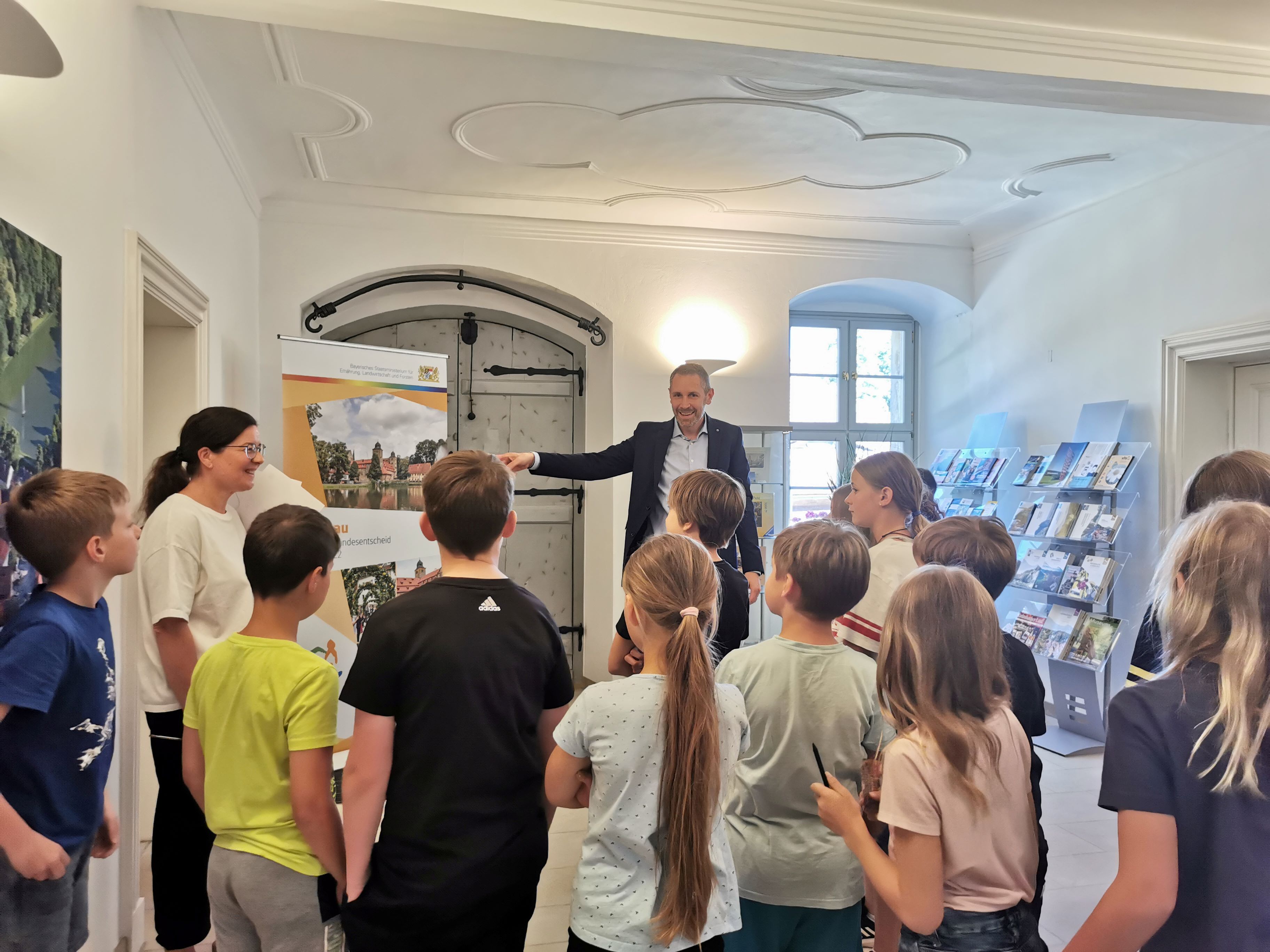 Mit ihrer Klassenlehrerin unternahm die Klasse 4a einen Unterrichtsgang ins Rathaus. Die Kinder wurden von Bürgermeister Martin Bernreuther herzlich empfangen. Ausführlich beantwortete er im großen Sitzungssaal die vielen Fragen der Schüler*innen. Beim anschließenden Rundgang durch die Ämter konnten die Kinder Einblick in die Arbeit der Mitarbeiter gewinnen. Vielen Dank für diesen informativen Vormittag!