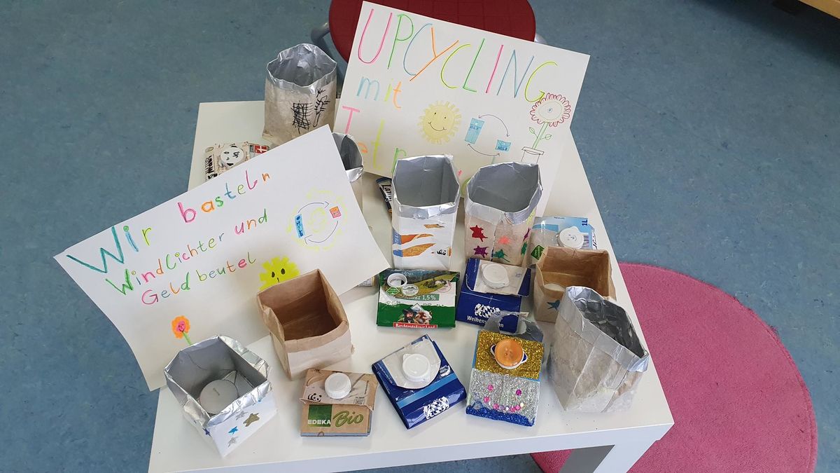 In dieser bayernweiten Projektwoche erhielten unsere Schüler/innen die Gelegenheit in kleinen Lerneinheiten und Aktionen selbst aktiv zu werden und verschiedene Aspekte einer gesundheitsförderlichen und nachhaltigen Lebensweise kennenzulernen. So wurden die Kinder zum Beispiel kreativ beim Upcycling von Tetra Pak oder widmeten sich dem achtsamen Umgang mit Rohstoffen bzw. Ressourcen der Erde. (Recycling). Eine Klasse stellte mit einigen Übungen aus der „Rückenschule“ den Aspekt der Gesundheit in den Mittelpunkt. Die Klasse 4a beschäftigte sich anhand der Erstellung und Auswertung eines Müllprotokolls mit einem möglichst umweltfreundlichen, müllvermeidenden Lebenswandel und gönnte sich zum Abschluss der Projektwoche ein nachhaltiges Frühstück: Verpackungsarm und (überwiegend) gesund!