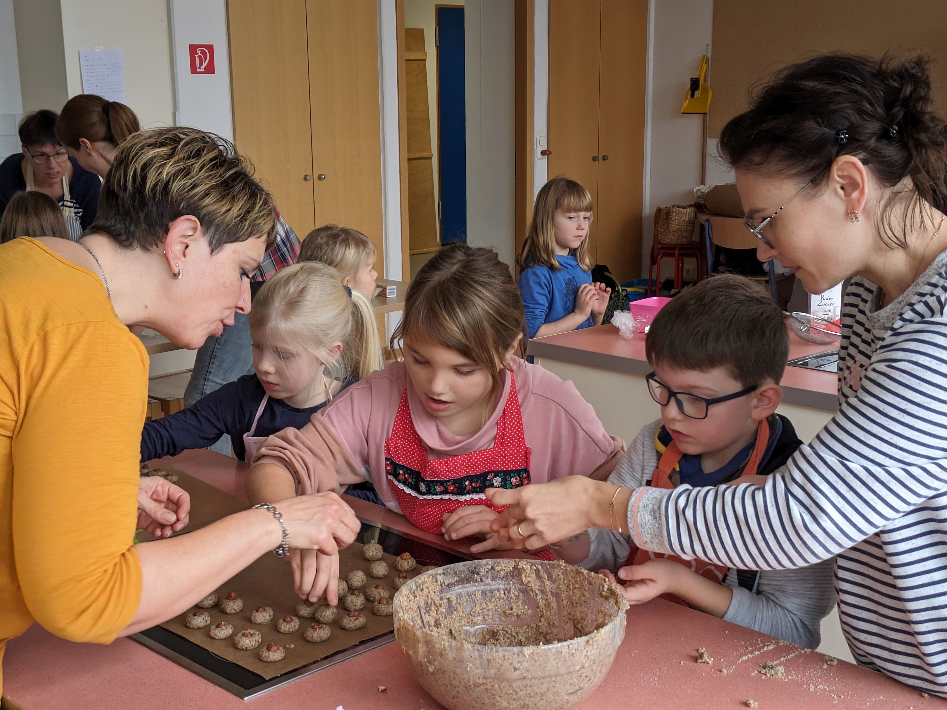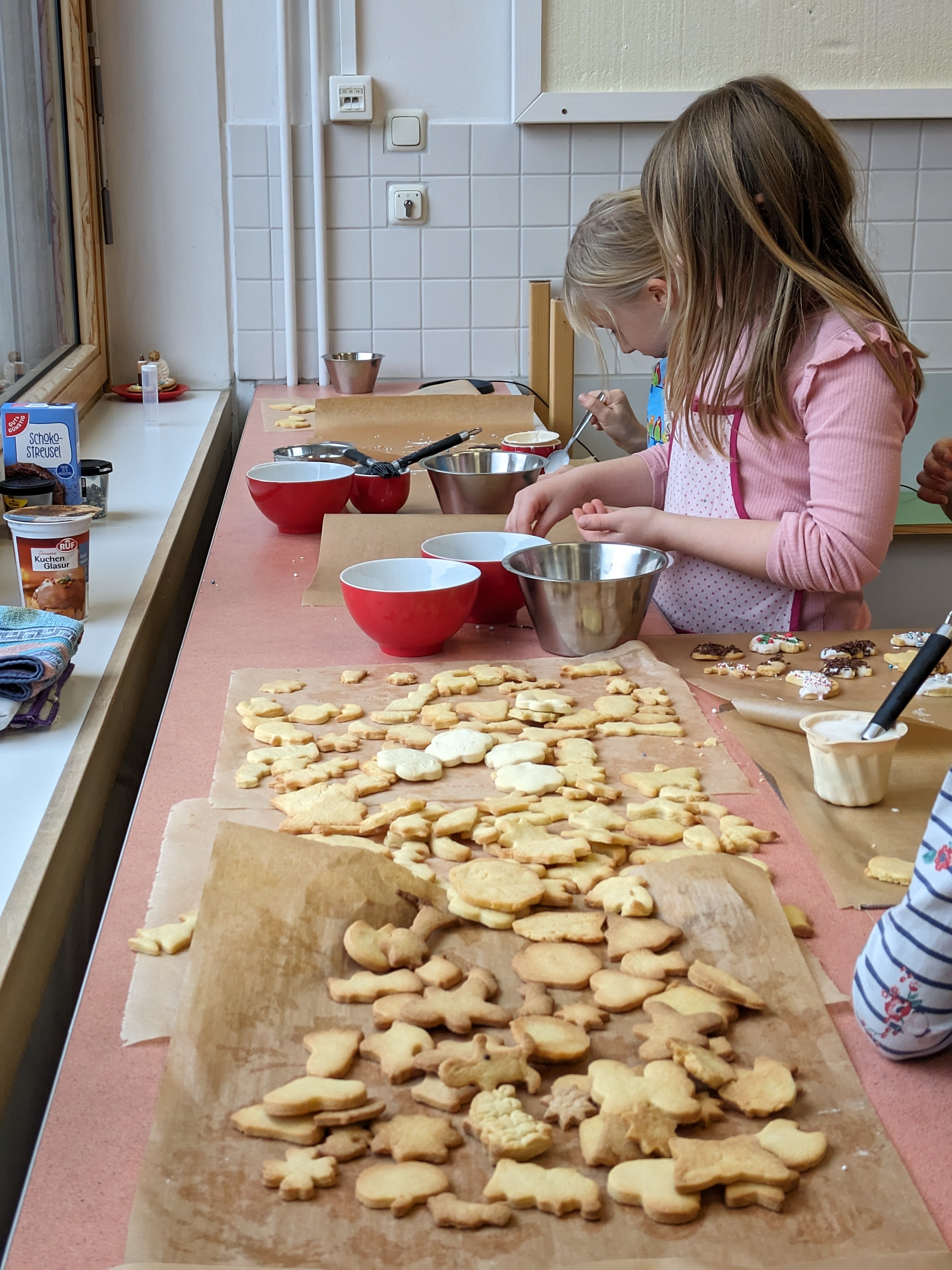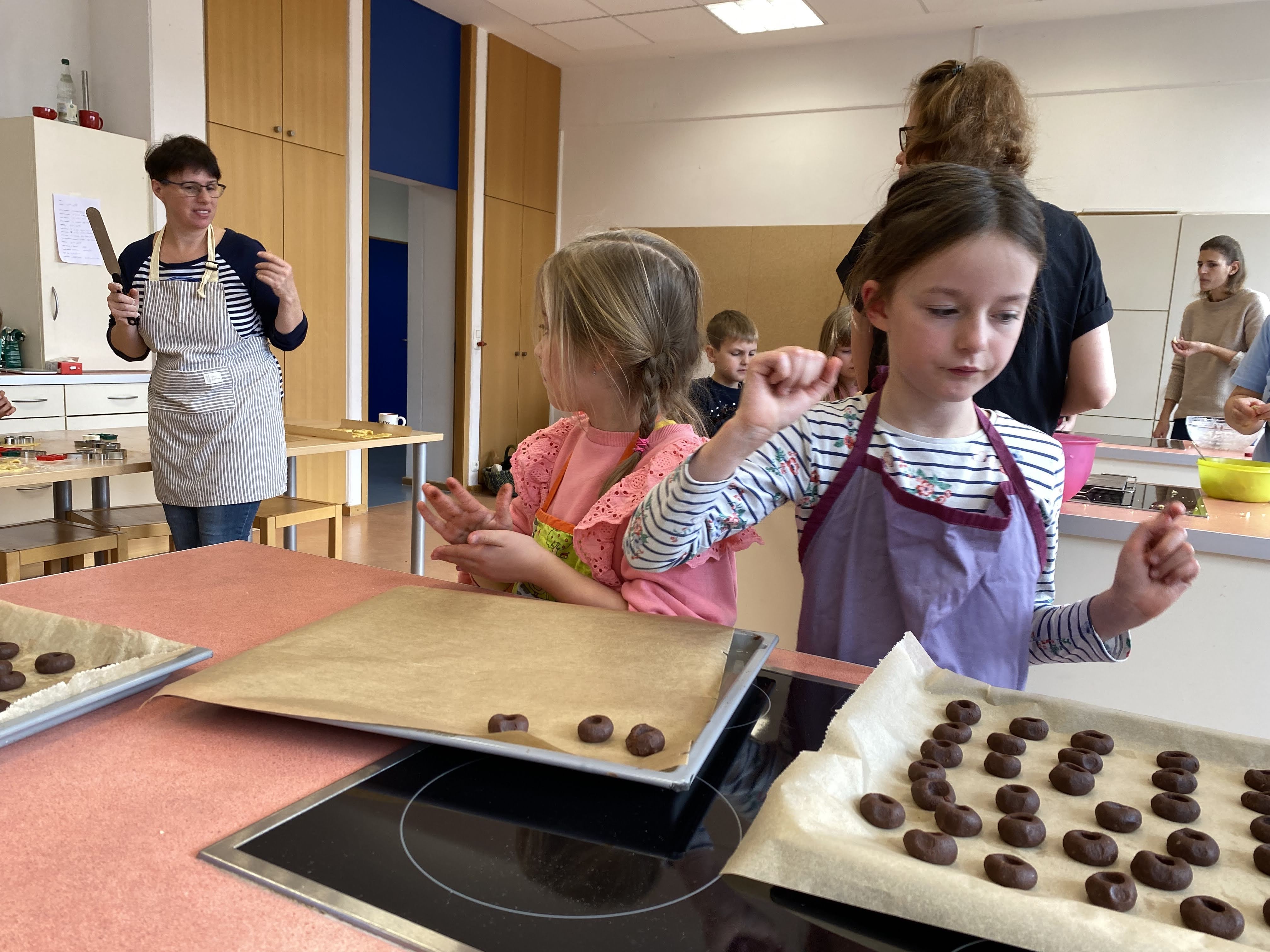 Die Vorweihnachtszeit startet bei uns mit leckerem Plätzchenduft im ganzen Schulhaus. Unser Elternbeirat hat wieder zum Backen in der Schulküche eingeladen. Viele Kinder und fleißige Bäcker*innen trafen sich Ende November und verwandelten unsere Küche in eine "Weihnachtsbäckerei". In kleinen Gruppen wurden leckere Plätzchen gebacken, hübsch verziert und natürlich genascht. Für eine dekorative Verpackung sorgten kleine Künstler zwischen den einzelnen Backladungen. Auf dem Thurnauer Weihnachtstöpfermarkt können diese Leckereien gekauft werden. Vielen Dank an den Elternbeirat und alle Helferlein für diese schöne Aktion!
