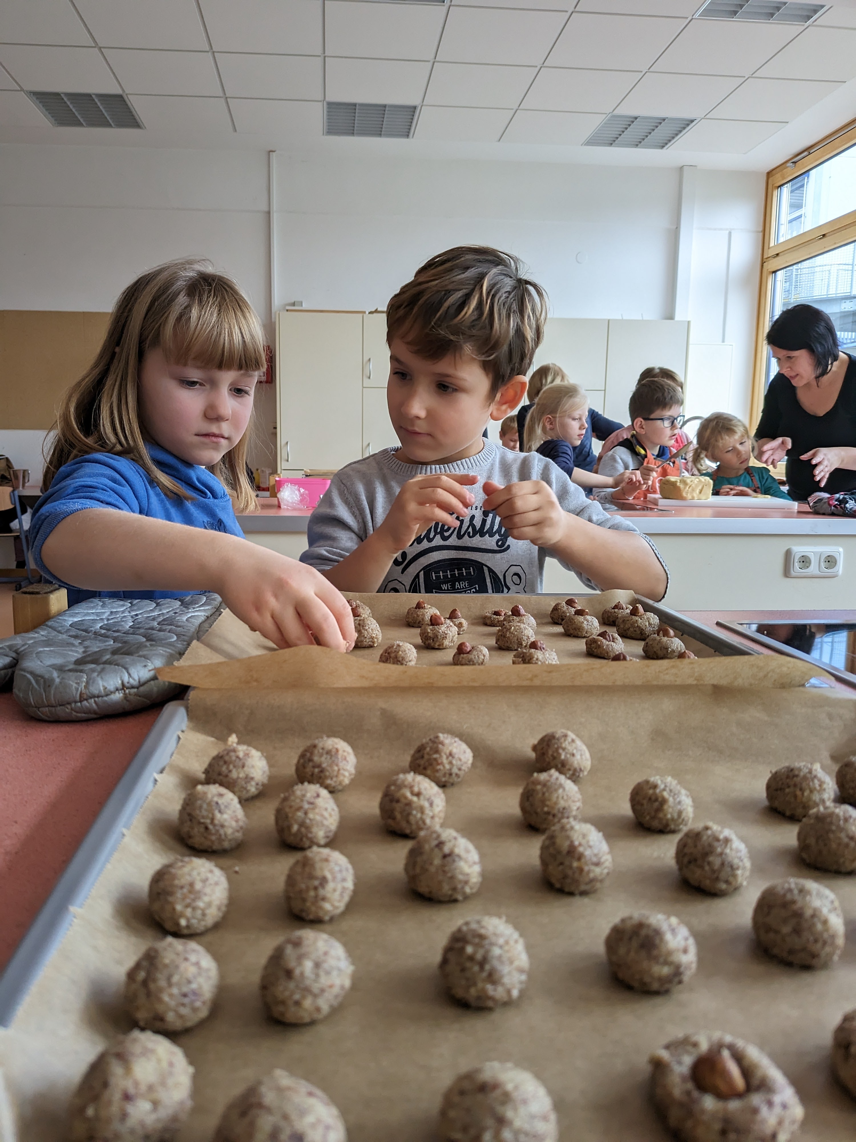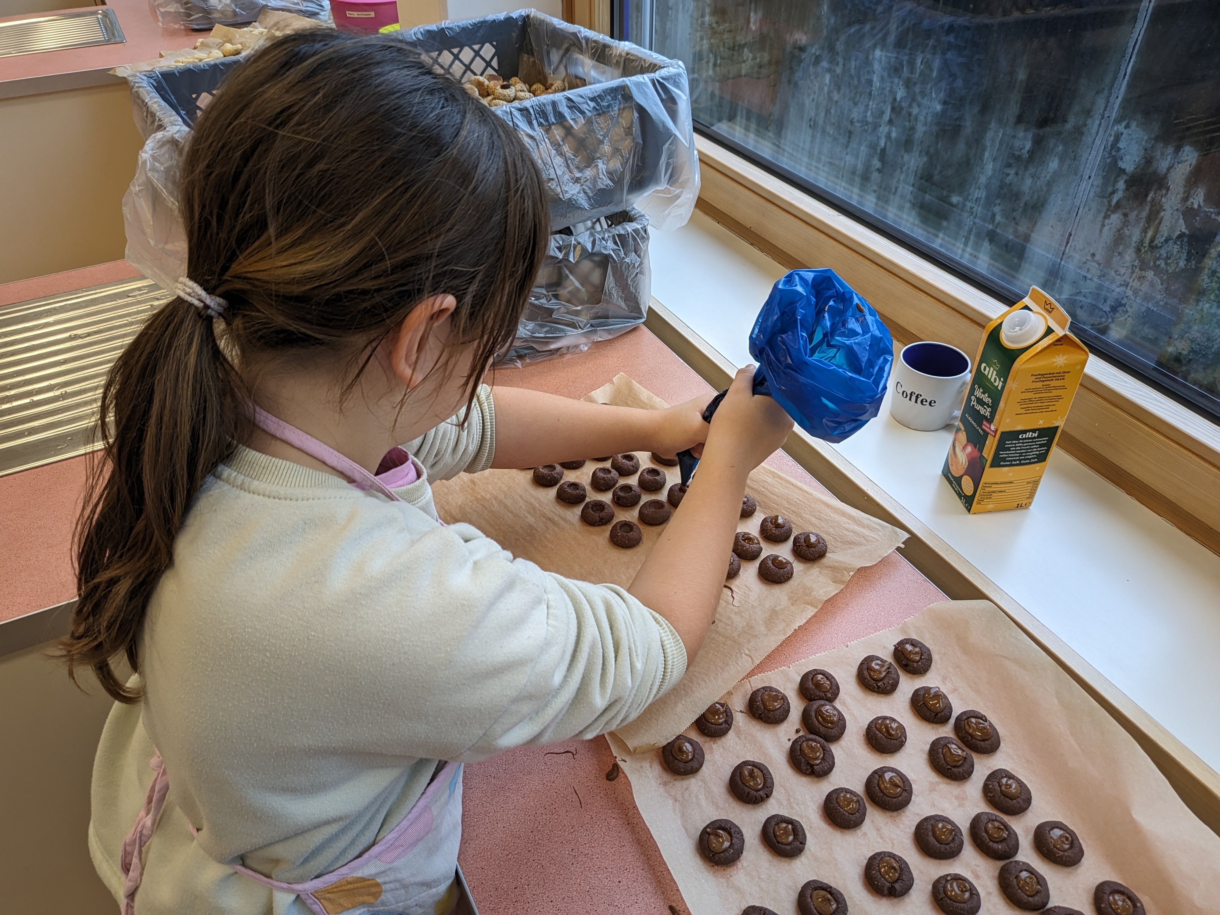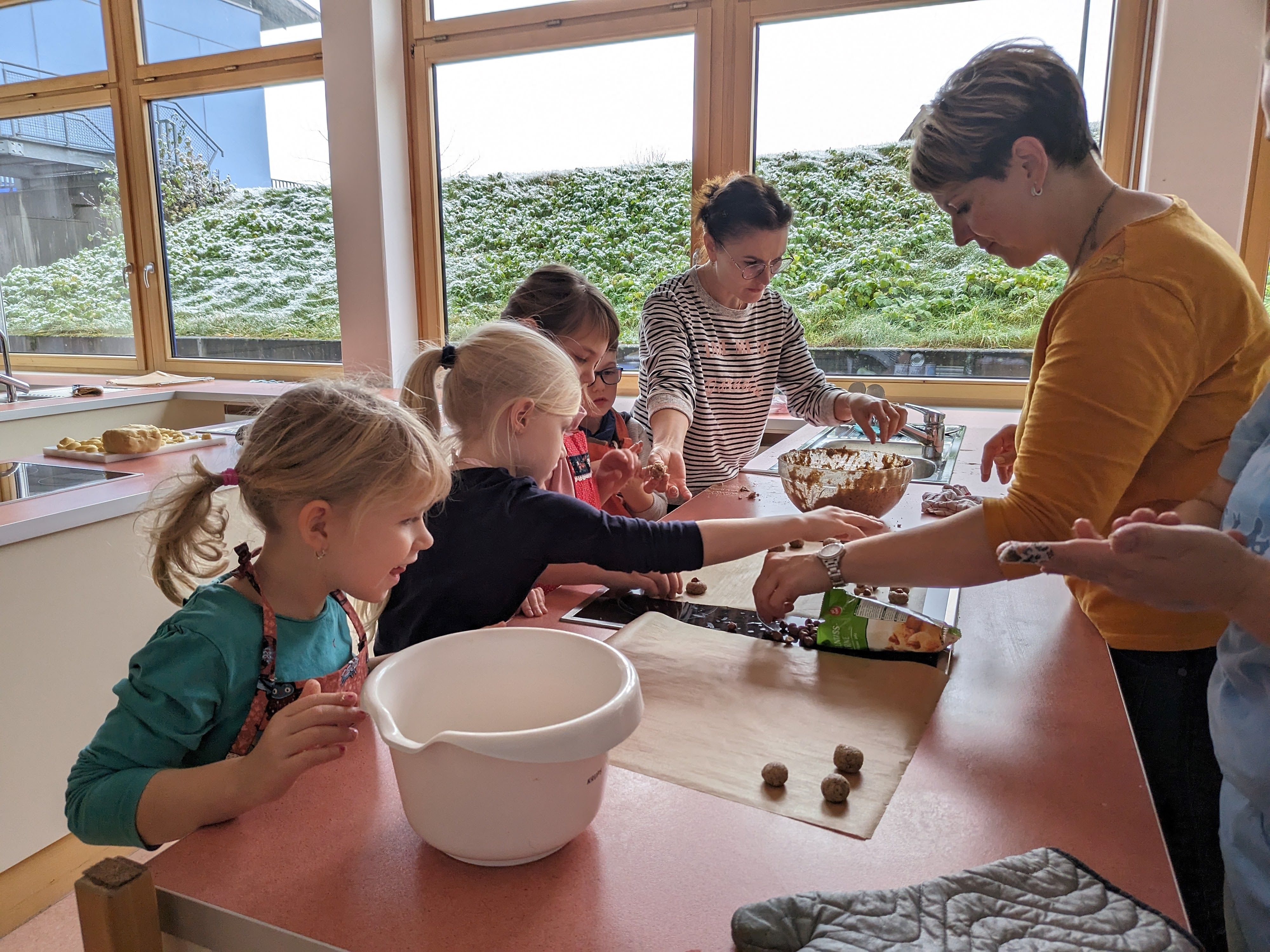 Die Vorweihnachtszeit startet bei uns mit leckerem Plätzchenduft im ganzen Schulhaus. Unser Elternbeirat hat wieder zum Backen in der Schulküche eingeladen. Viele Kinder und fleißige Bäcker*innen trafen sich Ende November und verwandelten unsere Küche in eine "Weihnachtsbäckerei". In kleinen Gruppen wurden leckere Plätzchen gebacken, hübsch verziert und natürlich genascht. Für eine dekorative Verpackung sorgten kleine Künstler zwischen den einzelnen Backladungen. Auf dem Thurnauer Weihnachtstöpfermarkt können diese Leckereien gekauft werden. Vielen Dank an den Elternbeirat und alle Helferlein für diese schöne Aktion!