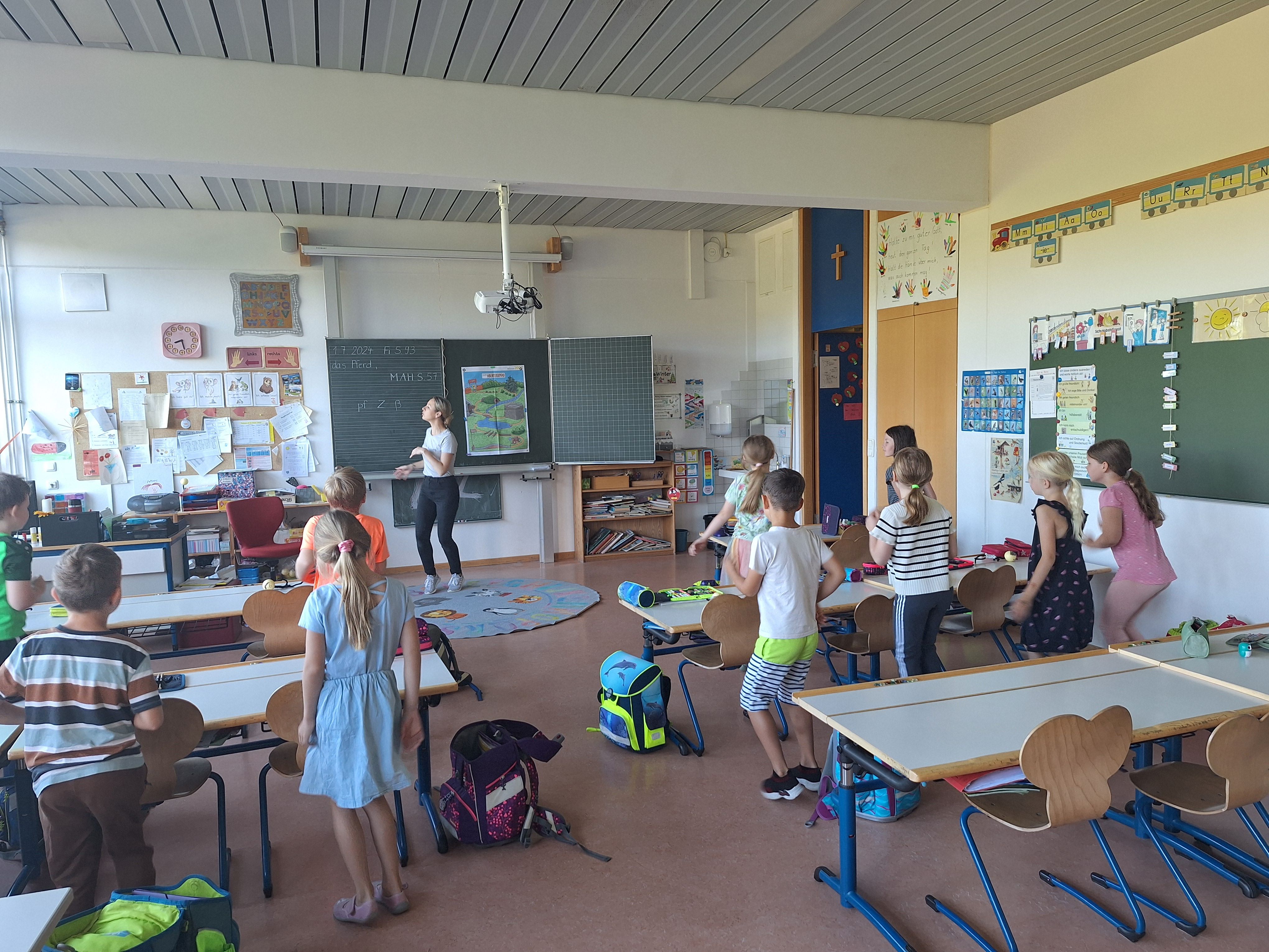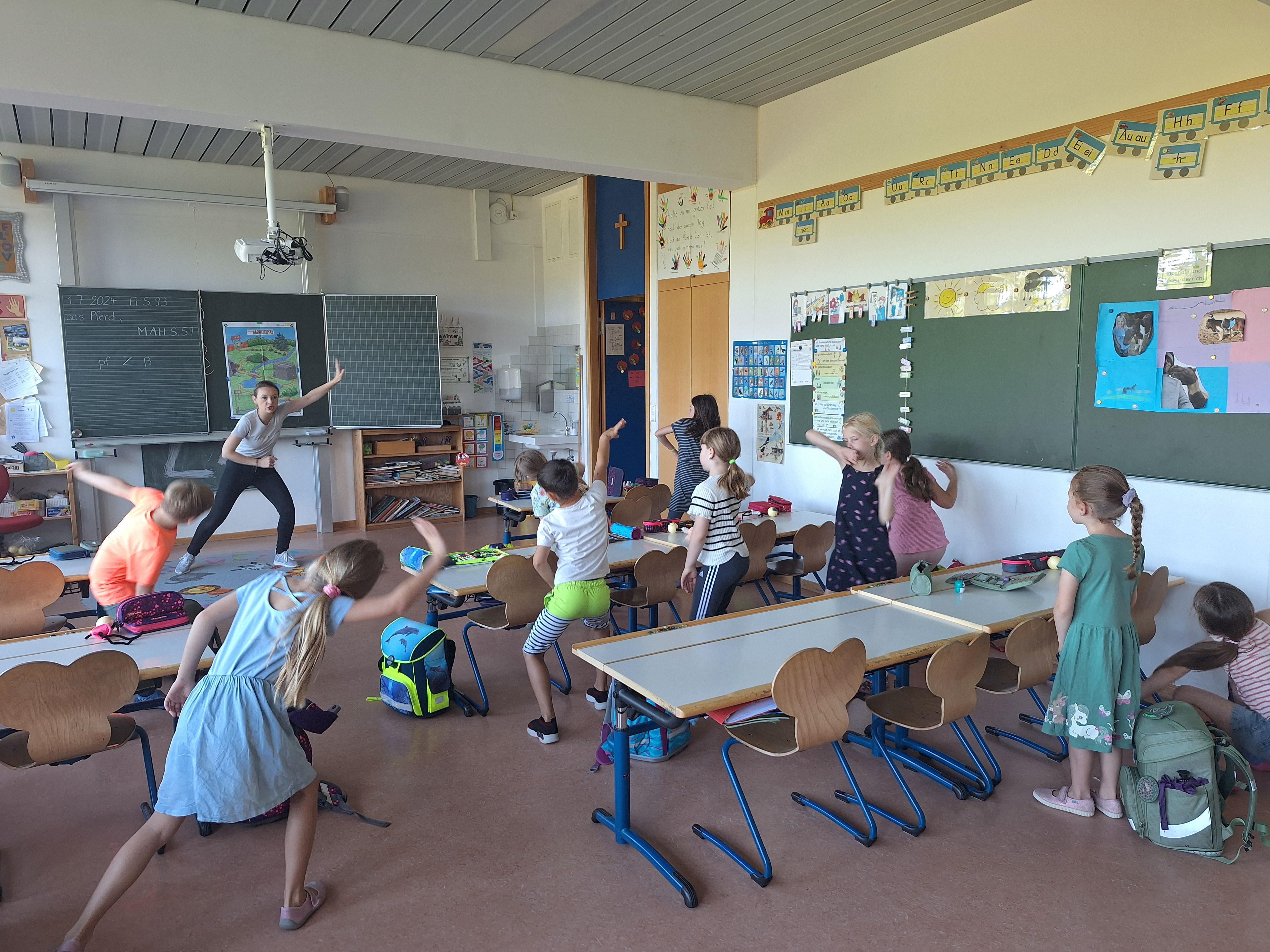 In dieser Einheit von unserem Projekt Klasse 2000 ging es um das Thema "Bewegung". Die Kinder entdeckten gemeinsam mit Frau Tauer ihre eigenen Knochen, Muskeln und Gelenke als Bewegungsgrundlage. Bei einer lustigen Geschichte durften alle ihren Bewegungsapparat "in Schwung bringen".