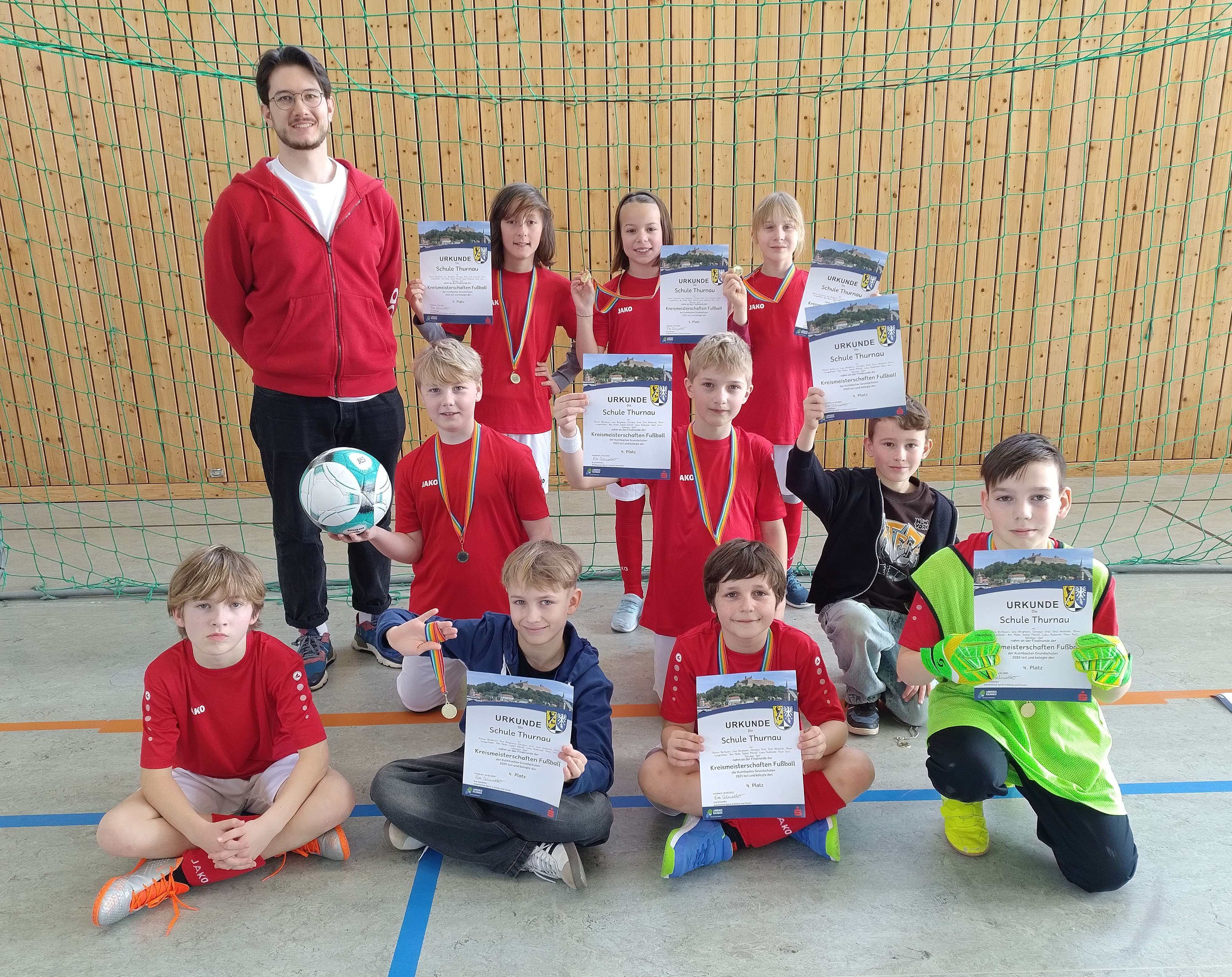 Beim diesjährigen Fußballturnier der Kulmbacher Grundschulen konnte sich unsere Mannschaft trotz einiger krankheitsbedingter Ausfälle für die Finalrunde qualifizieren. Damit kamen wir unter die acht besten Mannschaften im Kreis Kulmbach und sicherten uns schließlich in Neudrossenfeld den 4. Platz. Herzlichen Glückwunsch allen Mädchen und Jungen, ihr könnt stolz auf euch sein! Vielen Dank unserem Coach Simon Hermsdörfer und natürlich an Ruth Hermsdörfer für regelmäßige Trainingseinheiten!