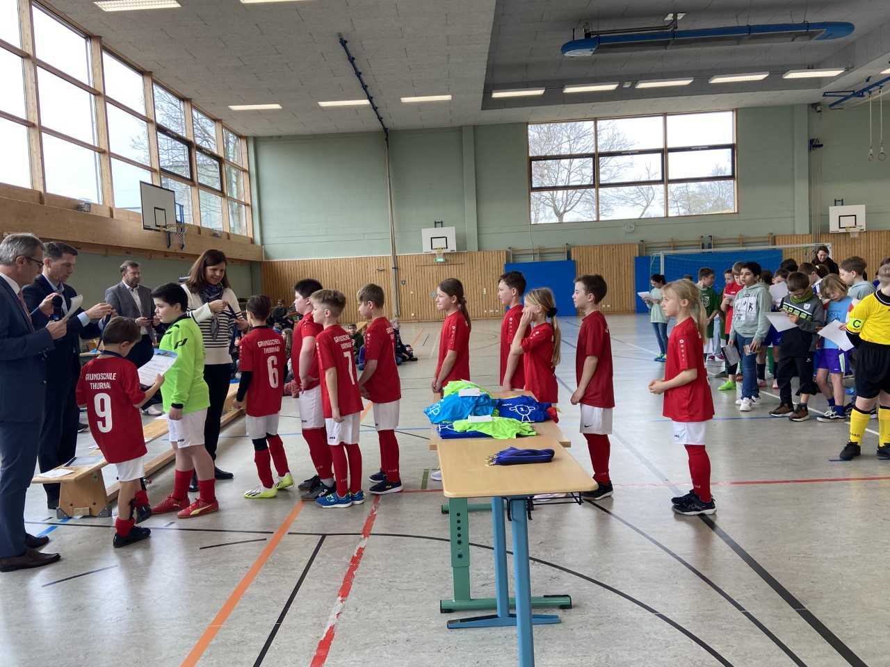 In diesem Schuljahr fanden nach längerer Pause wieder die Kreismeisterschaften der Kulmbacher Grundschulen statt. Unsere Thurnauer Mannschaft setzte sich dabei in der Vorrunde als Gruppenerster hervorragend durch. Auch in der Endrunde am 1. März überzeugten unserer Spielerinnen und Spieler und mussten sich nur der Siegermannschaft aus Stadtsteinach geschlagen geben. Ein guter dritter Platz war am Ende die Belohnung für diese beachtliche Leistung. Herzlichen Glückwunsch an unser Team!