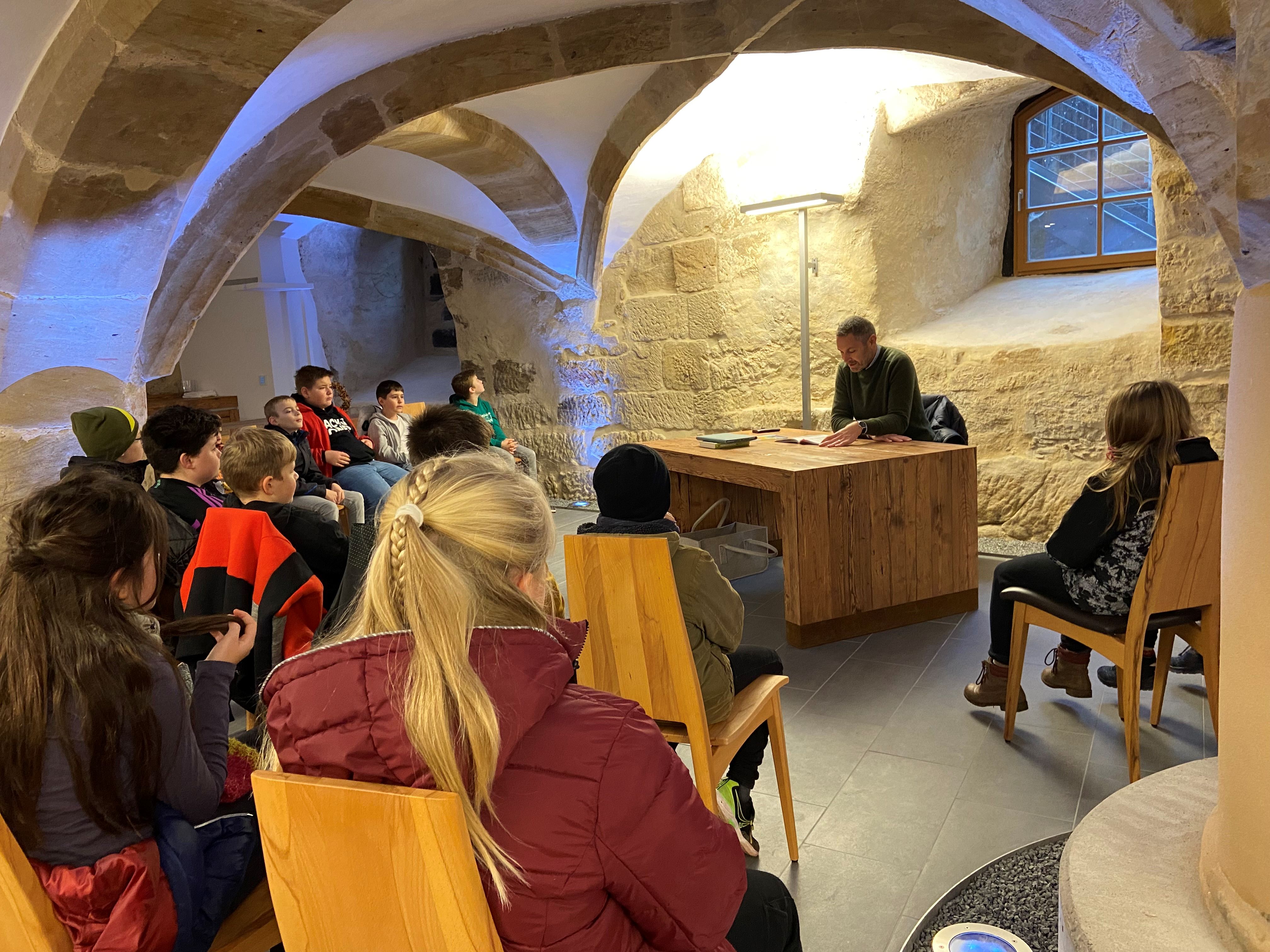 Im Rahmen einer Leseprojekt-Woche nahmen alle Klassen wieder am "Bundesweiten Vorlesetag" teil. Unter dem Motto: "Vorlesen verbindet!" besuchten wir verschiedene Einrichtungen in Thurnau. Im Töpfermuseum, im Trauzimmer, im Lichtblick, beim Tennisclub Thurnau, in der katholischen Kirche und in der Tagespflege wurden uns Geschichten, z. B. über Zusammenhalt, Freundschaft und Miteinander, vorgelesen. Wir bedanken uns bei allen engagierten Vorleser*innen!