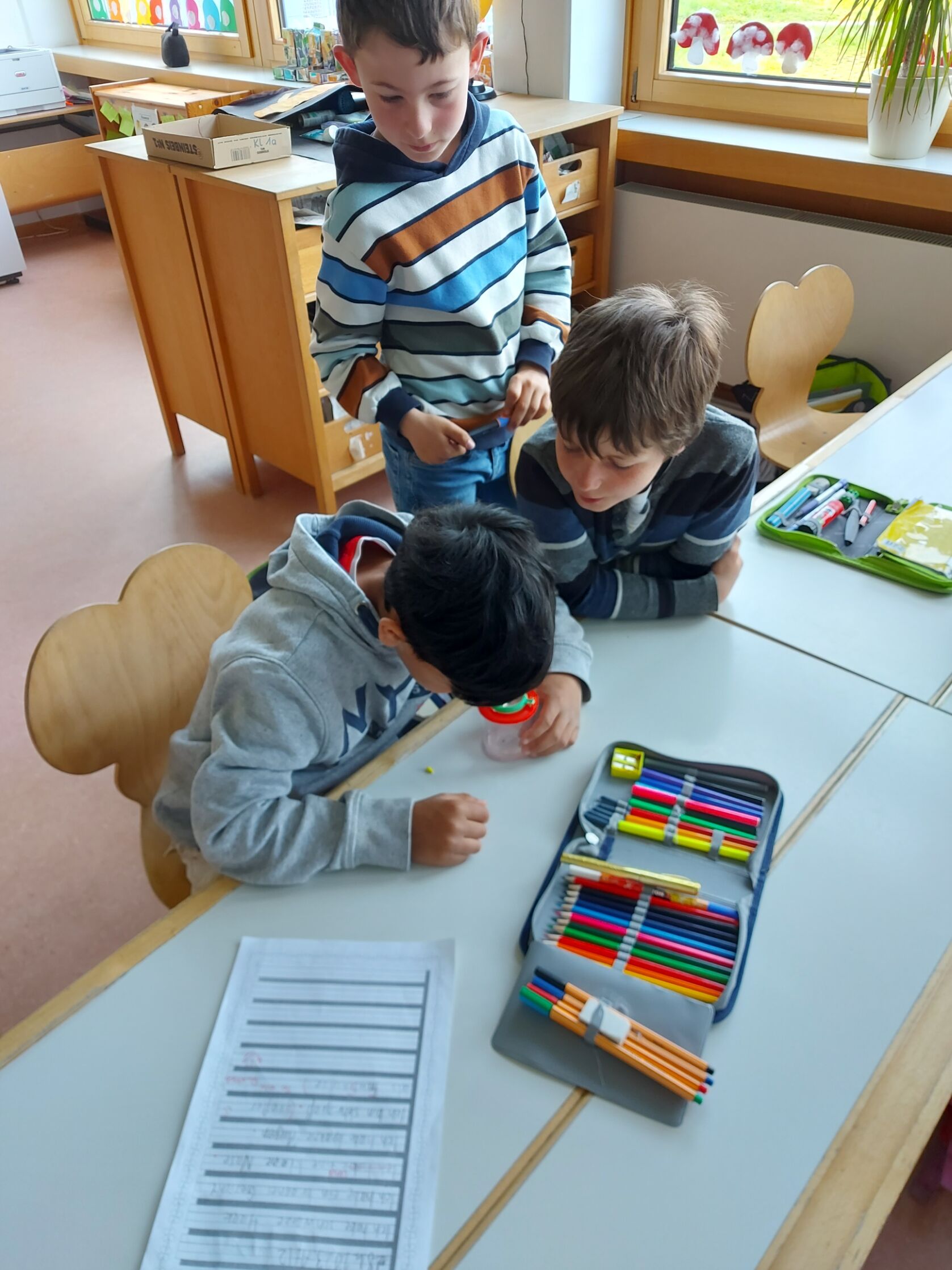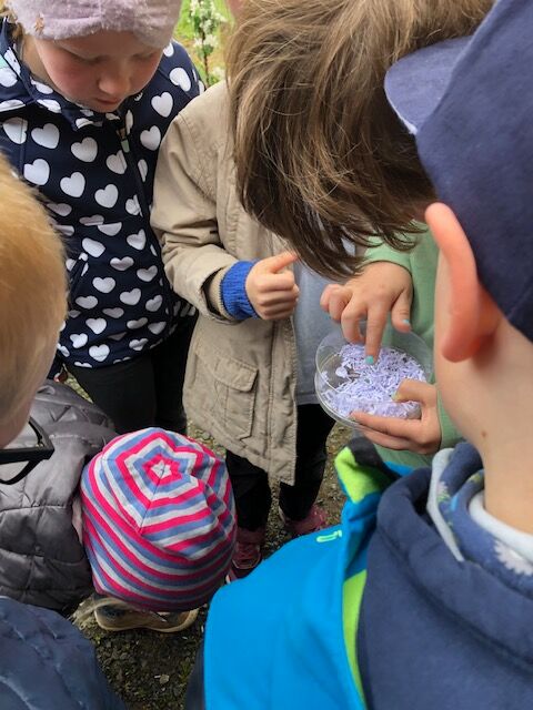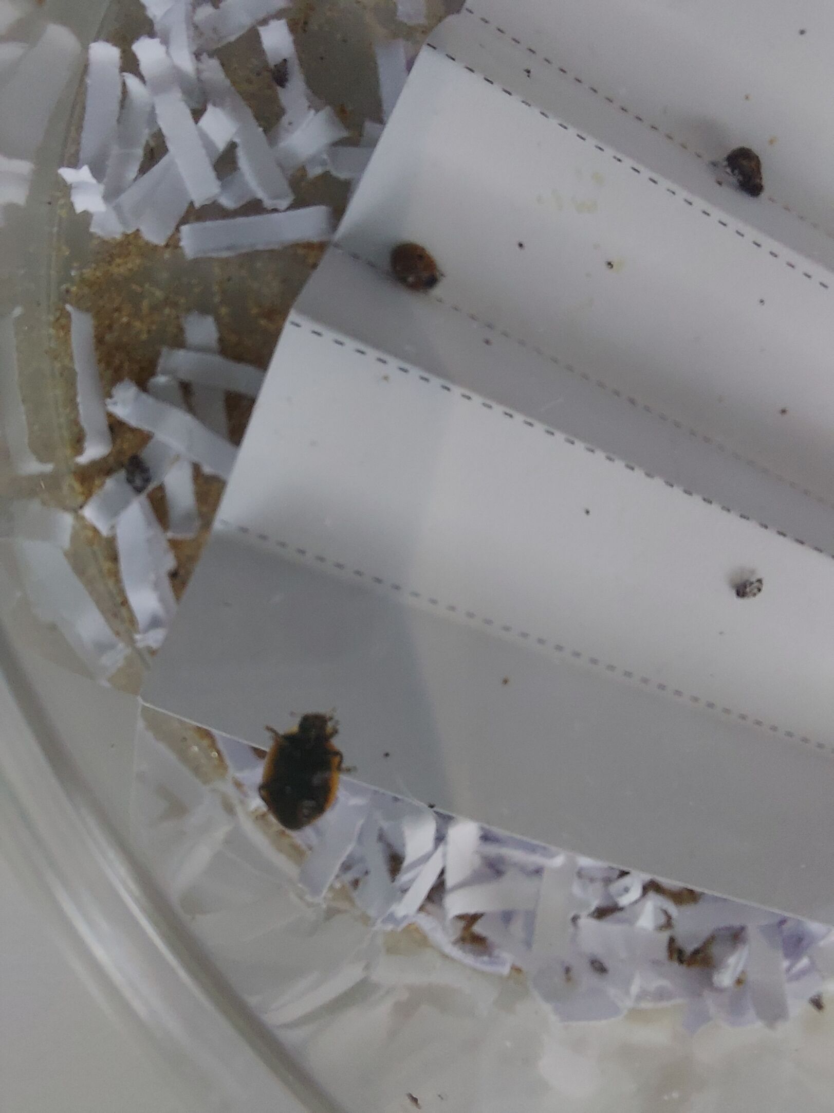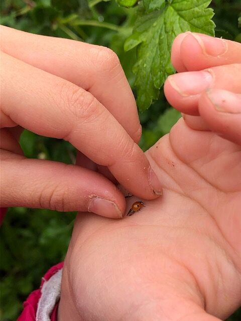 Marienkäfer ernähren sich hauptsächlich von Blatt- und Schildläusen, von denen ein einzelner Käfer täglich zwischen 50 bis 150 vertilgt. Aus diesem Grund sollten Marienkäfer unbedingt im Schulgarten einziehen. Doch vorher wollten wir natürlich wissen, wie sich so ein kleiner Vielfraß entwickelt. Jede Klasse bekam also ein Marienkäfer-Zuchtset der Firma Hagemann. In jedem Set befanden sich eine Becherlupe, ein Aufzuchtvivarium, Marienkäferlarven und genug Futter. Schon nach einigen Tagen konnten wir die Larven sehr gut beobachten. Unter unserer Dokukamera wurden die winzigen Tierchen zu echten Monstern. Nach etwa zwei Wochen begannen die Larven mit der Verpuppung und nach ca. einer Woche schlüpften die ersten Marienkäfer. Ein paar Tage beobachteten wir die Veränderung vom gelben Marienkäfer zum knallroten Zweipunktmarienkäfer, danach entließen wir unsere Käfer in die Natur. Einige durften direkt im Schulgarten einziehen.
