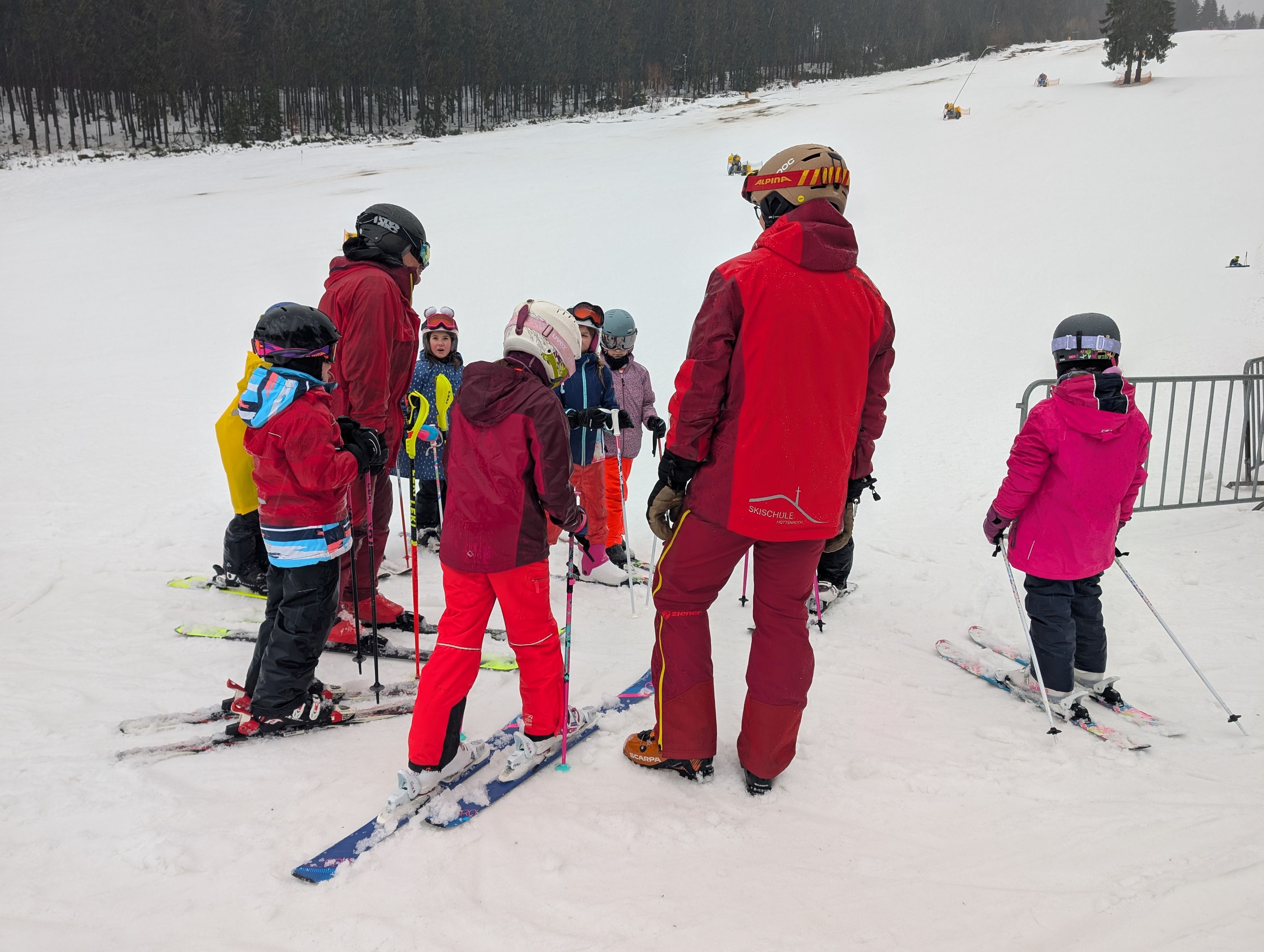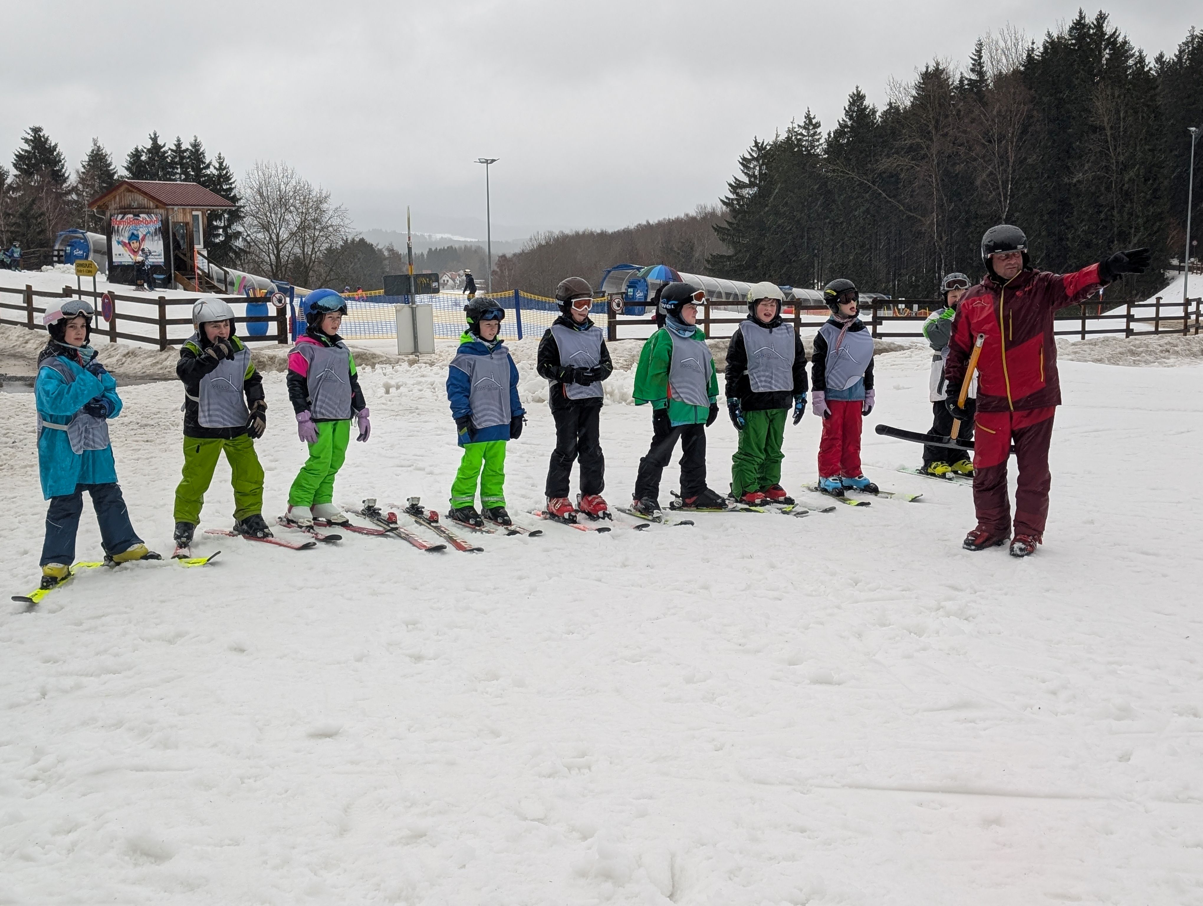 Anfang Februar fand unser Skikurs in der Skischule Hottenroth am Klausenlift in Mehlmeisel statt. Das Team des Elternbeirats übernahm die Organisation, kümmerte sich um ein Mittagessen und begleitete die kleinen Skifahrer bis zur Piste. Die Kinder wurden, je nach Vorkenntnissen, in Kleingruppen aufgeteilt und von erfahrenen Skilehrerinnen und Skilehrern trainiert. Dabei stand natürlich die Freude am Skifahren im Vordergrund. Am letzten Tag gab es das traditionelle Abschlussrennen, bei dem das Gelernte stolz präsentiert wurde. Zahlreiche Eltern und Großeltern feuerten die Skihasen kräftig an. Vielen Dank an unseren Elternbeirat, alle Helferinnen und Helfer sowie an die Skischule Hottenroth.