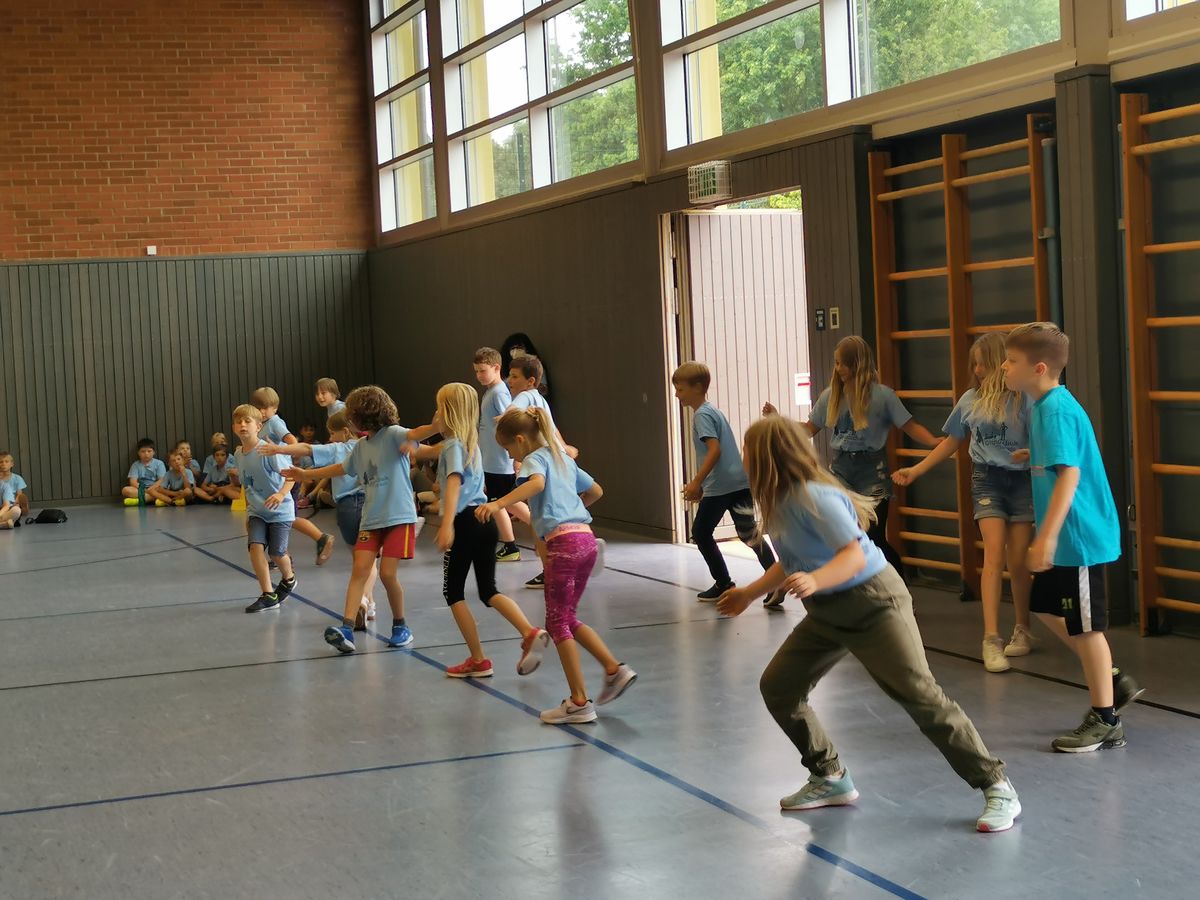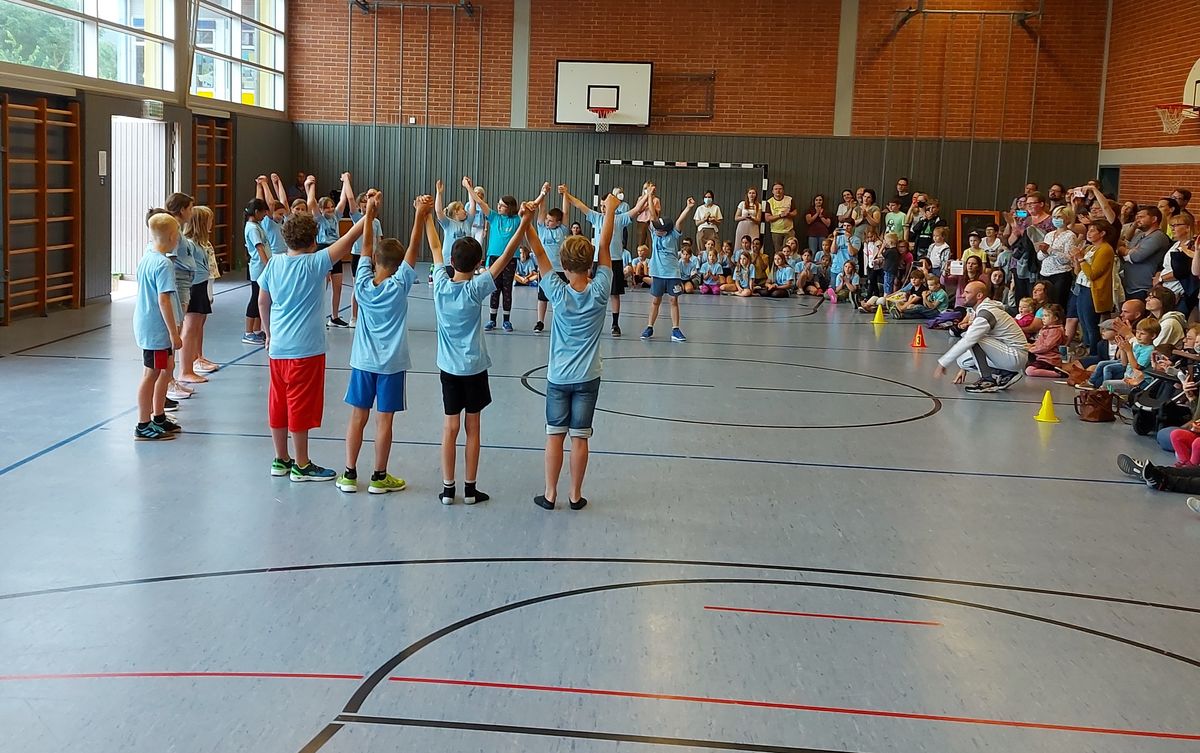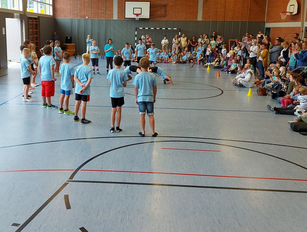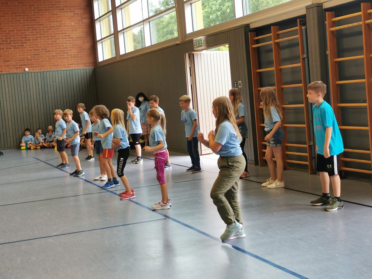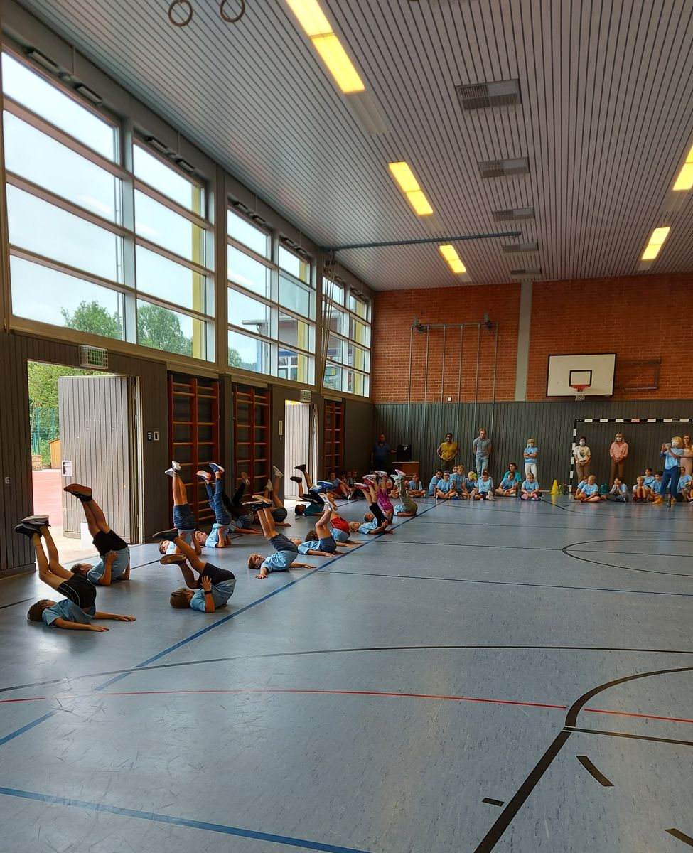 Das "POWERprojekt Schultanzwoche" begeisterte nicht nur unsere Schüler und Lehrkräfte, sondern auch Eltern, Großeltern und viele Gäste. In der Woche vom 27.6. bis 1.7.2022 nahm unsere Schule am Tanzprojekt "Wir bewegen Schule" teil. Zwei professionelle Tanzlehrer haben innerhalb von einer Woche eine beeindruckende Choreographie aus Hip-Hop bzw. Breakdance Elementen mit jeder Klasse einstudiert. Lulia und Sebastian schafften es, aus jedem Kind Bestleistungen mit viel Spaß und Freude herauszuholen. Unsere Schüler haben motiviert und voller Begeisterung an diesem Projekt teilgenommen. Herzlichen Dank an unsere beiden Profitänzer! Bei der großen Tanzaufführung am Freitag präsentierten alle Klassen in der Turnhalle ihre einstudierten Tänze. Höhepunkte waren dabei ihre selbst erarbeiteten freien „Moves“. Das begeisterte Publikum belohnte die kleinen Tänzer mit stürmischem Applause. Unser Dank gilt unserem Förderverein, welcher den Hauptteil der Kosten übernommen hat, und dem Elternbeirat für Kaffee und Kuchen.