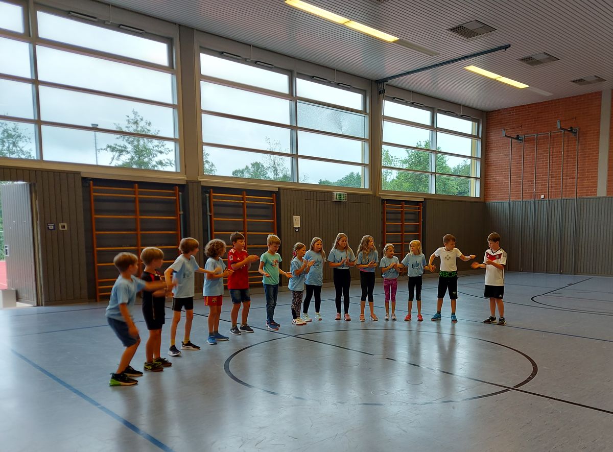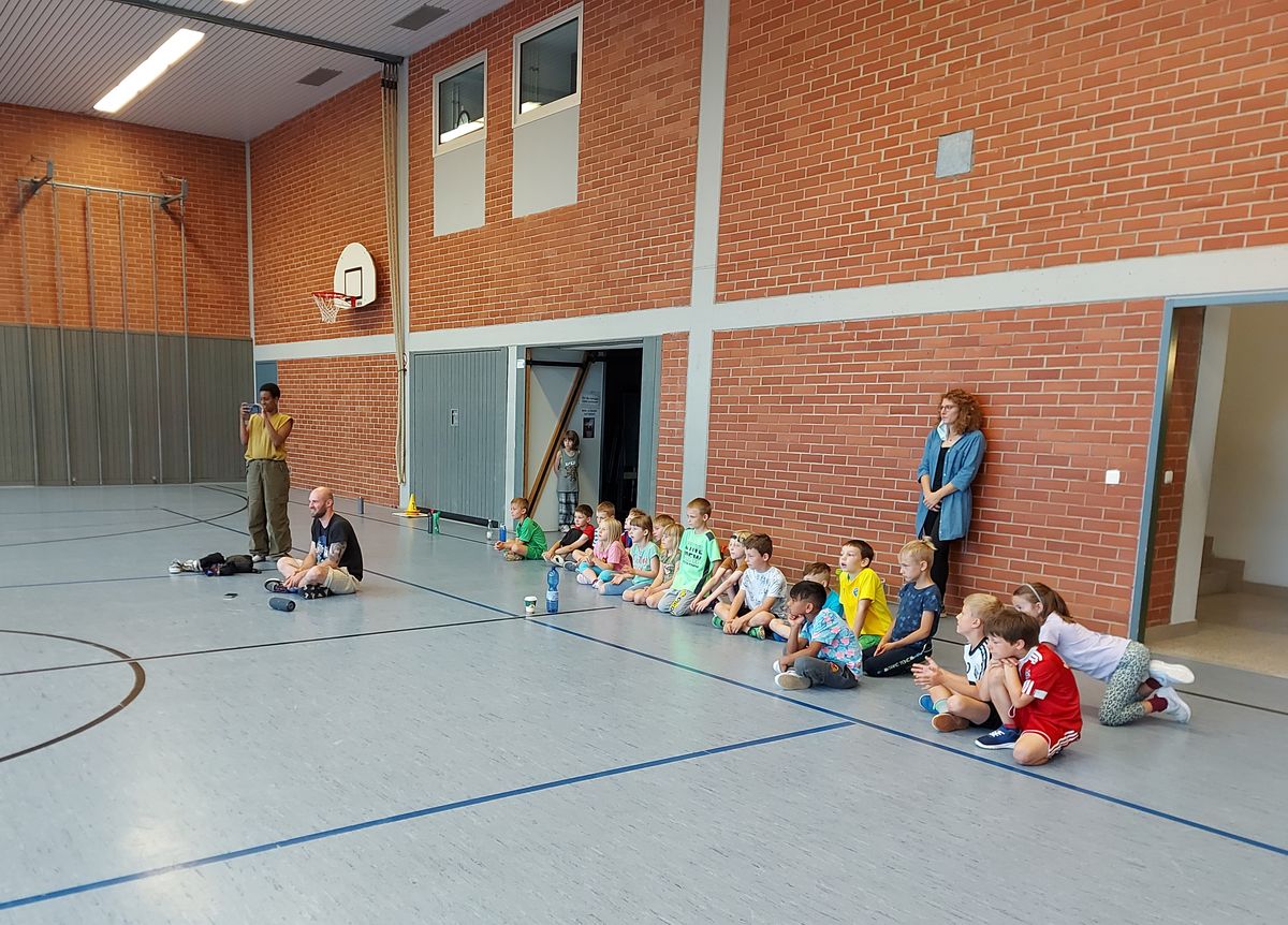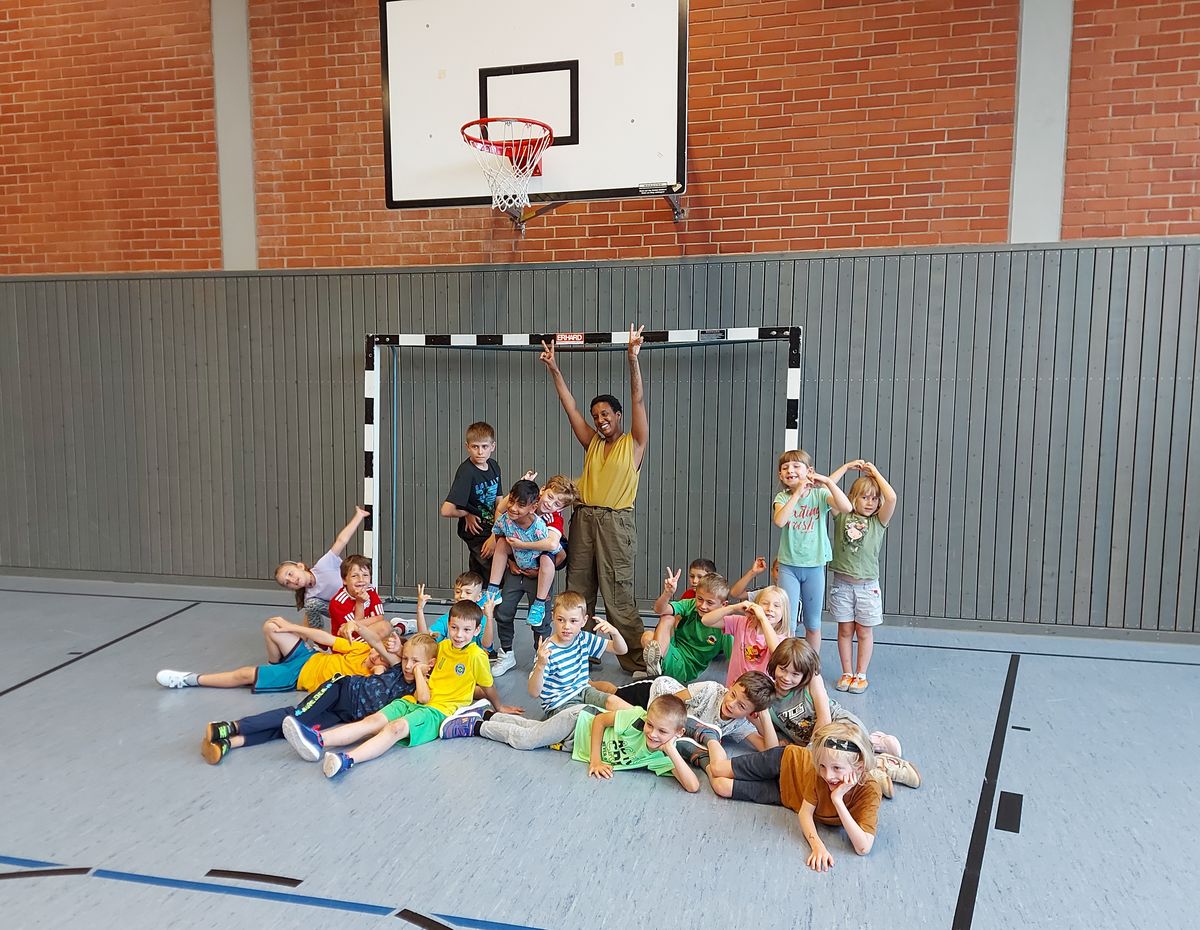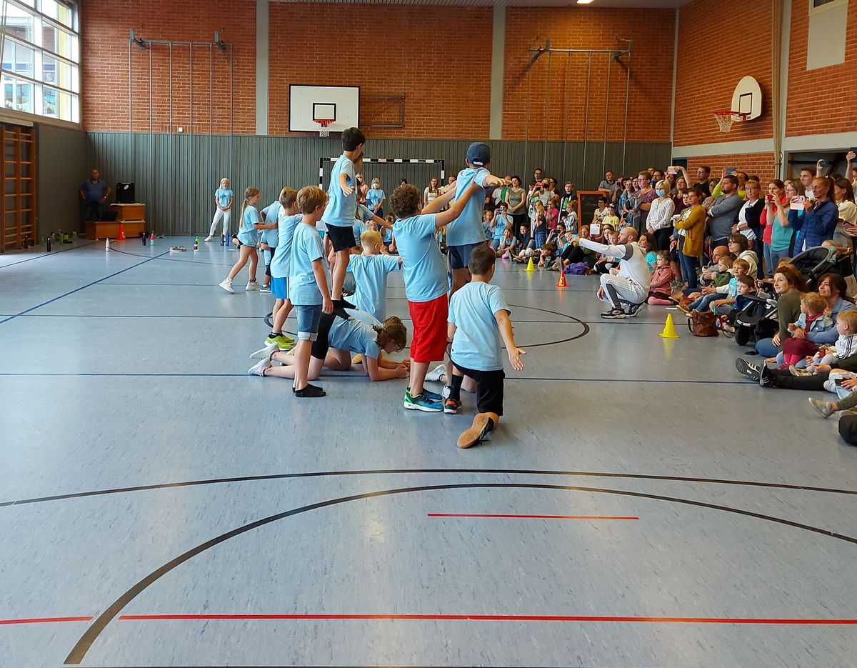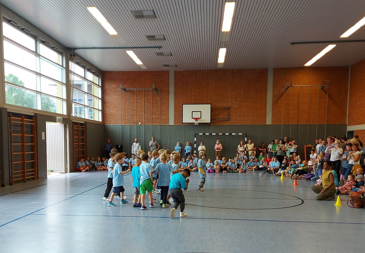 Das "POWERprojekt Schultanzwoche" begeisterte nicht nur unsere Schüler und Lehrkräfte, sondern auch Eltern, Großeltern und viele Gäste. In der Woche vom 27.6. bis 1.7.2022 nahm unsere Schule am Tanzprojekt "Wir bewegen Schule" teil. Zwei professionelle Tanzlehrer haben innerhalb von einer Woche eine beeindruckende Choreographie aus Hip-Hop bzw. Breakdance Elementen mit jeder Klasse einstudiert. Lulia und Sebastian schafften es, aus jedem Kind Bestleistungen mit viel Spaß und Freude herauszuholen. Unsere Schüler haben motiviert und voller Begeisterung an diesem Projekt teilgenommen. Herzlichen Dank an unsere beiden Profitänzer! Bei der großen Tanzaufführung am Freitag präsentierten alle Klassen in der Turnhalle ihre einstudierten Tänze. Höhepunkte waren dabei ihre selbst erarbeiteten freien „Moves“. Das begeisterte Publikum belohnte die kleinen Tänzer mit stürmischem Applause. Unser Dank gilt unserem Förderverein, welcher den Hauptteil der Kosten übernommen hat, und dem Elternbeirat für Kaffee und Kuchen.
