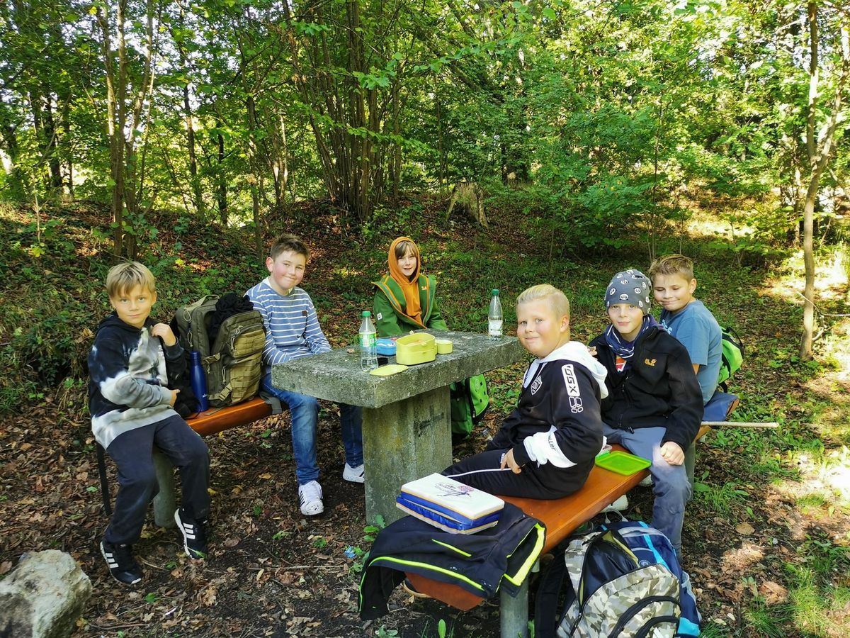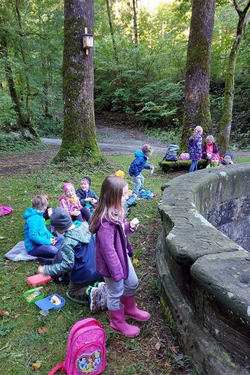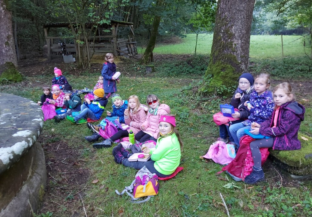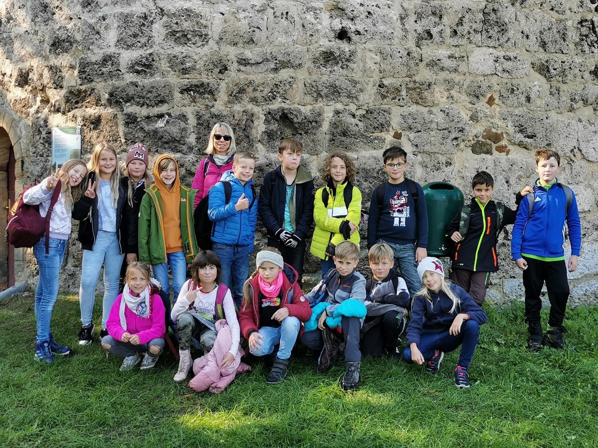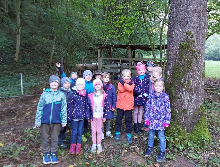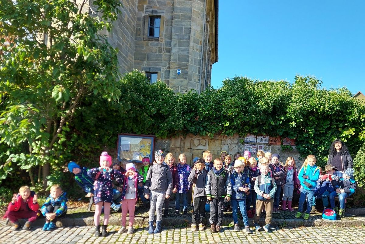 Der dichte Nebel am Morgen hatte sich bereits nach wenigen Schritten verzogen und die Herbstsonne zeigte sich zum Wandertag von ihrer besten Seite. Mit gutem Schuhwerk und einer leckeren Brotzeit im Rucksack begaben sich alle Klassen auf Schusters Rappen. Auf dem Weg zur Aubachquelle, zum Magnusturm und durch den Hutschdorfer Wald gab es viel zu entdecken.