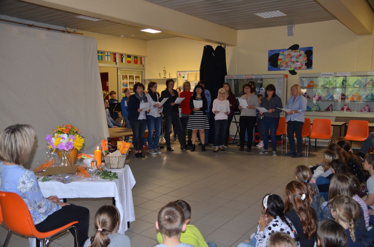 Ein runder Geburtstag war ein guter Grund zum Feiern. Das dachte sich die Schulfamilie und gratulierte von Herzen unserer lieben Steffi Gunzelmann. Einige Tage geheime Vorbereitungen hatten sich gelohnt, Frau Gunzelmann strahlte an ihrem Ehrentag, wie es sich eben für ein Geburtstagskind gehört. Lieder, ein Gedicht, Schattenspiele und natürlich Geschenke machten den Tag perfekt. Wir wünschen alles Gute und Gesundheit!