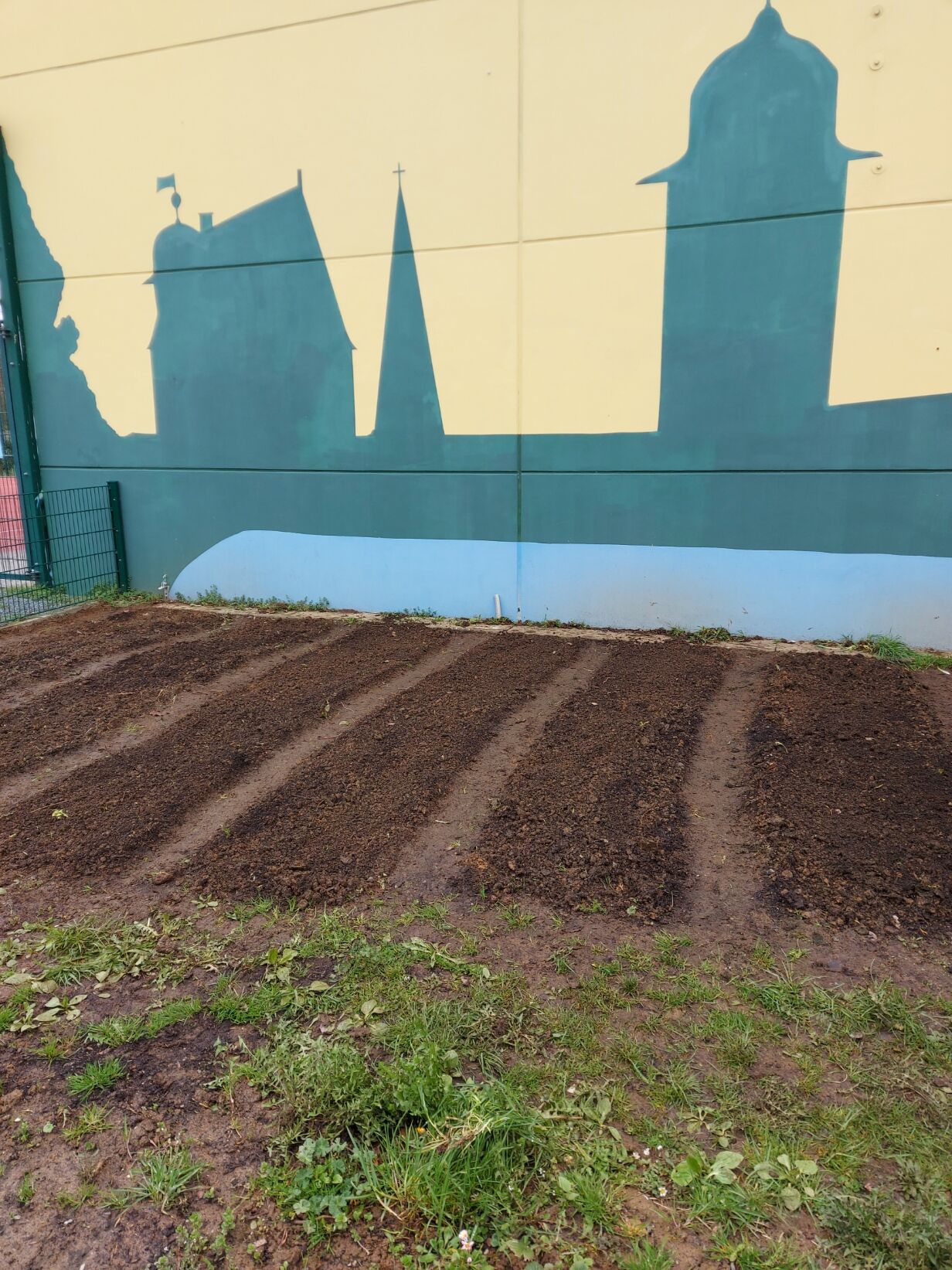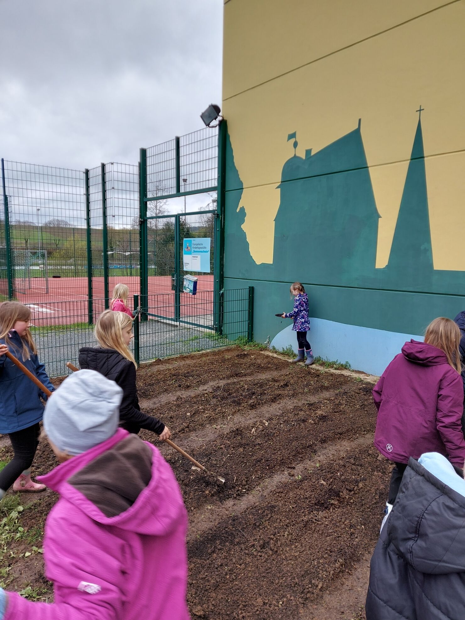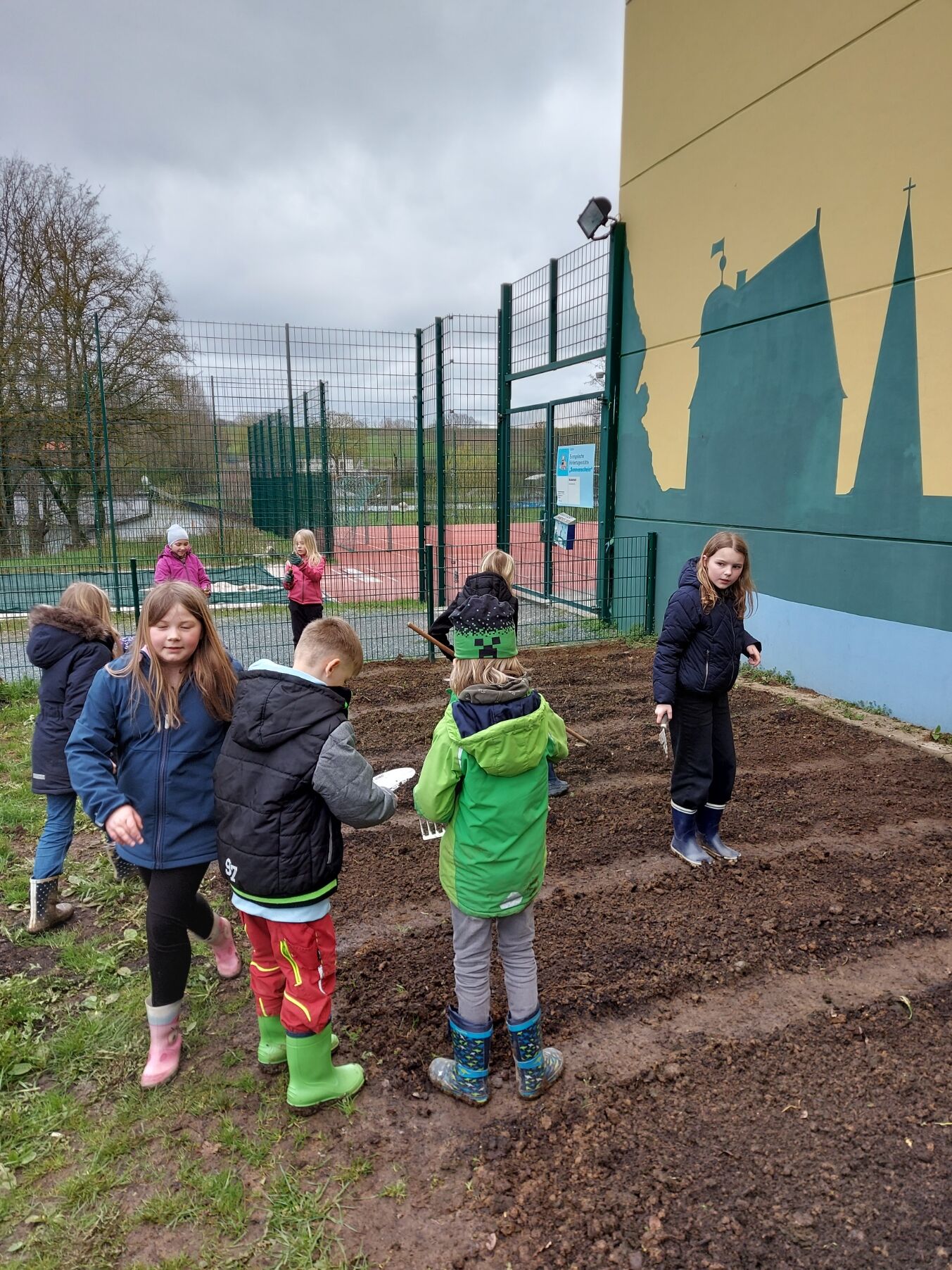 Gleich nach den Osterferien startete die Arbeitsgemeinschaft Schulgarten in die neue Gartensaison. Am Montag nach den Ferien stand der 1. Pflanztermin auf dem Programm. Fleißige Ackerhelfer waren bereits vor einigen Wochen im Einsatz und hatten die Beete umgegraben und vorbereitet. Zur Pflanzung gab es wieder Unterstützung durch die „Gemüseackerdemie“. Herr Boderius gab uns Tipps und verriet seine Pflanztricks. Mittlerweile sind unsere Ackerkinder echte „Gartenprofis“ und packen selbst tüchtig mit an. In unseren Beeten wachsen nun Salat, Kohlrabi, Mangold, Palmkohl, Fenchel und Rote Bete. Auf die ersten Radieschen oder Möhren freuen sich die hungrigen Gärtner natürlich auch schon. Vor der Ernte gibt es allerdings jeden Montag viel zu tun.