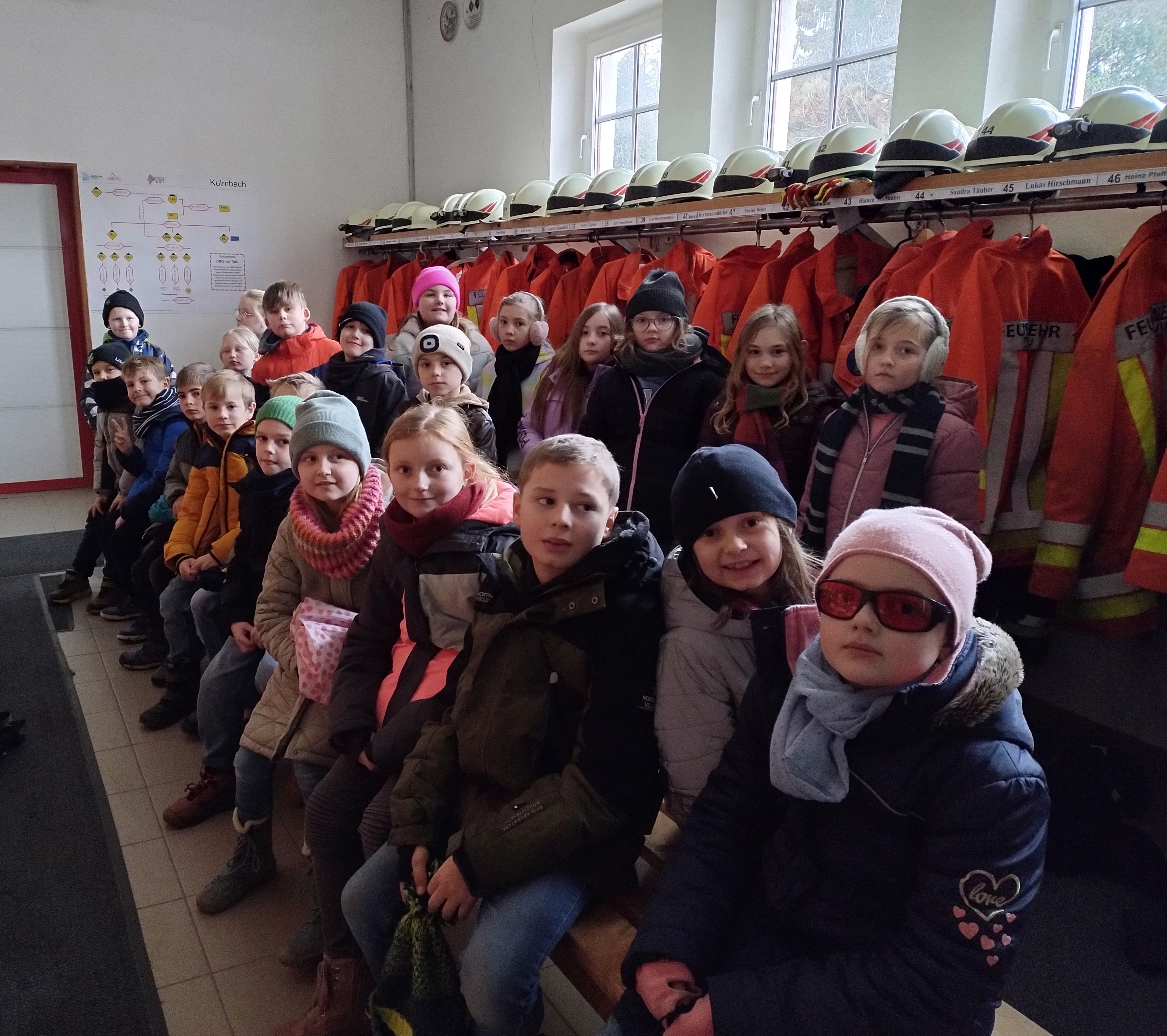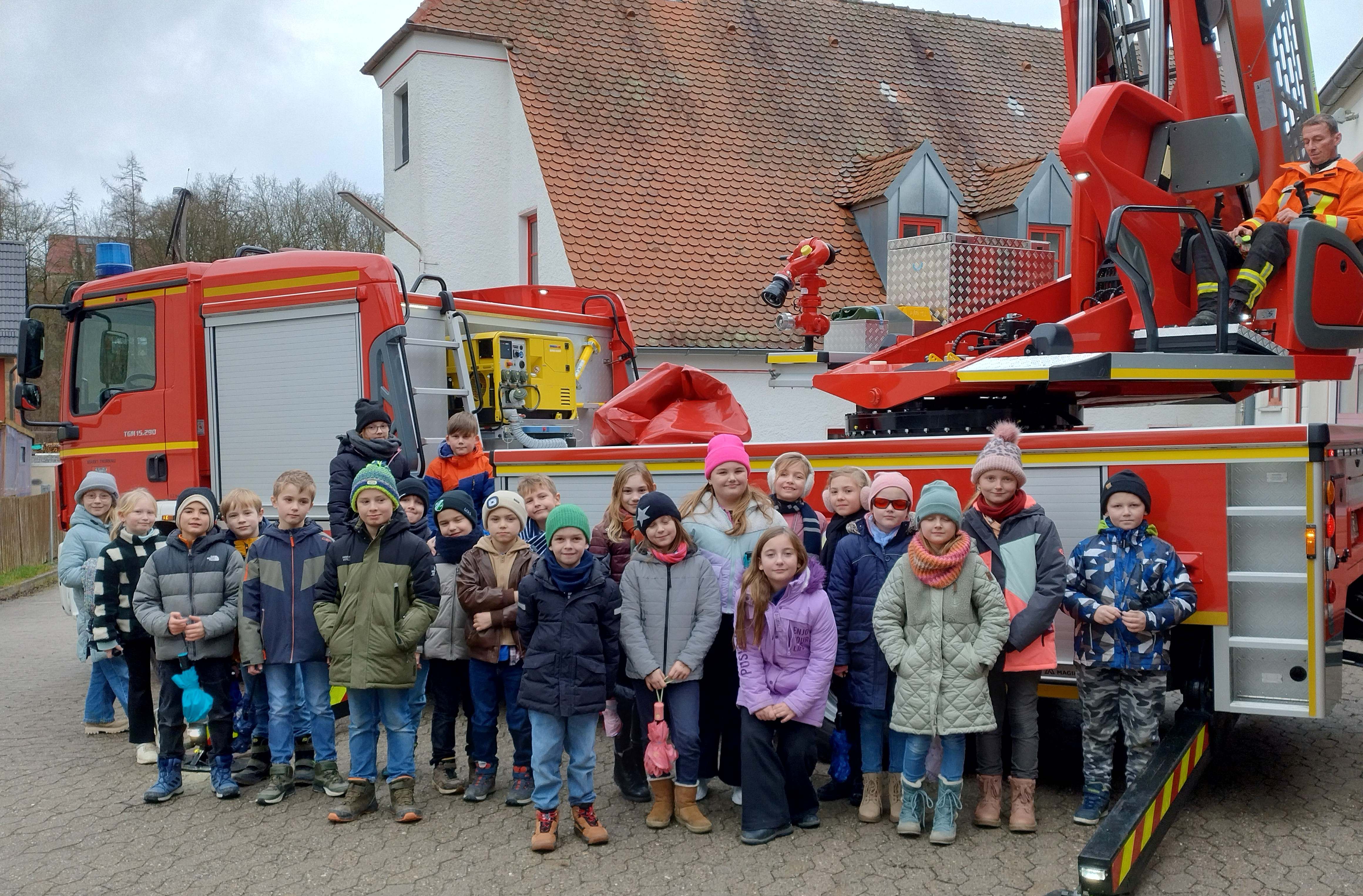 Im Rahmen des Heimat- und Sachunterrichts zum Thema Feuer besuchte die Klasse 3a die Freiwillige Feuerwehr Thurnau. Die Schülerinnen und Schüler durften sich im Umkleideraum umsehen und die Schutzanzüge der Feuerwehrleute genau betrachten. Danach zeigte Kommandant Jörg Schneider die Feuerwehrautos, in die sich die Kinder sogar hineinsetzen konnten. Anschließend beantwortete er geduldig alle Fragen. Zum Schluss fuhr er noch das große Feuerwehrauto mit der Drehleiter heraus und zeigte, wie hoch man die Leiter ausfahren kann. Ein sehr interessanter Ausflug! Vielen Dank an das Team der Feuerwehr Thurnau!