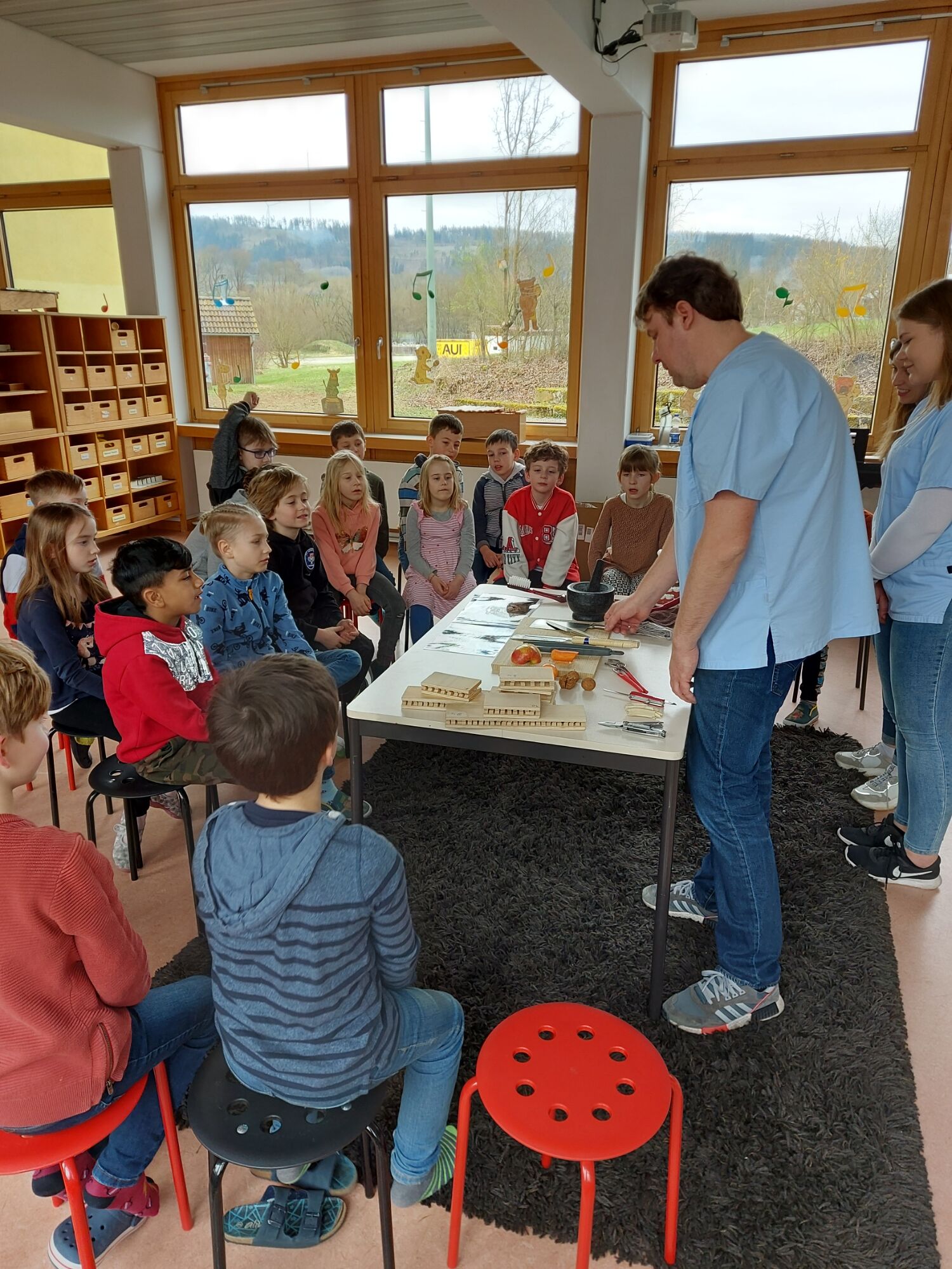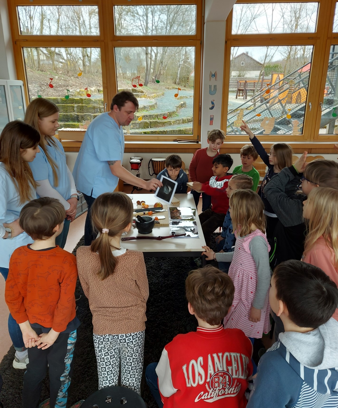 Der Thurnauer Zahnarzt Moritz Weigel besuchte mit seinem Team wieder unsere Grundschule und erklärte uns anschaulich, wie wichtig die Pflege und Gesunderhaltung unserer Zähne ist. Zum Abschied gab es für jeden ein Zahnputzset als Geschenk. Vielen Dank an das ganze Team!
