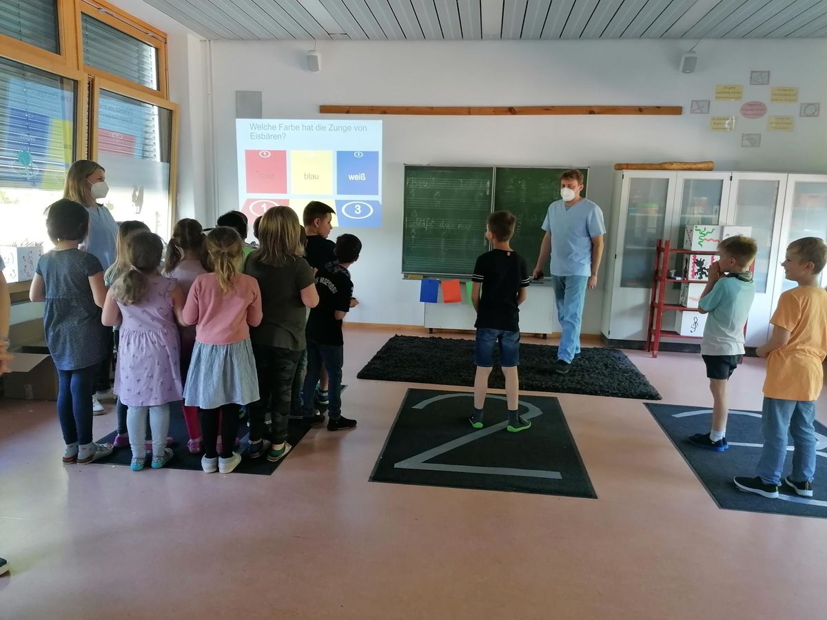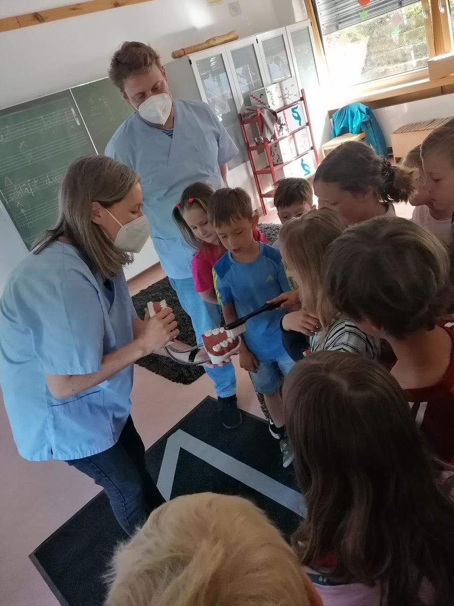 Der Thurnauer Zahnarzt Moritz Weigel besuchte mit seinem Team unsere Grundschule und machte auf spielerische Weise darauf aufmerksam, wie wichtig die Pflege und Gesunderhaltung der Zähne ist. Bei dem beliebten Ratespiel "1, 2 oder 3" mussten die Schüler verschiedene Aufgaben rund um das Thema „Zähne“ lösen. Mit viel Spaß wurden dabei fleißig Punkte gesammelt. Zum Abschied gab es für jeden ein Zahnputzset als Geschenk. Vielen Dank an das ganze Team!
