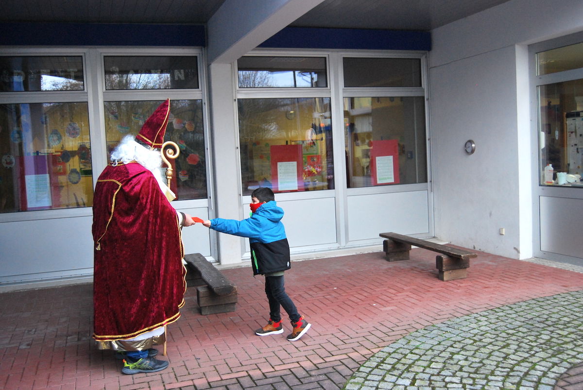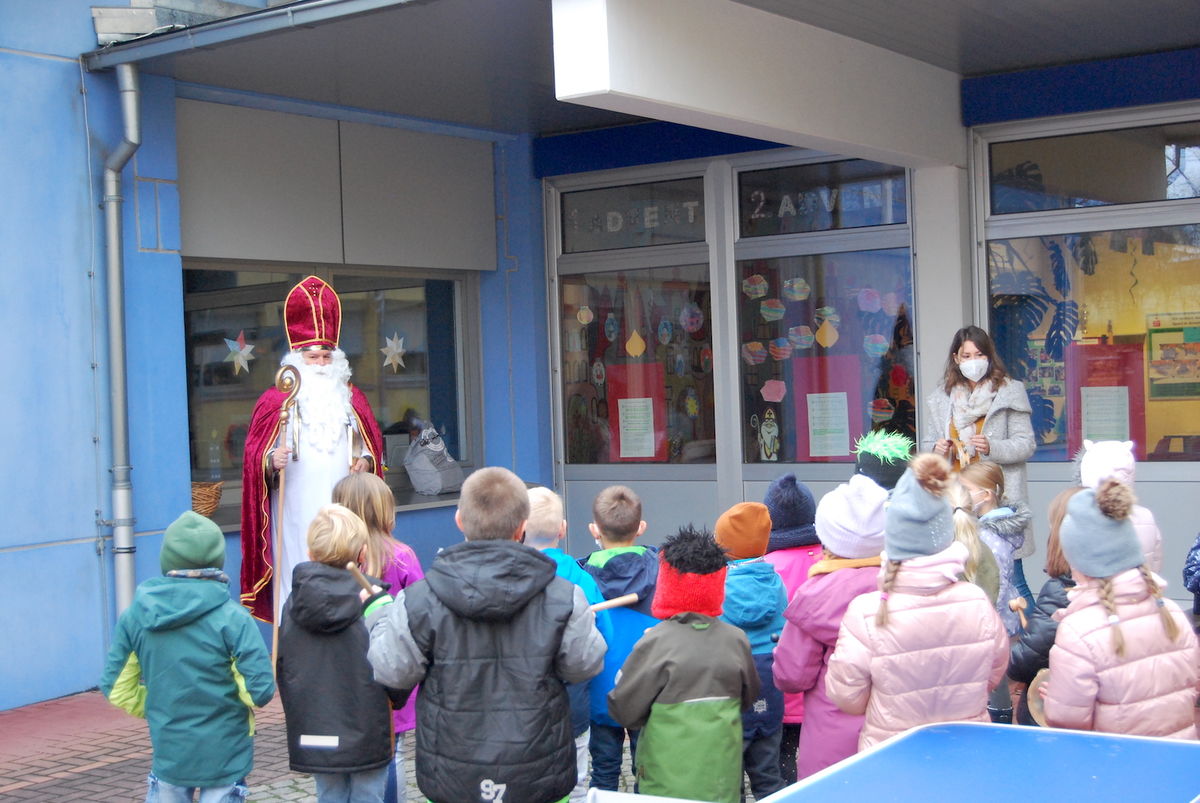 Die Augen unserer Erst- und Zweitklässler waren groß, als im Pausenhof der Nikolaus auf sie wartete. Da der Nikolaus alles sieht und weiß, wusste er ganz viel Gutes über unsere Schüler zu berichten. Im goldenen Buch standen aber auch gaaaanz wenige Sachen, die ihm keine Freude machen. Doch mit ihren Liedern und Gedichten konnten die Schüler den Nikolaus begeistern und es gab für jedes Kind ein liebevolles Geschenk. Natürlich bekamen auch unsere "Großen" Geschenke vom Nikolaus. Ein herzliches Dankeschön an den Nikolaus und seine fleißigen Helferlein!