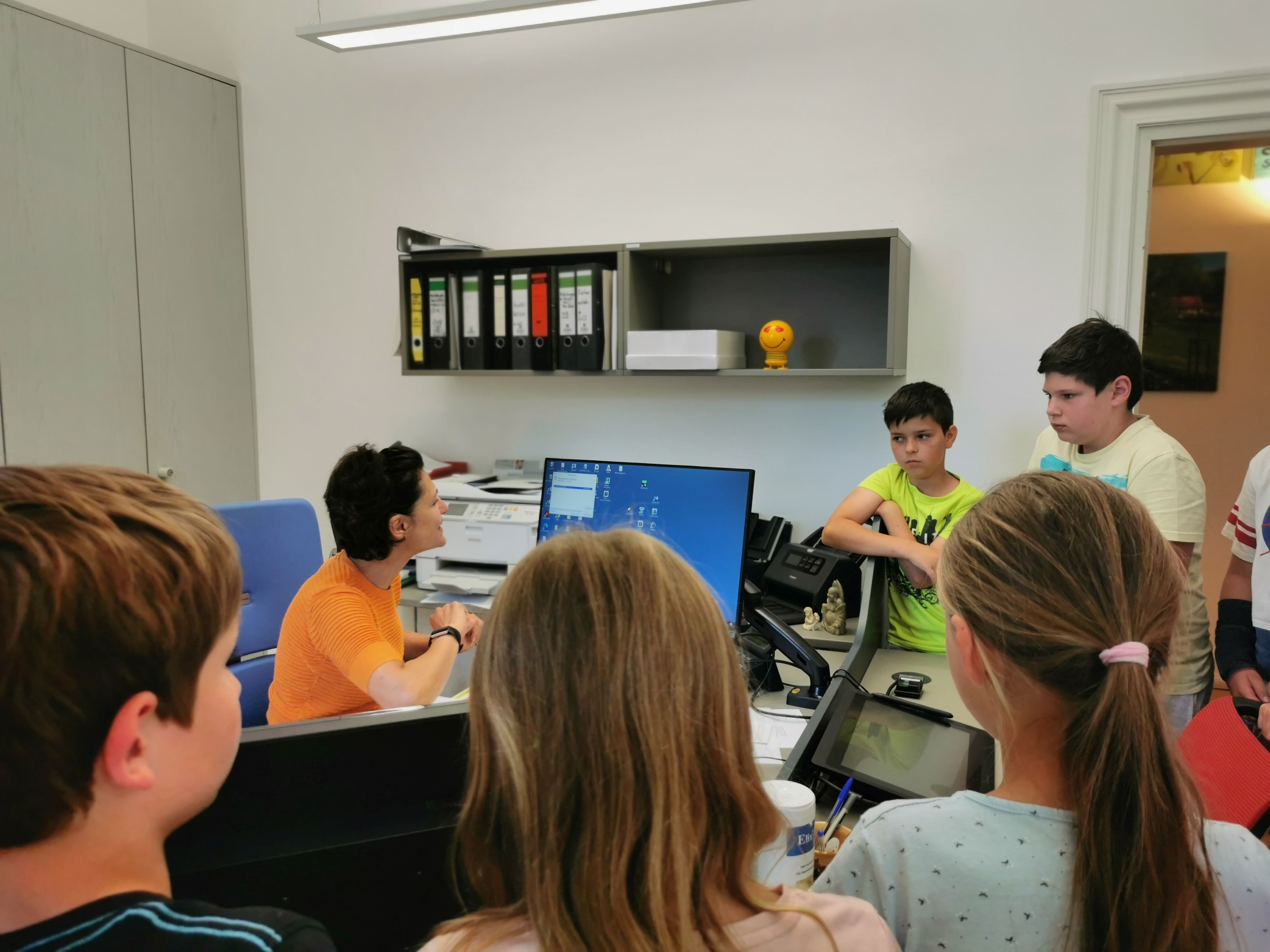 Mit ihrer Klassenlehrerin unternahm die Klasse 4a einen Unterrichtsgang ins Rathaus. Die Kinder wurden von Bürgermeister Martin Bernreuther herzlich empfangen. Ausführlich beantwortete er im großen Sitzungssaal die vielen Fragen der Schüler*innen. Beim anschließenden Rundgang durch die Ämter konnten die Kinder Einblick in die Arbeit der Mitarbeiter gewinnen. Vielen Dank für diesen informativen Vormittag!