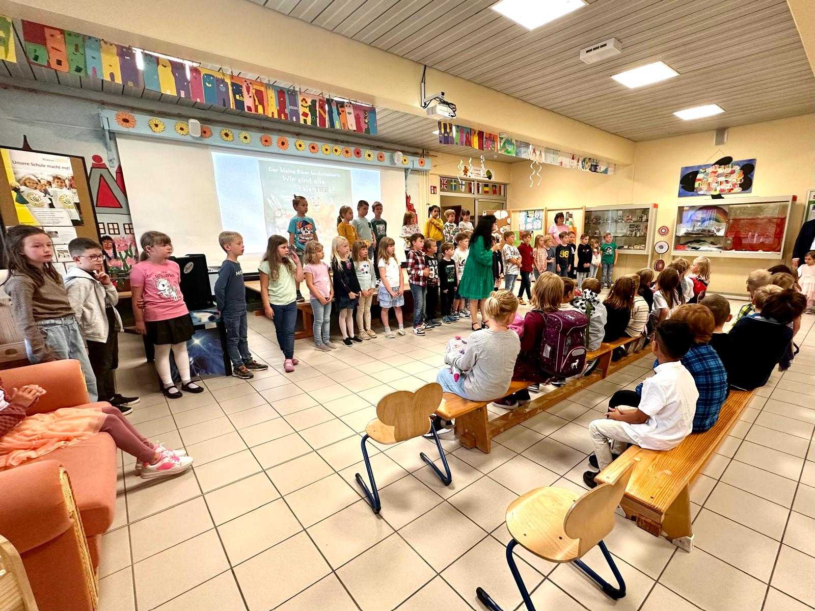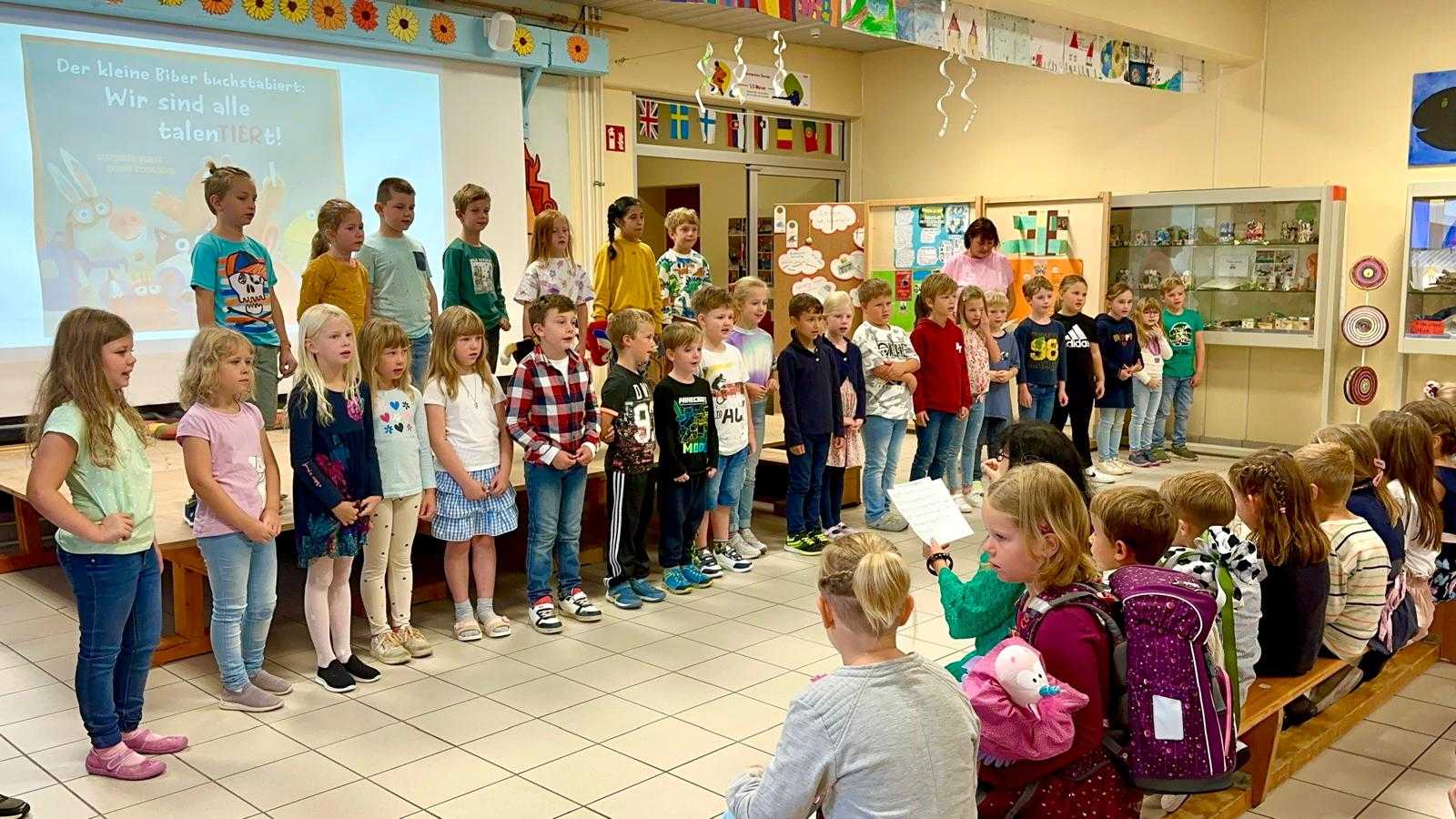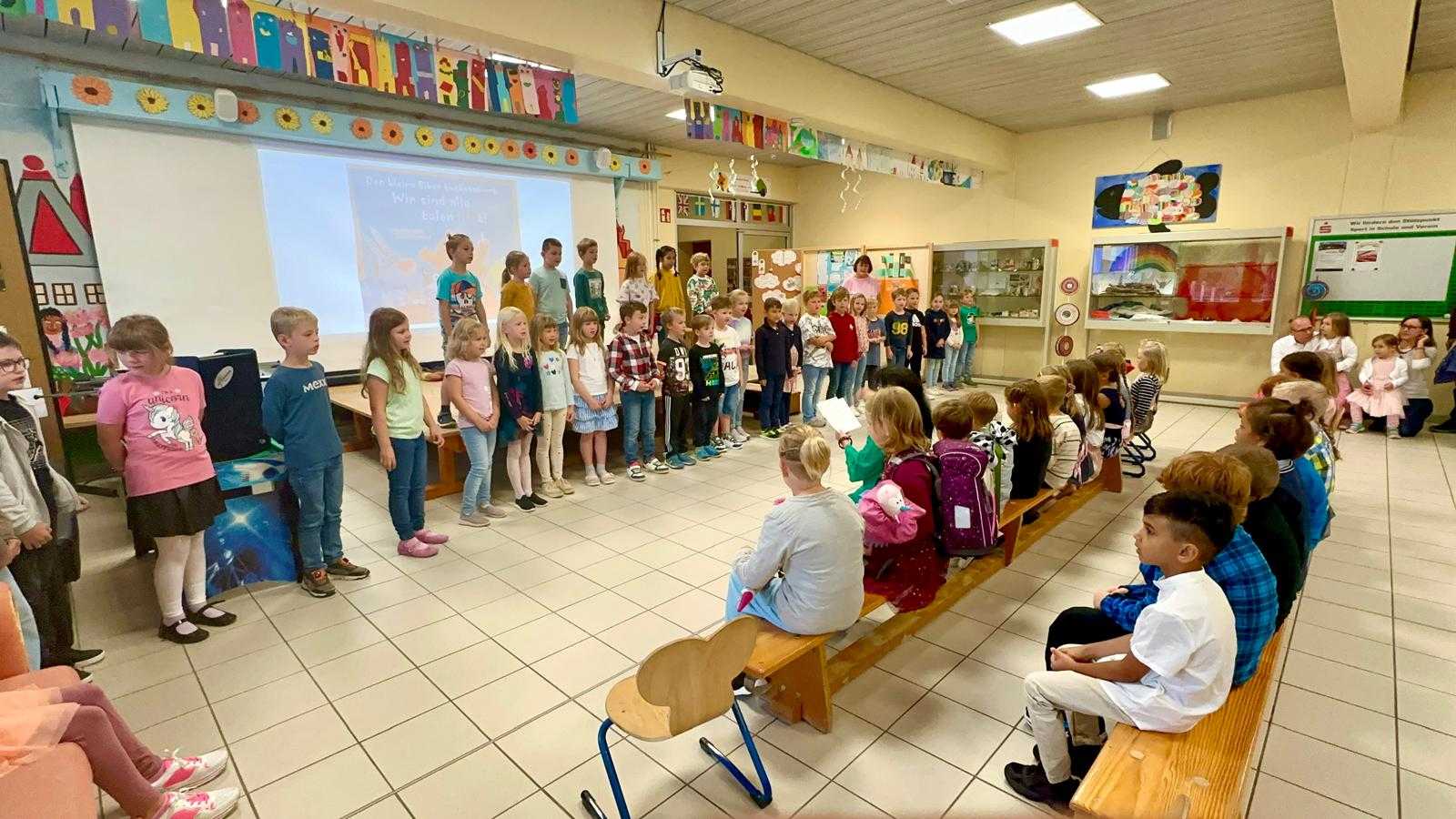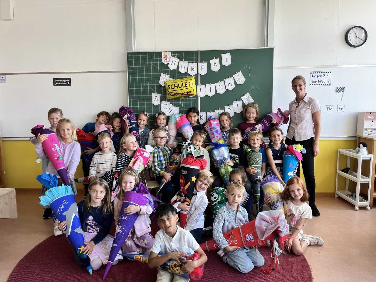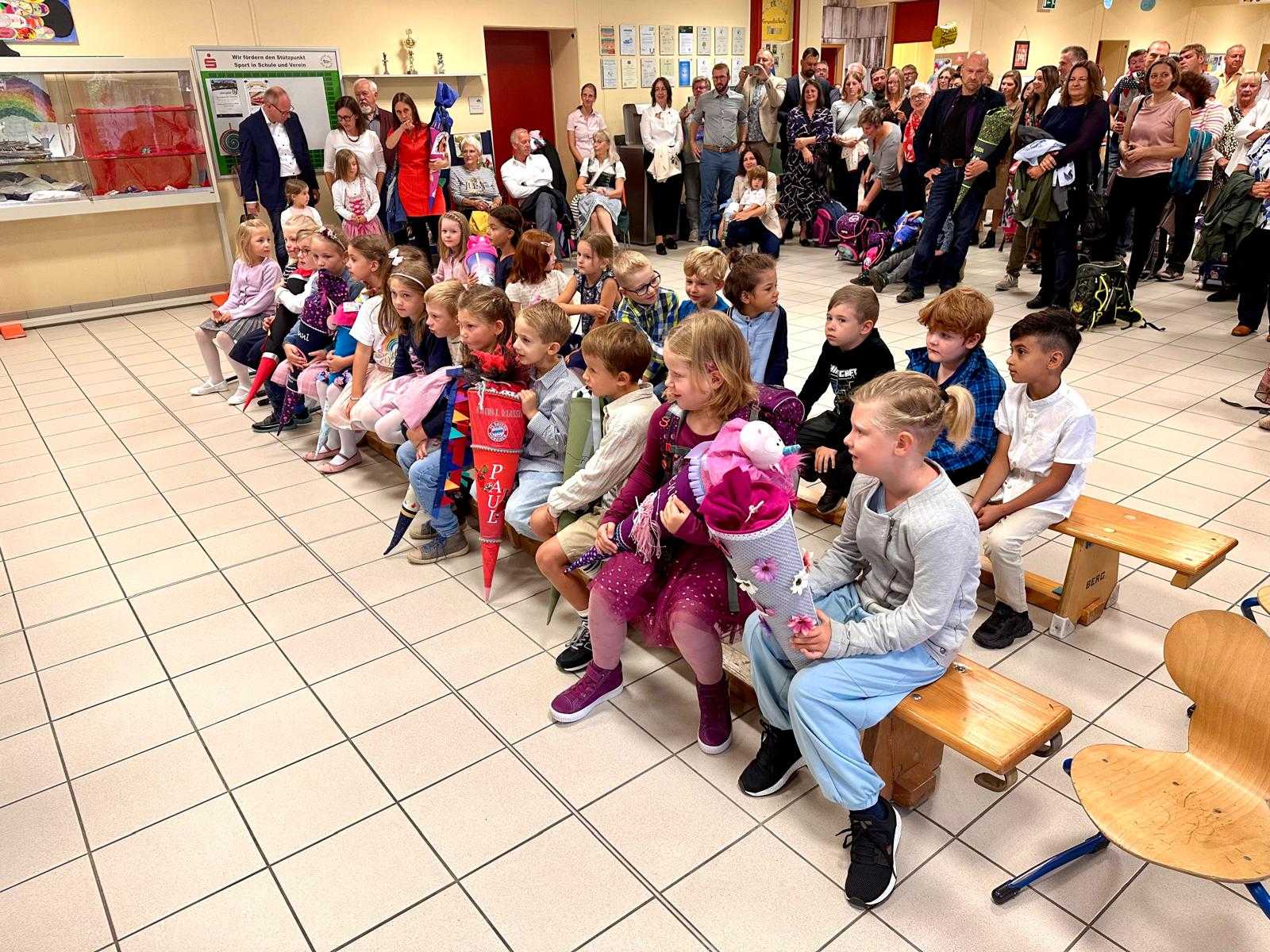Am Anfang eines neuen Schuljahres steht natürlich die Einschulung unserer ABC-Schützen. In diesem Jahr konnten wir 24 Erstklässler willkommen heißen. Gemeinsam mit ihrer Klassenlehrerin Frau Miriam Schneider wurden die Kinder und ihre Gäste von den beiden 2. Klassen und Rektorin Monika Baumgarten in unserer Aula herzlich begrüßt. Die "Großen" trugen die Geschichte "Der kleine Biber buchstabiert: Wir sind alle talentiert!" vor und sangen das Lied "Kommt, wir rechnen, schreiben, lesen!". Anschließend durfte die Klasse 1a mit allen Gästen ihr Klassenzimmer erkunden. Während einer ersten kurzen Unterrichtseinheit wurden die Gäste mit Kaffee und Kuchen verwöhnt. Der gemeinsame Anfangsgottesdienst in der Kirche St. Marien beendete den ersten aufregenden Schultag.