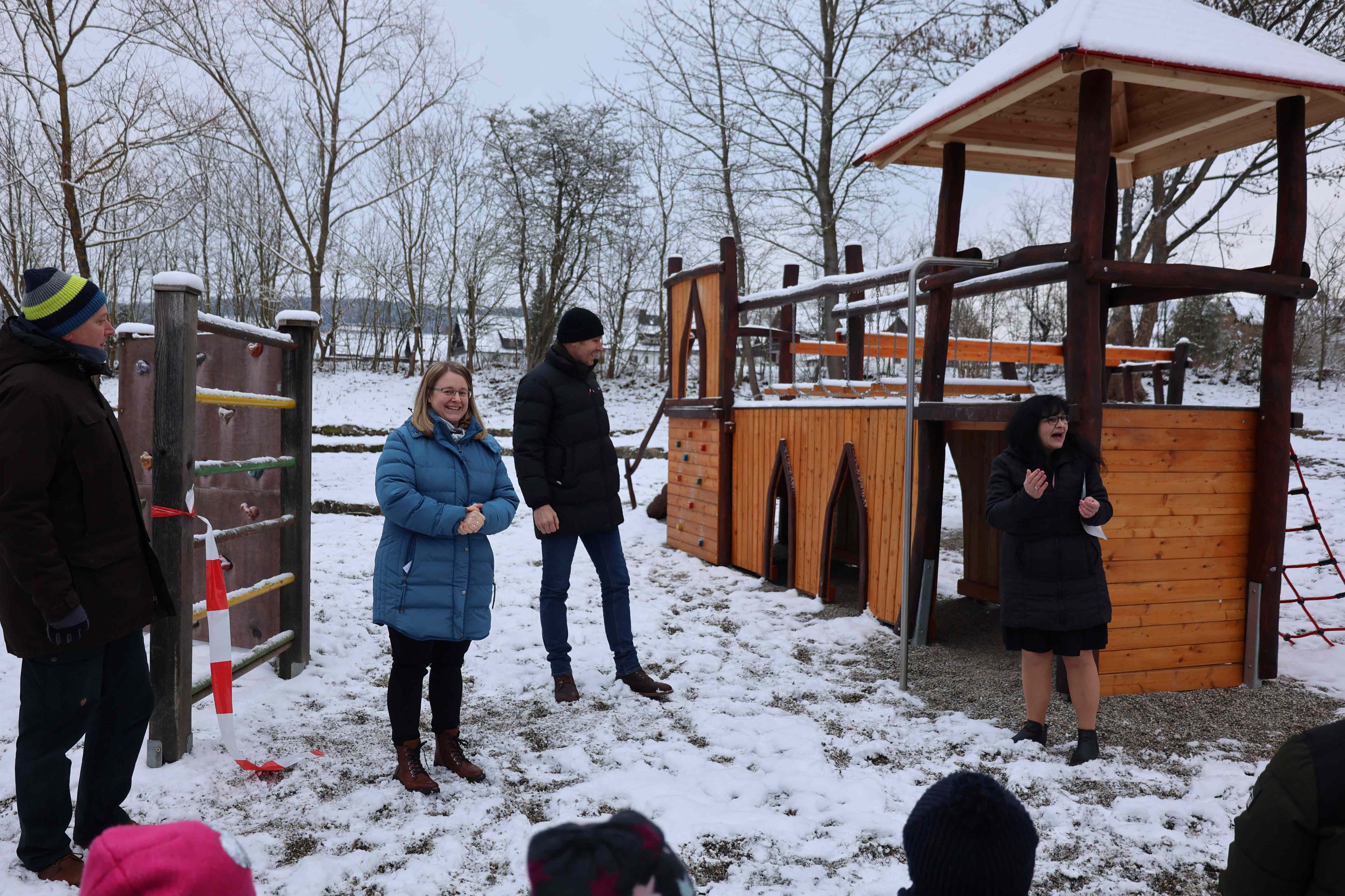 Das alte Schiff im Pausenhof war leider in die Jahre gekommen und wir mussten uns schweren Herzens davon trennen. Gemeinsam mit dem Elternbeirat und dem Förderverein wurde der Wunsch nach einem neuen Spielgerät an unsere Gemeindeverwaltung herangetragen. Ohne großes Zögern gab es dann auch das "OKAY" vom Gemeinderat. Den Auftrag zum Bau einer neuen Kletteranlage bekam das regionale Unternehmen von Heinrich Bächmann in Aufseß. Finanziert wurde das neue Klettergerüst von unserer Gemeinde und dem Förderverein. Um uns dafür zu bedanken, luden wir alle Beteiligten, Schüler und Eltern zu einer feierlichen Einweihung im Januar ein. Mit einer kurzen Ansprache im Freien bedankte sich die Schulleiterin Frau Monika Baumgarten und symbolisch wurde ein Absperrband zur Eröffnung zerschnitten. Anschließend gab es ein kleines Programm in unserer Aula. Die Einweihungsfeier endete mit Kaffee, Tee und kleinen Knabbereien. Vielen Dank an Frau Denk für die Bereitstellung der Fotos!