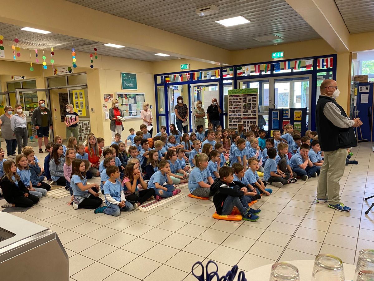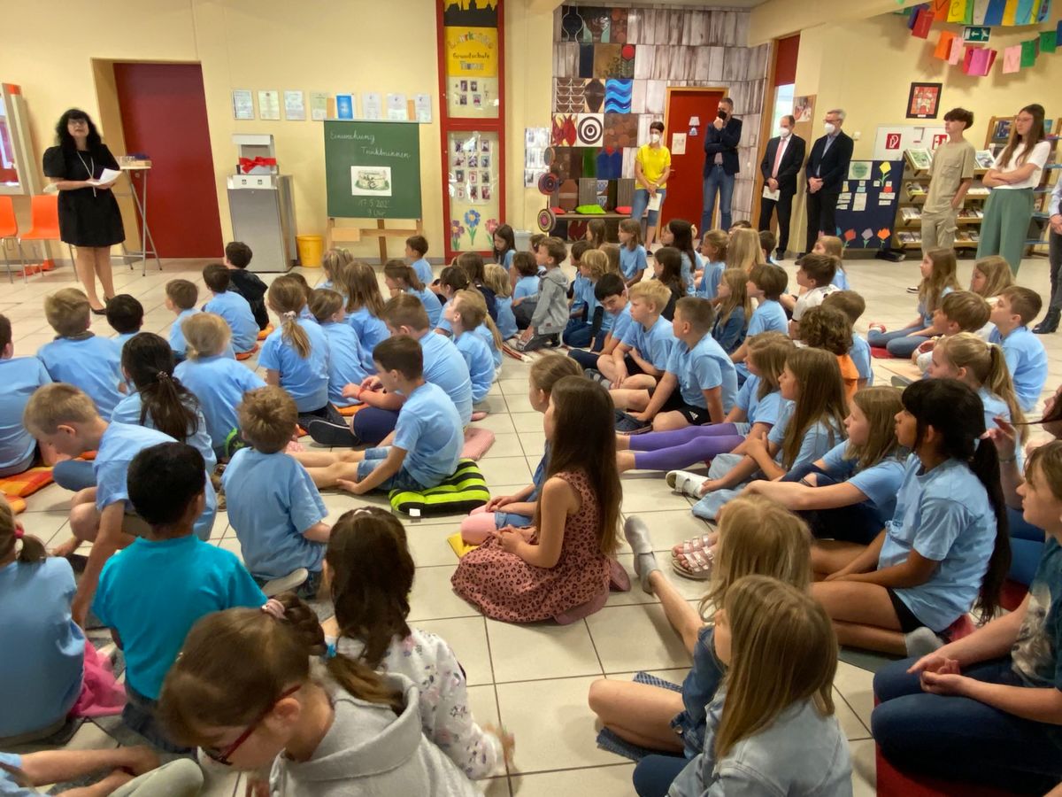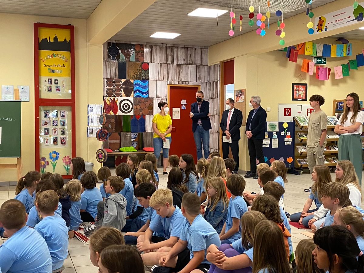 Während eines Projektes "vor langer, langer Zeit" kam der Wunsch nach einem Wasserspender für unsere Schule auf. Bei der Gemeindeverwaltung Thurnau fand diese Idee sofort Zuspruch. Die Marktgemeinde nahm rasch Kontakt mit den Stadtwerken Kulmbach auf und gesponsert von diesen und der Sparkasse Kulmbach ermöglichte sie es uns, einen Trinkbrunnen aufzustellen. Nach den Einschränkungen der letzten Monate konnten wir unseren Wasserspender nun zur Nutzung freigeben. Neben Ehrengästen waren natürlich alle Klassen zur kleinen Einweihungsfeier in die Aula geladen. Unsere Bläserklasse, unter der Leitung von Herrn Bierwirth, sorgte mit "Wassermusik" für einen feierlichen Rahmen. Wie bei einer großen Einweihungsfeier üblich, wurde von den Ehrengästen der Wasserspender offiziell zur Nutzung freigegeben. Der Ansturm auf unseren Trinkbrunnen ist auch Tage danach noch nicht verebbt. Alle nutzen das Angebot an gekühltem und gesprudeltem Wasser mit großer Freude. Wir sagen herzlichen Dank an Herrn Bernreuther und die Marktgemeinde Thurnau, an Herrn Pröschold von den Stadtwerken Kulmbach und an Herrn Präg von der Sparkasse für dieses großzügige Geschenk!