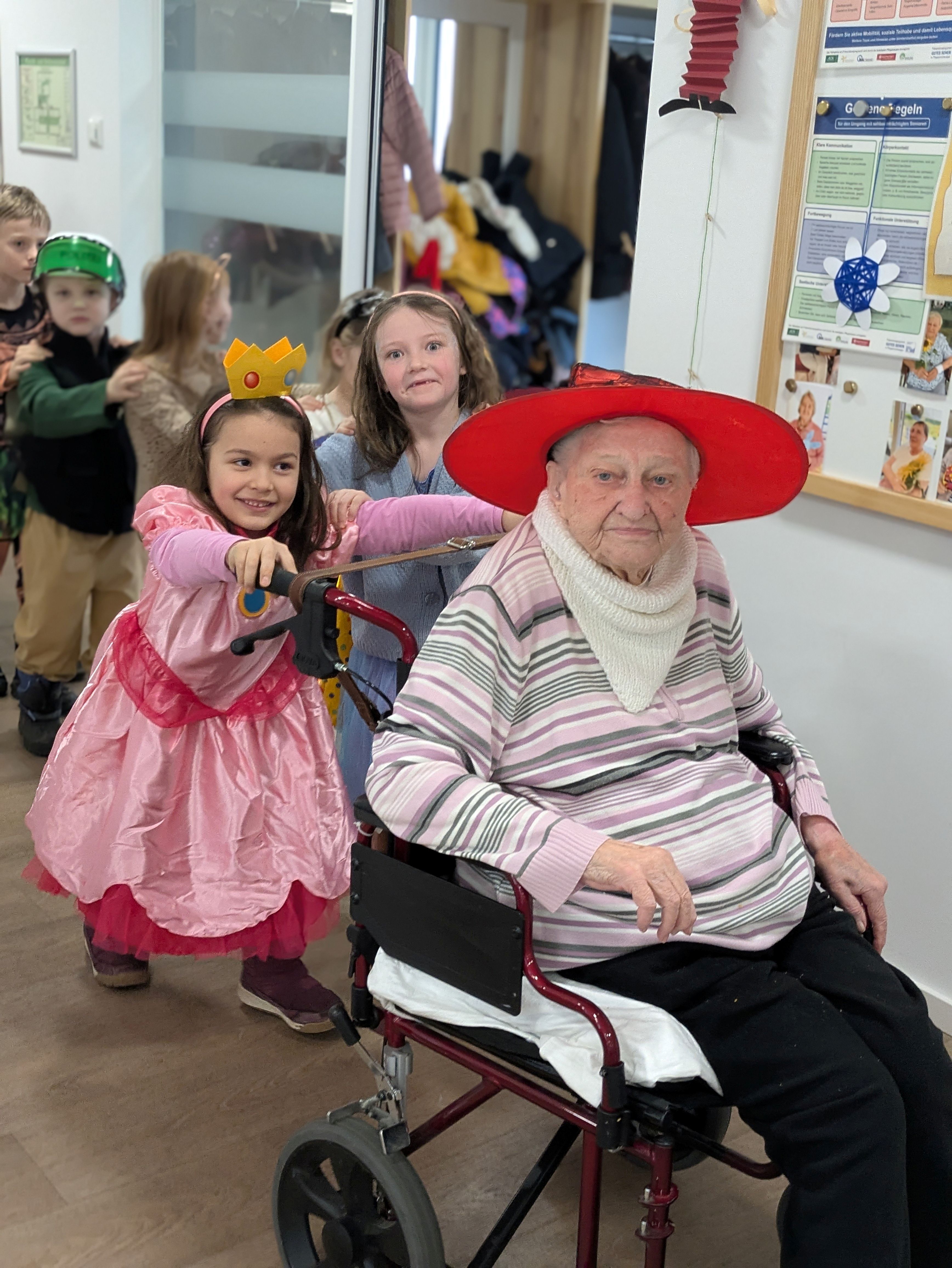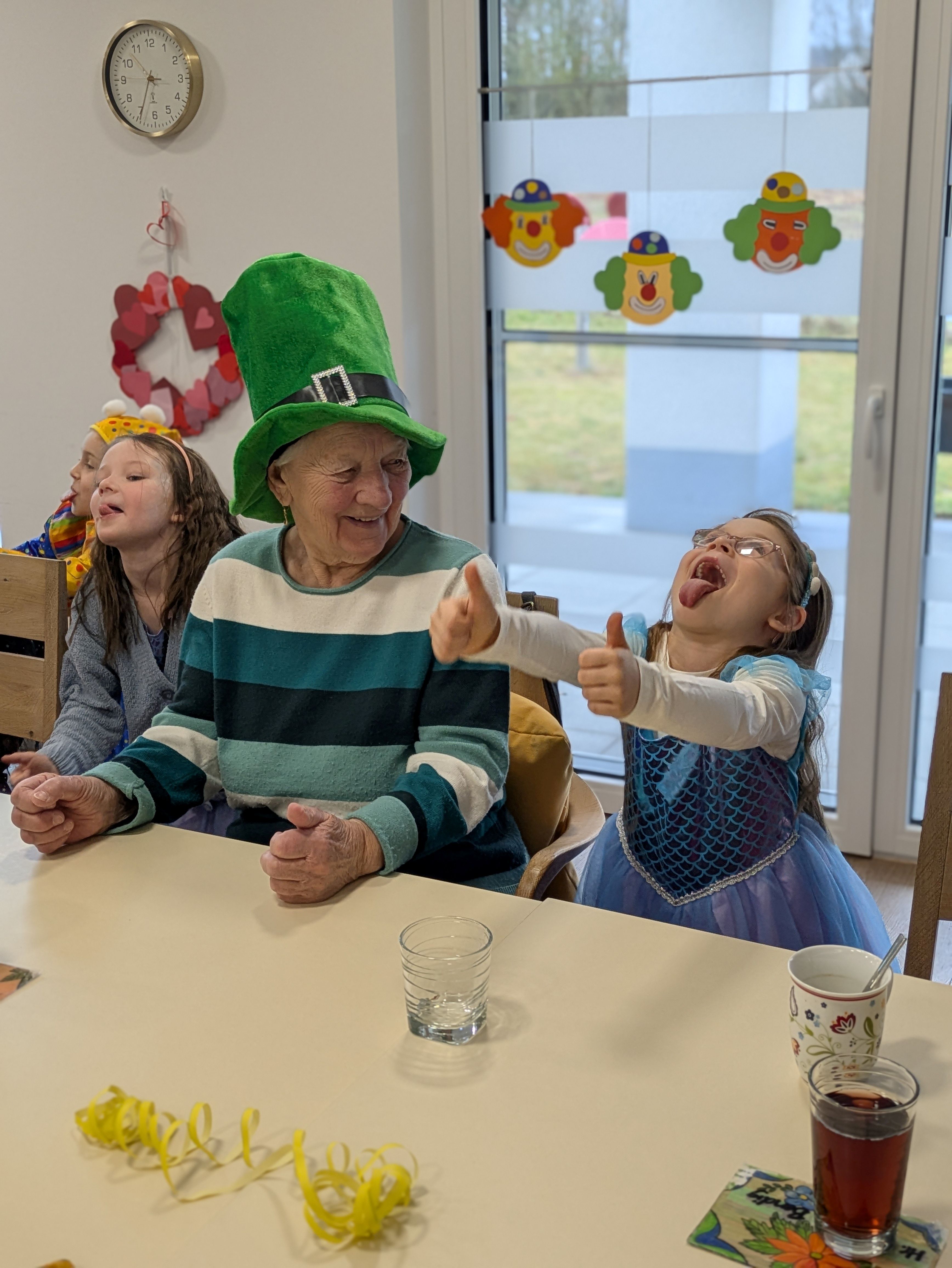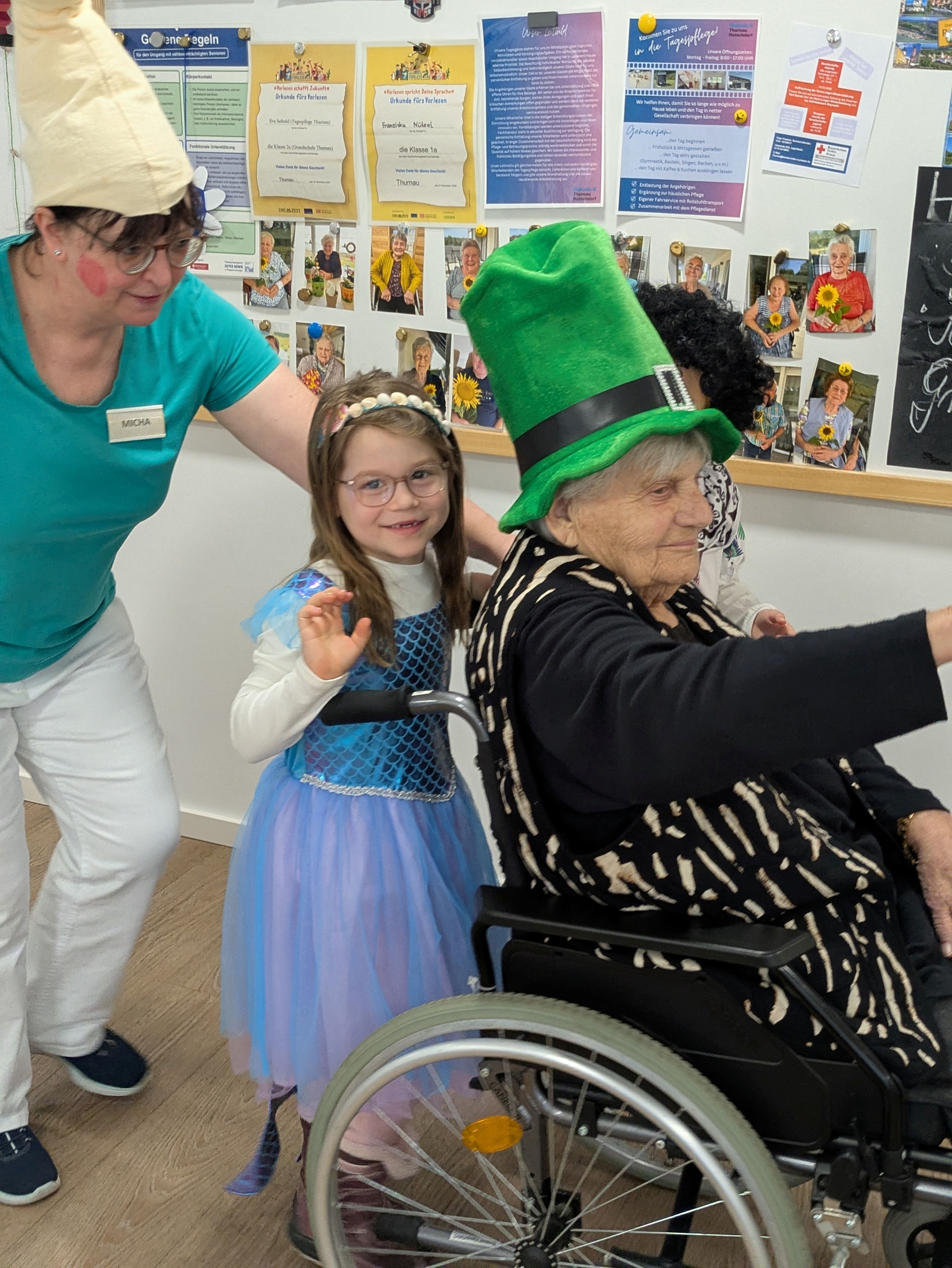 Die Klasse 1a besuchte am letzten Schultag vor den Ferien die "Faschingsparty" in der Tagespflege Thurnau. Lustig verkleidet und mit guter Laune im Gepäck sangen und tanzten Kinder und Gäste fröhlich miteinander. Vielen Dank für den tollen Vormittag!