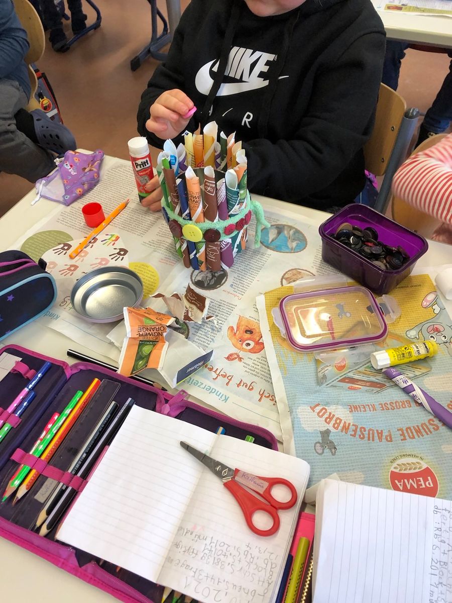 In dieser bayernweiten Projektwoche erhielten unsere Schüler/innen die Gelegenheit in kleinen Lerneinheiten und Aktionen selbst aktiv zu werden und verschiedene Aspekte einer gesundheitsförderlichen und nachhaltigen Lebensweise kennenzulernen. So wurden die Kinder zum Beispiel kreativ beim Upcycling von Tetra Pak oder widmeten sich dem achtsamen Umgang mit Rohstoffen bzw. Ressourcen der Erde. (Recycling). Eine Klasse stellte mit einigen Übungen aus der „Rückenschule“ den Aspekt der Gesundheit in den Mittelpunkt. Die Klasse 4a beschäftigte sich anhand der Erstellung und Auswertung eines Müllprotokolls mit einem möglichst umweltfreundlichen, müllvermeidenden Lebenswandel und gönnte sich zum Abschluss der Projektwoche ein nachhaltiges Frühstück: Verpackungsarm und (überwiegend) gesund!