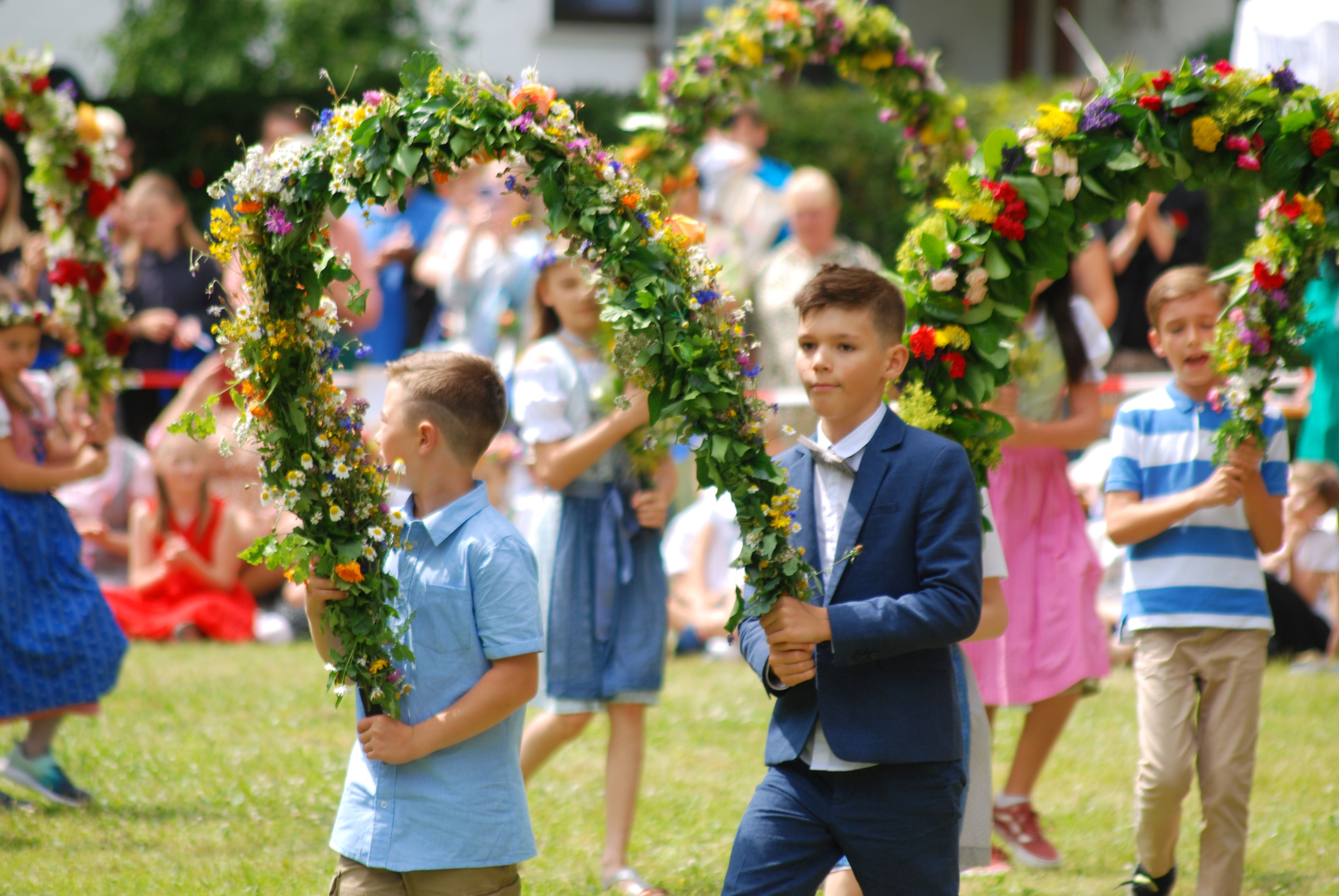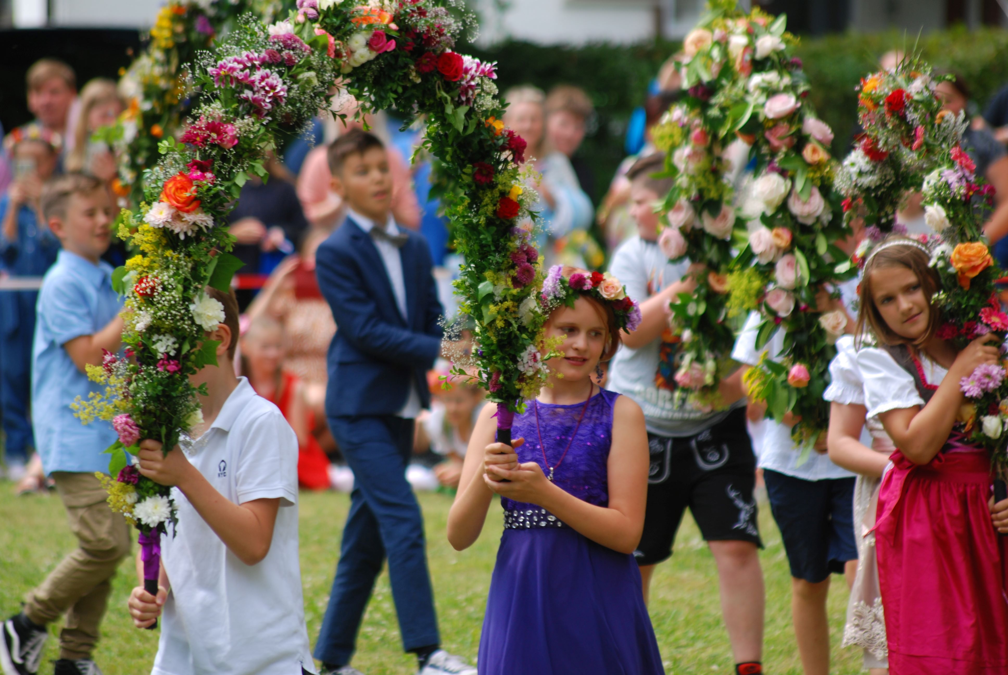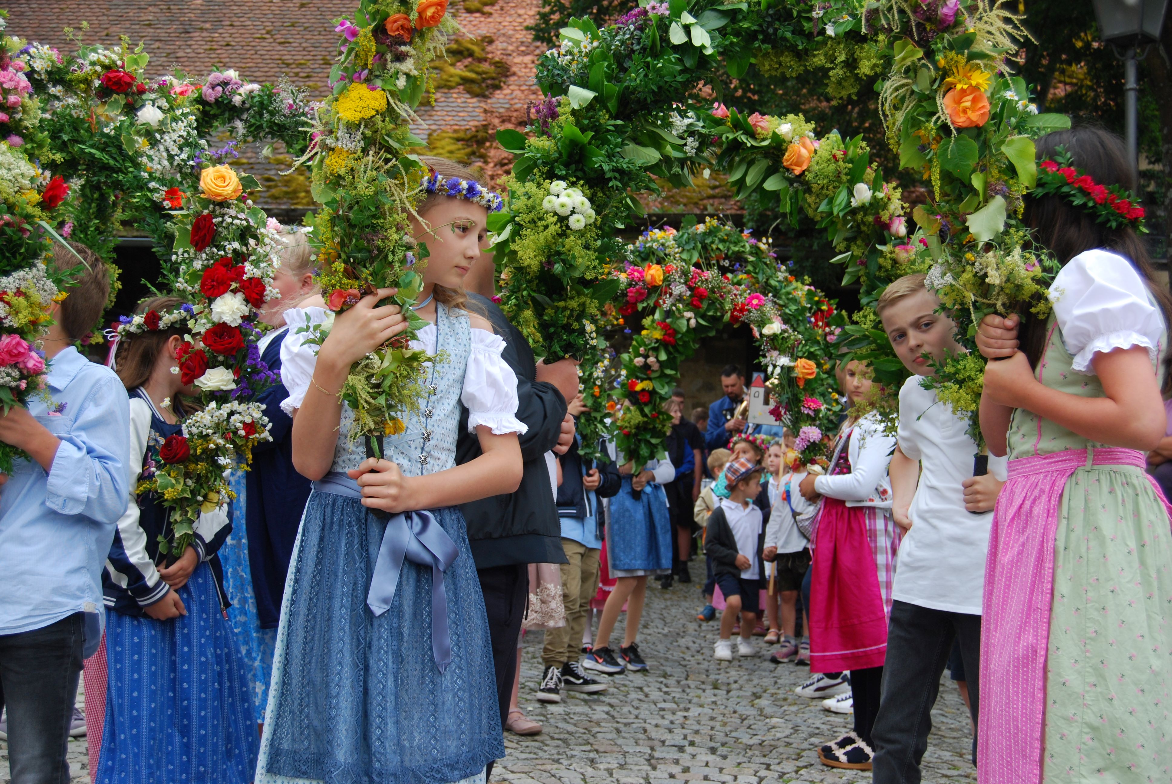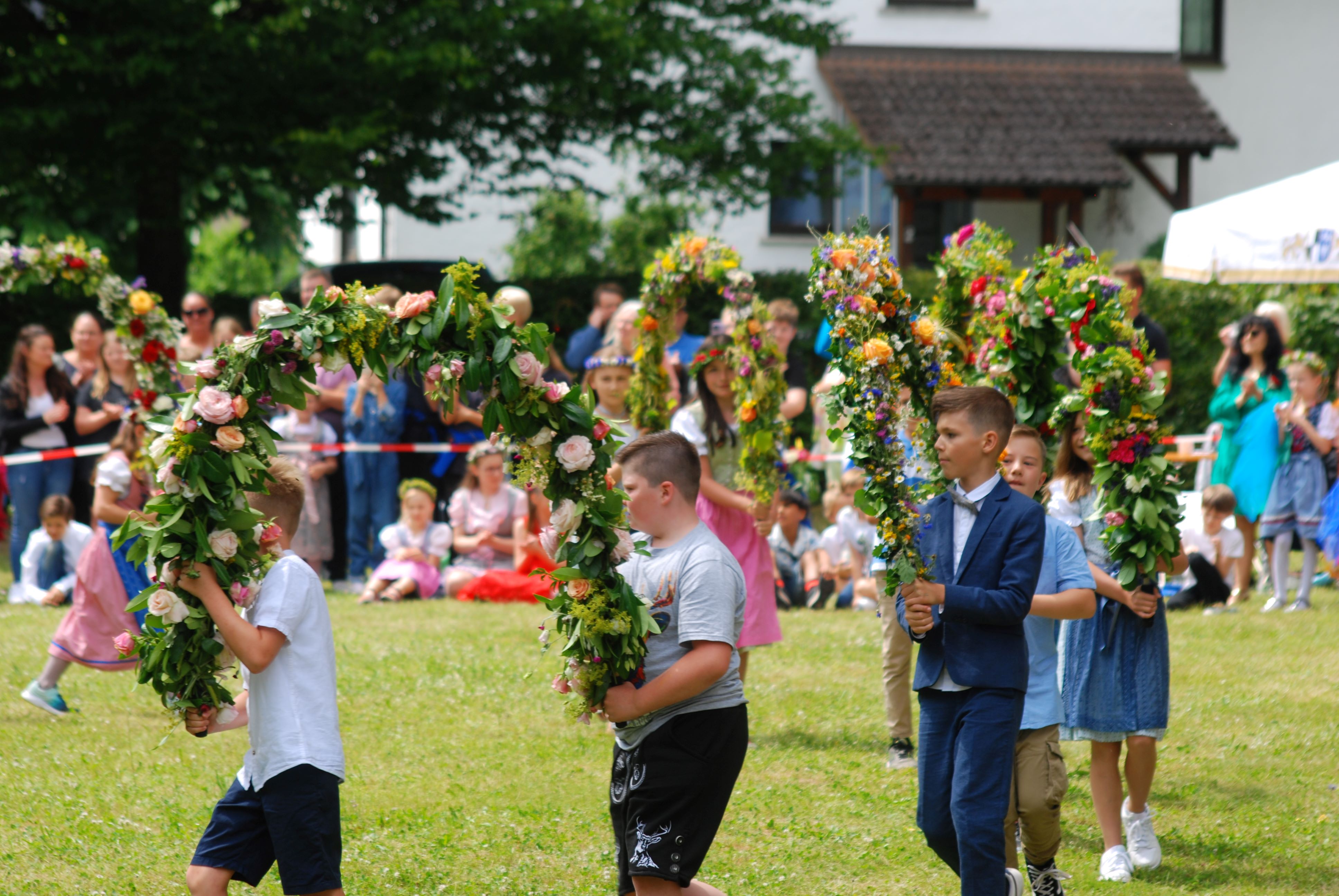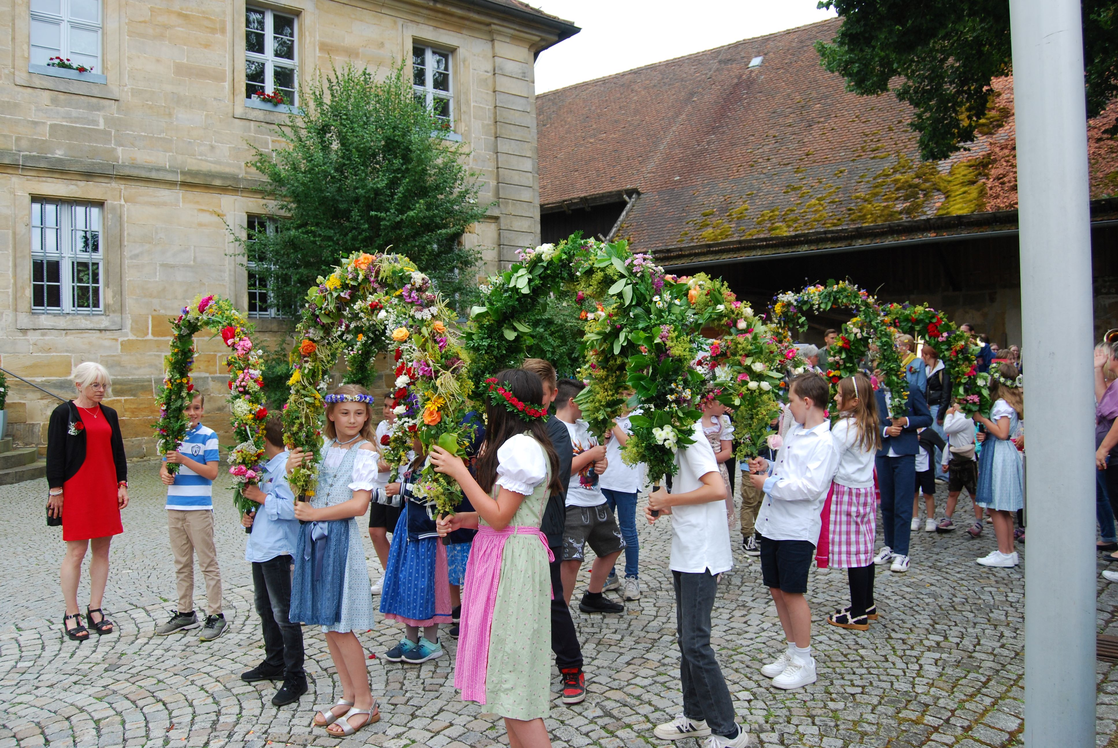 Mit Blumen oder Fahnen geschmückt zog der große Festumzug vom Rathaus zum Schützenplatz, voran die wunderschönen Bogenkränze der 4. Klasse. Fleißige Eltern hatte diese am Tag vorher liebevoll gebunden. Für die musikalische Begleitung sorgte natürlich unser Musikverein Thurnau mit seiner stimmungsvollen Blasmusik. Auf dem Festplatz wurden die Kinder von vielen Gästen herzlich begrüßt. Alle Klassen sangen gemeinsam das Gregori-Lied und zwei Kinder der 4a trugen das Gregori-Gedicht vor. Anschließend präsentierten unsere Schüler klassenweise ihre eingeübten Tänze. Zum Abschluss des Programmes begeisterten unsere beiden Bläserklassen unter der Leitung von Herrn Bierwirth die Zuhörer. Der Gartenbauverein übernahm mit Hilfe vieler tüchtiger Kuchenbäckerinnen die Bewirtung mit Kaffee und leckerem Kuchen. Verschiedene Spielstationen standen für alle Kinder bereit. Den Abschluss fand das Gregori-Fest mit dem Fackelumzug am Abend, bei dem die Bogenkränze von den Kindern zerpflückt werden.
