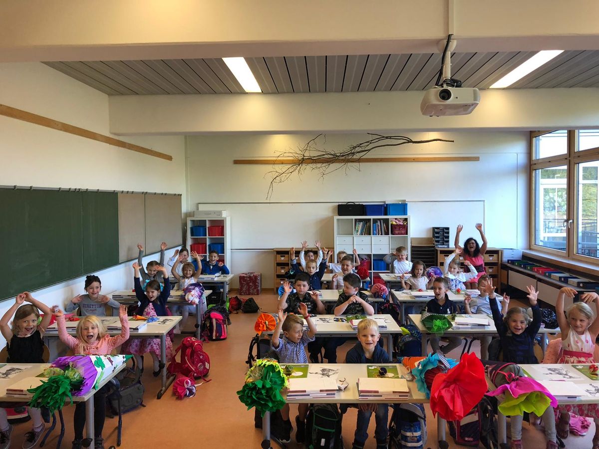 Natürlich wurden auch in diesem "schwierigen" Schuljahr unsere neuen Erstklässler herzlich willkommen geheißen. Im Pausenhof begrüßten die Schüler der zweiten Klasse alle Gäste mit kleinen Gedichten. Anschließend gingen die 23 ABC-Schützen gemeinsam mit ihrer Klassenlehrerin Frau Baumgarten in ihr Klassenzimmer und lernten die Zauberin Lola kennen. Der Anfangsgottesdienst im sonnigen Pausenhof bildete den feierlichen Abschluss dieses besonderen Tages.