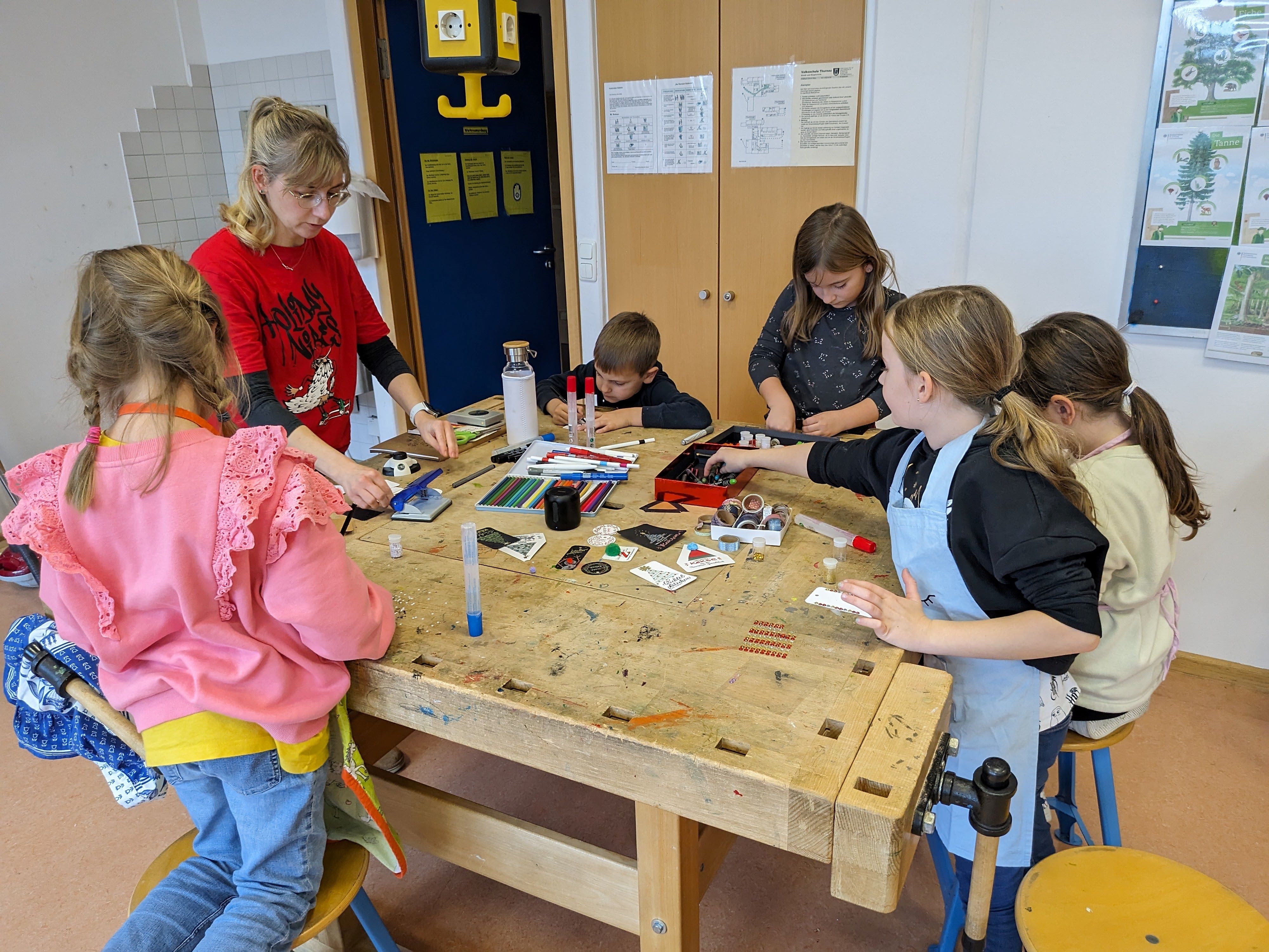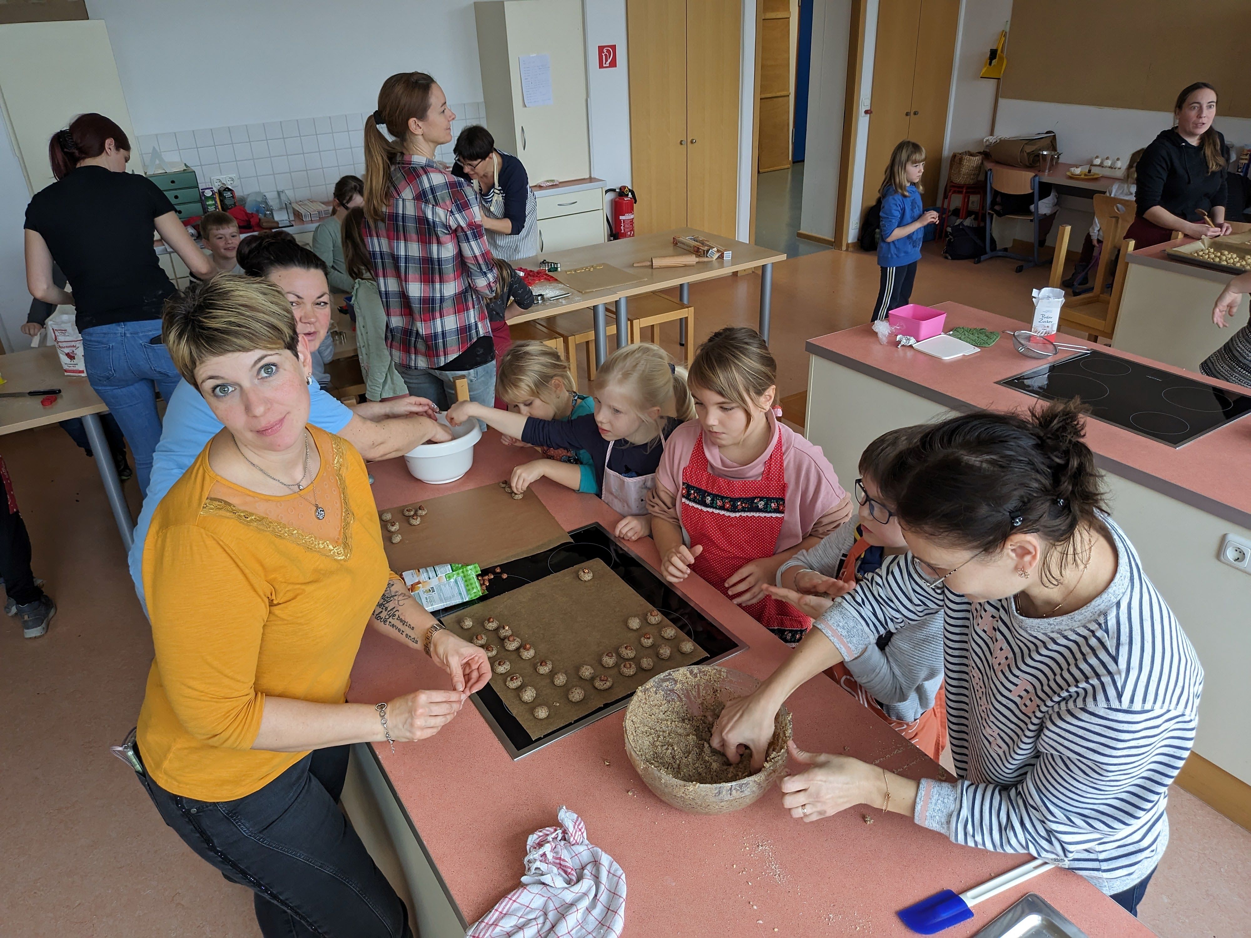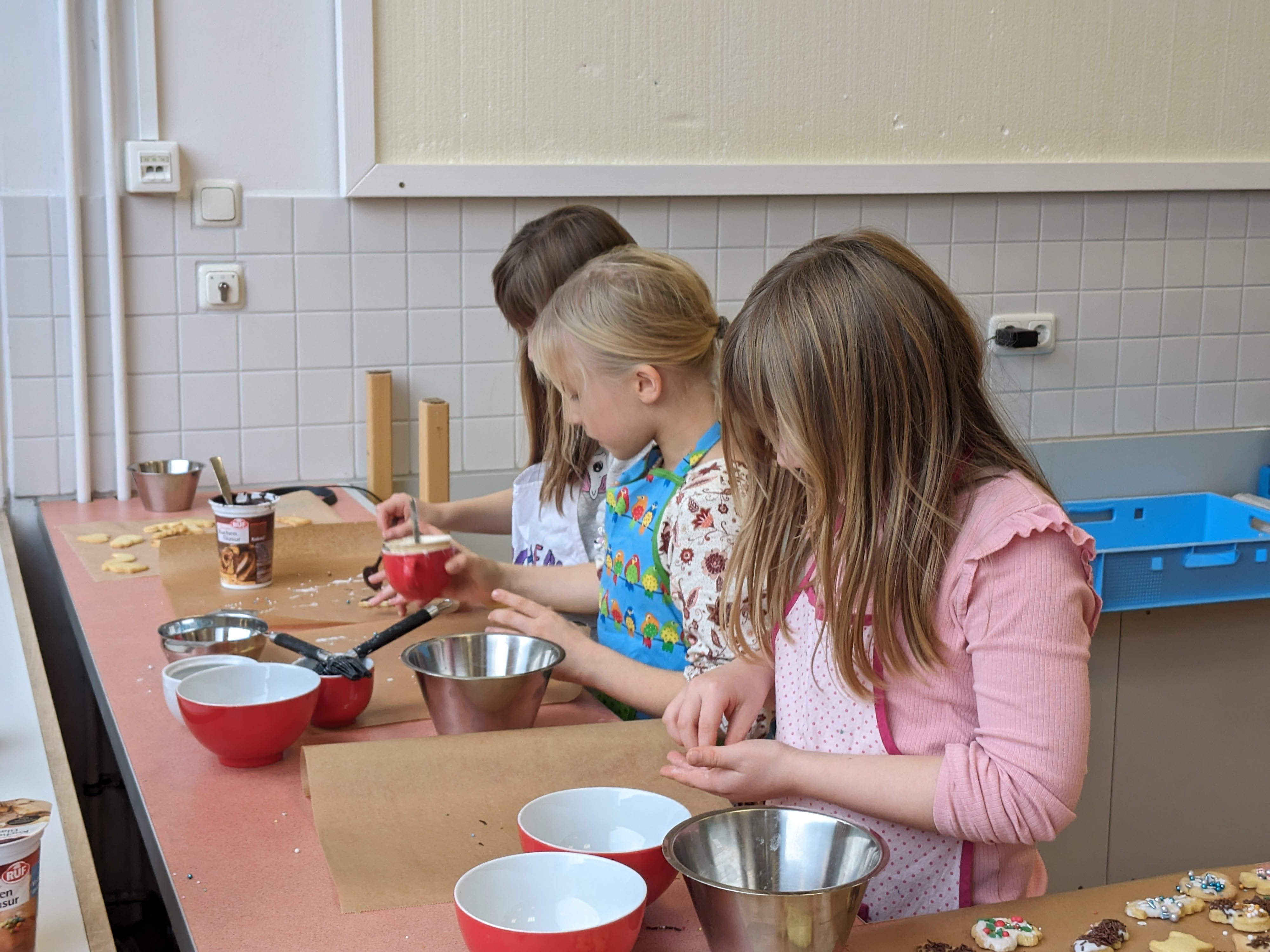 Die Vorweihnachtszeit startet bei uns mit leckerem Plätzchenduft im ganzen Schulhaus. Unser Elternbeirat hat wieder zum Backen in der Schulküche eingeladen. Viele Kinder und fleißige Bäcker*innen trafen sich Ende November und verwandelten unsere Küche in eine "Weihnachtsbäckerei". In kleinen Gruppen wurden leckere Plätzchen gebacken, hübsch verziert und natürlich genascht. Für eine dekorative Verpackung sorgten kleine Künstler zwischen den einzelnen Backladungen. Auf dem Thurnauer Weihnachtstöpfermarkt können diese Leckereien gekauft werden. Vielen Dank an den Elternbeirat und alle Helferlein für diese schöne Aktion!