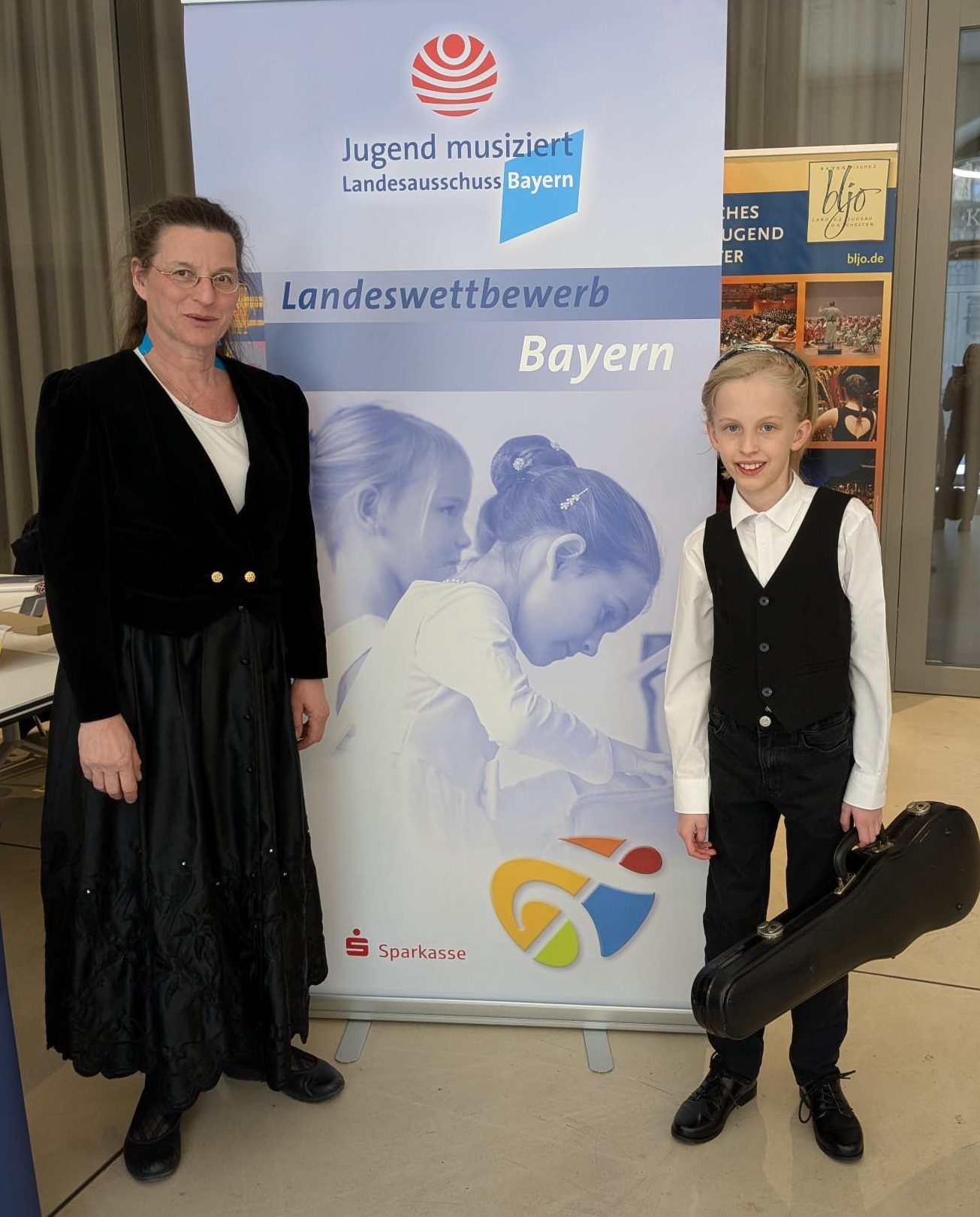Als musikbegeisterte Grundschule sind wir natürlich sehr stolz auf all unsere musikalischen Schülerinnen und Schüler. Viele bewiesen schon im Klassenverband oder bei Schulaufführungen ihr Können. Johann aus unserer Klasse 4a begeisterte uns bereits mehrere Male mit seinem Talent. Im April durfte er mit seiner Violine die Jury in Augsburg beim Landeswettbewerb Bayern von "Jugend musiziert" verzaubern. Gemeinsam mit seiner Musiklehrerin Frau Müller errang Johann einen 3. Preis in seiner Altersklasse. Wir sind beeindruckt und gratulieren ganz herzlich zu diesem sensationellen Ergebnis.