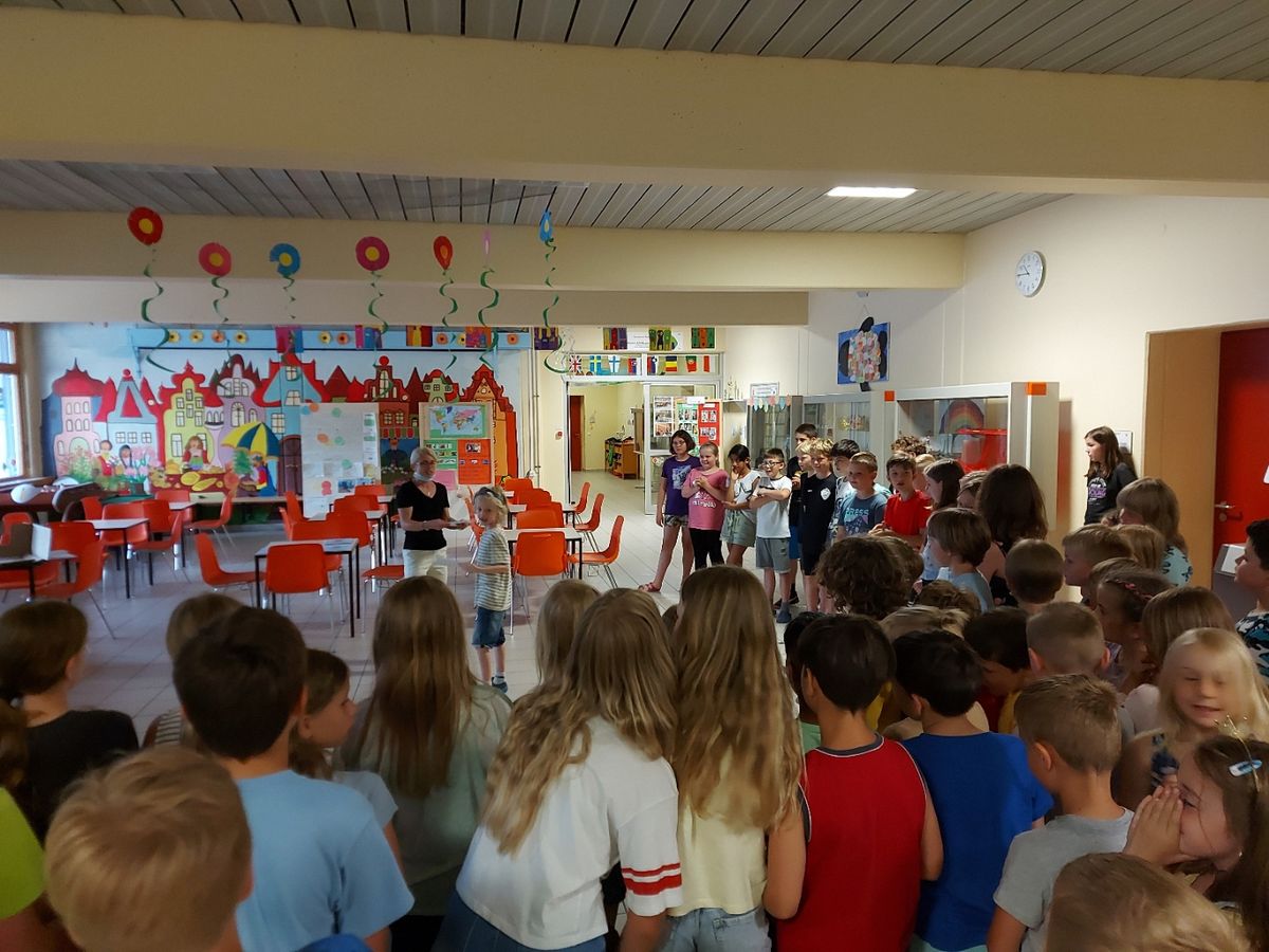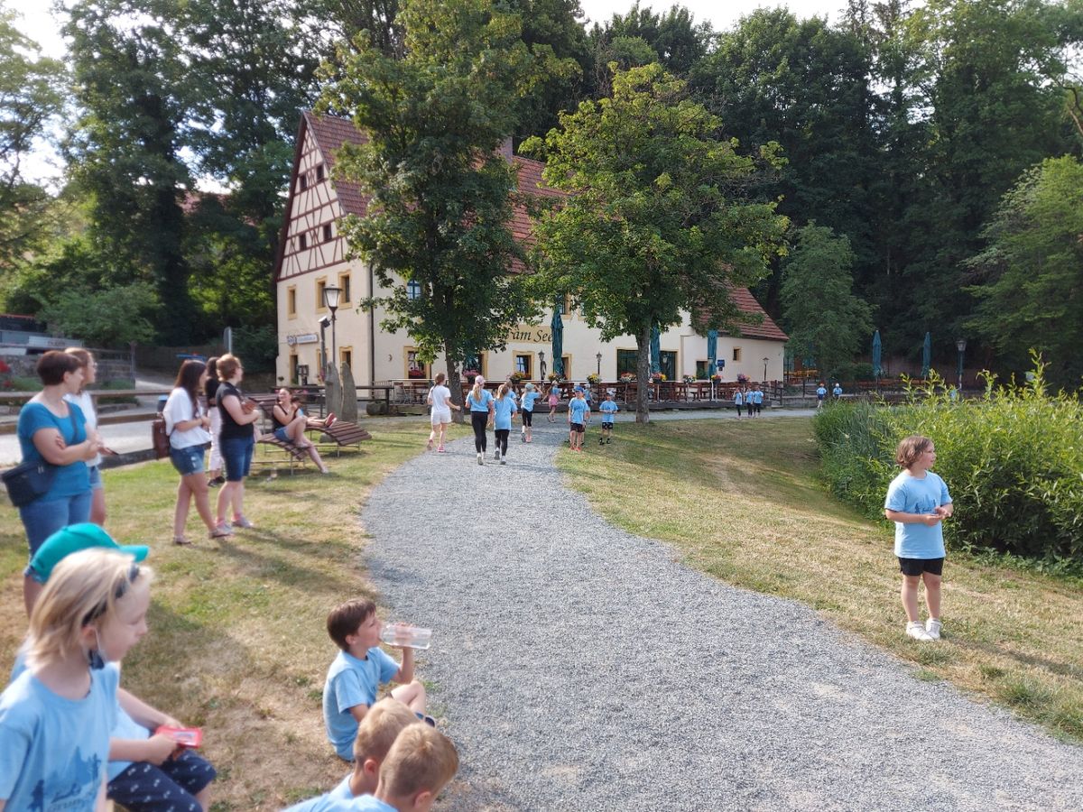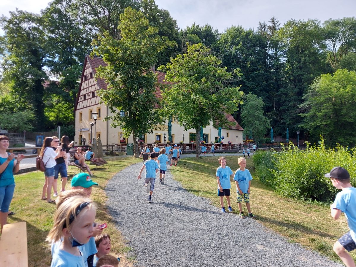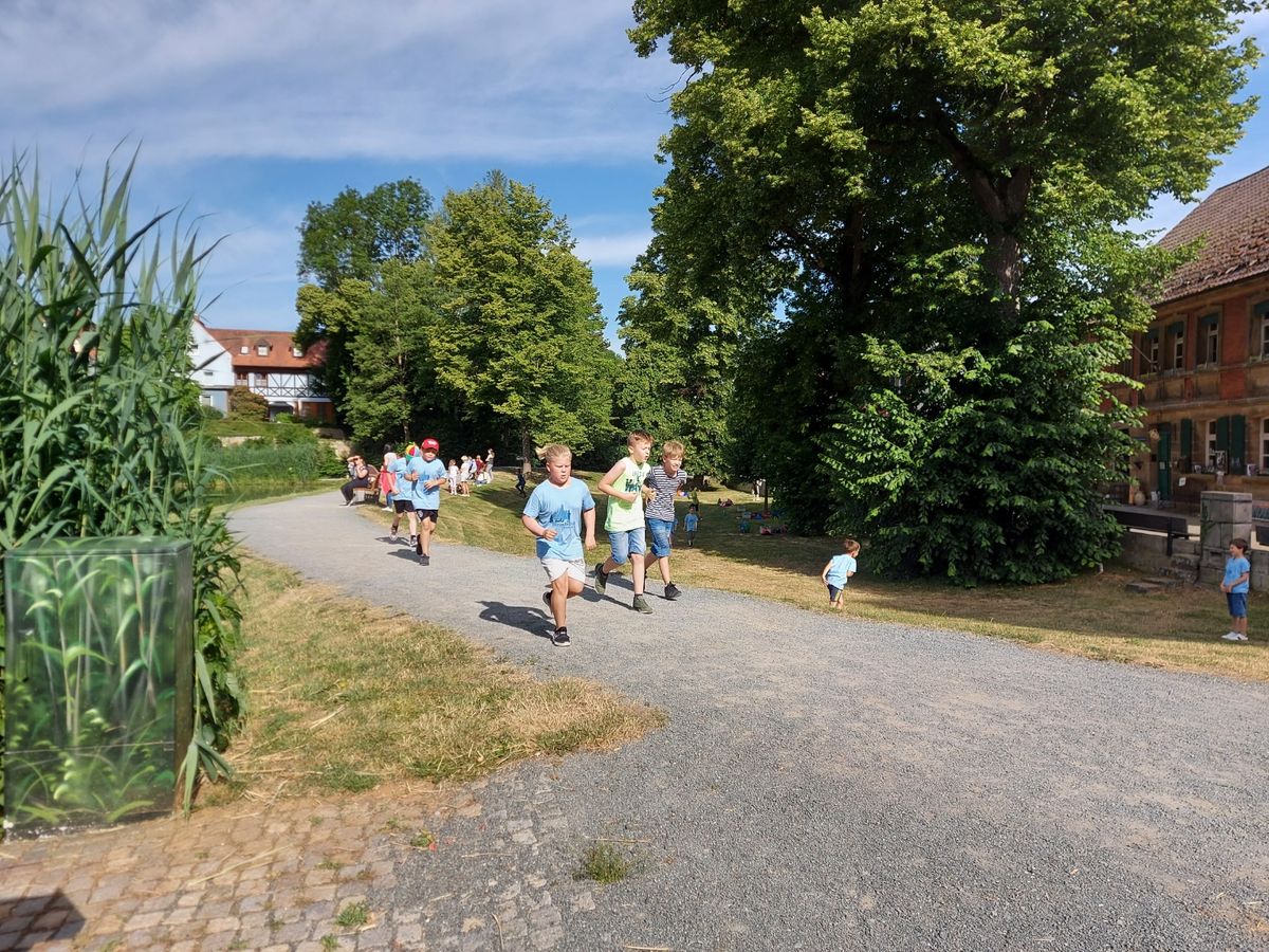 ...und gaaaaanz viele Schüler unserer Grundschule haben dieses Ziel erreicht. Gleich um 8 Uhr trafen sich alle Klassen am wunderschönen Schlossweiher. Bei perfektem Wetter starteten zuerst die Klassen 1 bis 2 ihre 15 min um den Weiher. Die "Großen" und zahlreiche Eltern, Großeltern und andere Zuschauer feuerten die "Kleinen" kräftig an. Anschließend kamen dann die Klassen 3 bis 4 an die Reihe. Die Stimmung war großartig! Alle gaben wirklich ihr Bestes und jeder konnte sehr stolz auf seine Leistung sein. Vom Elternbeirat gab es zum Schluss für alle eine leckere und gesunde Belohnung. Viele fleißige Helferlein hatten ganz frische Obstspieße in unserer Schulküche zubereitet und am Schlossweiher angeboten. Wer die 15 min Ausdauerlauf geschafft hatte, bekam dafür eine Urkunde verliehen.