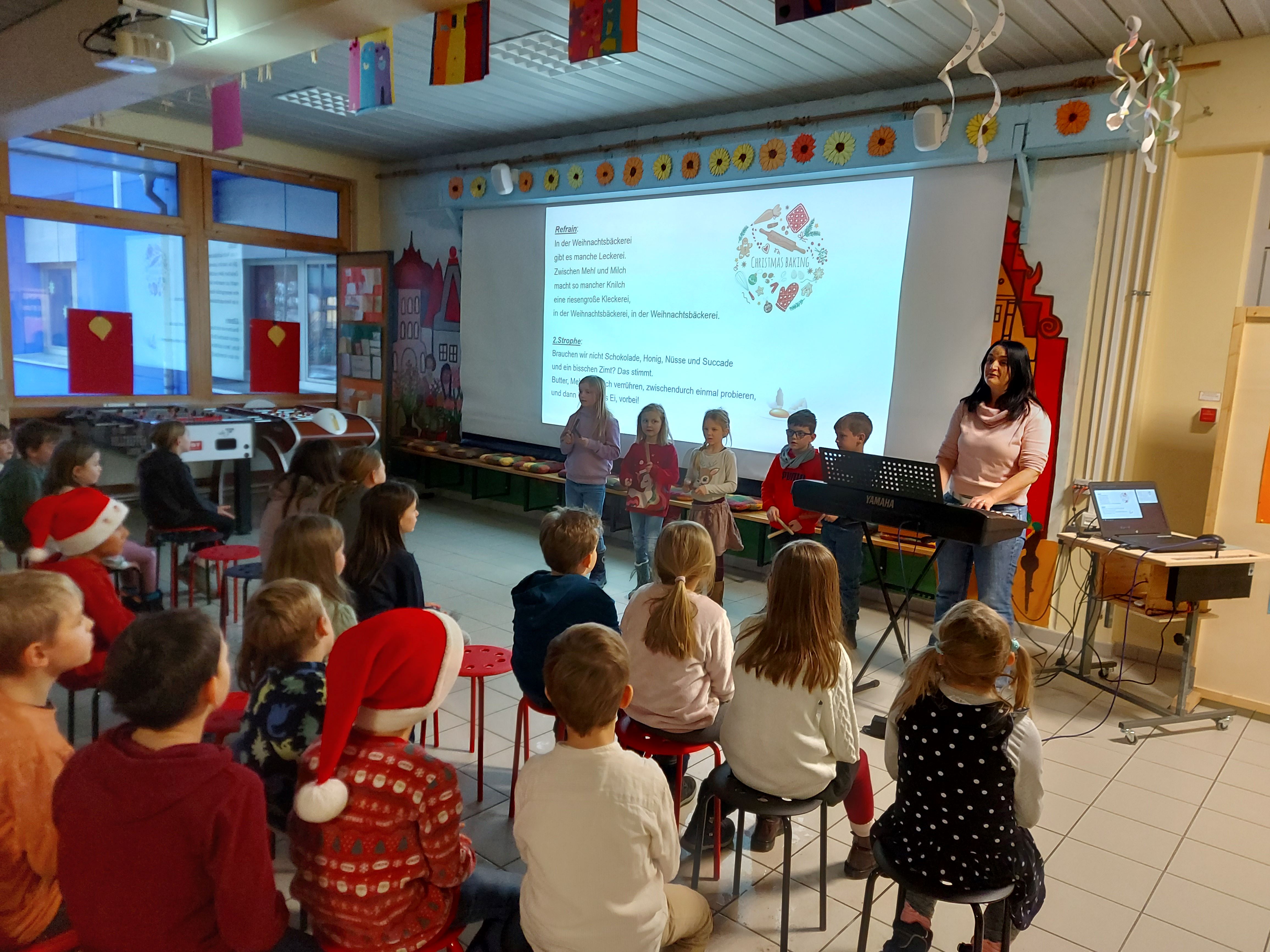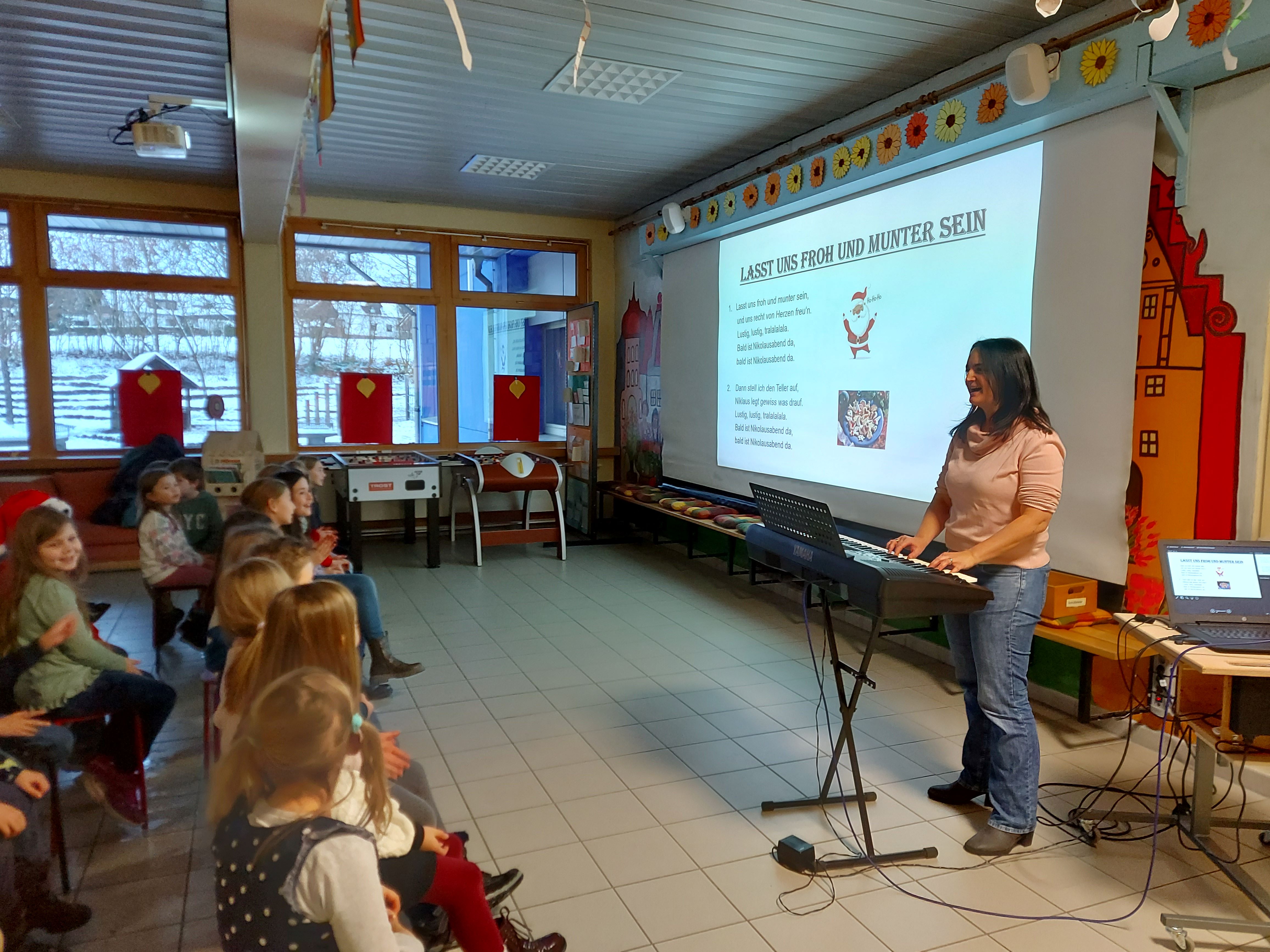 Viele Eltern, Großeltern und andere Verwandte sind unserer Einladung zum gemeinsamen "Adventssingen" mit unseren Schüler*innen und Lehrkräften in der Aula gefolgt. Frau Yvonne Zink präsentierte ein musikalisches Potpourri der schönsten Advents- und Weihnachtslieder und begleitete die kleinen und großen Sänger*innen mit dem Keyboard. Eine Stunde besinnliche Weihnachtsstimmung in unserer Schule. Vielen Dank an Frau Zink für die gelungene Aktion!
