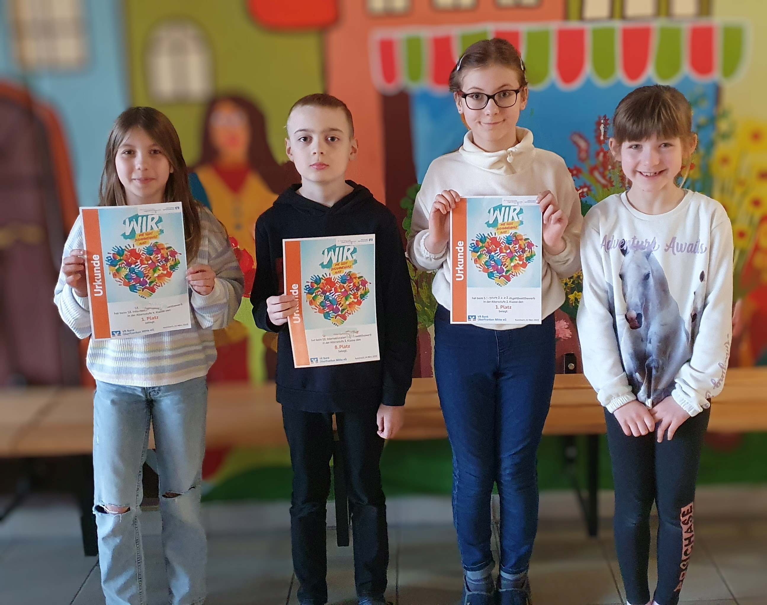 Auch in diesem Jahr beteiligten sich wieder viele Schüler*innen der Grundschule Thurnau mit großer Begeisterung und vielen Ideen am Malwettbewerb “jugend creativ“ der VR Bank. Das Thema lautete: "WIR. Wie sieht Zusammenhalt aus?" So wurden einige Gewinner und Gewinnerinnen ermittelt und mit großzügigen Sachpreisen als Anerkennung beschenkt.