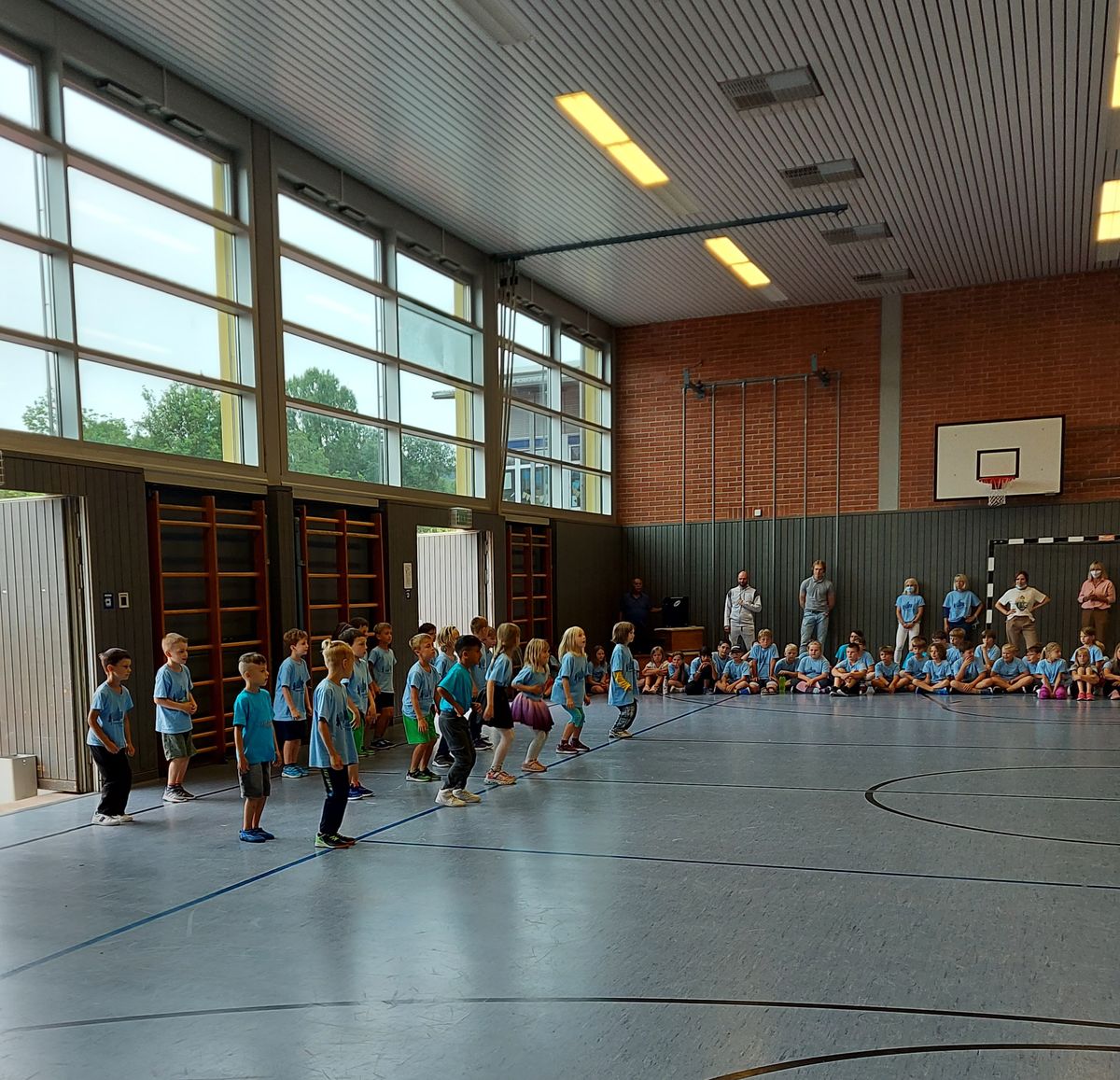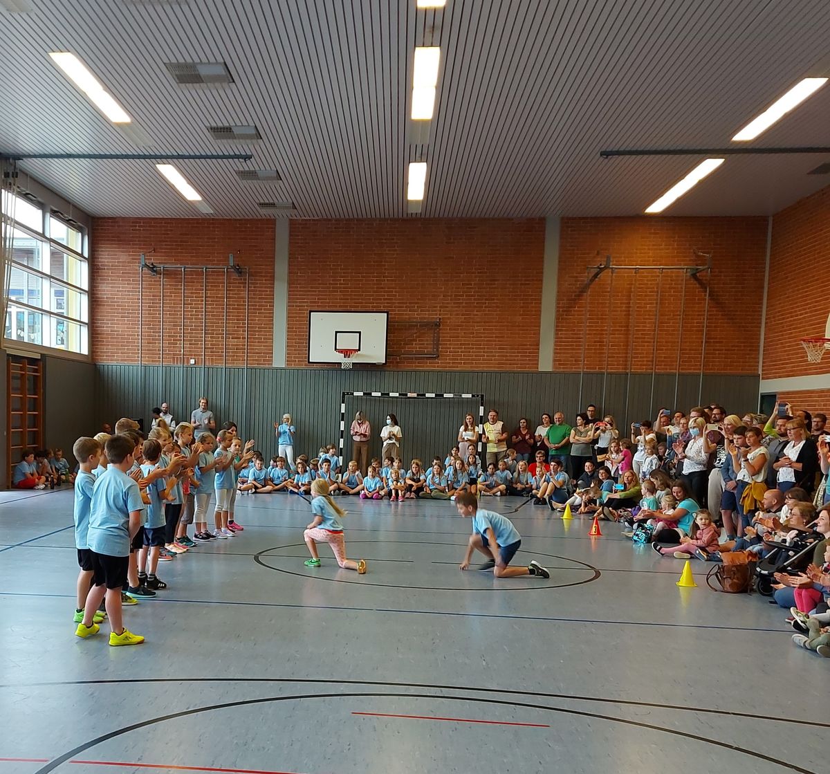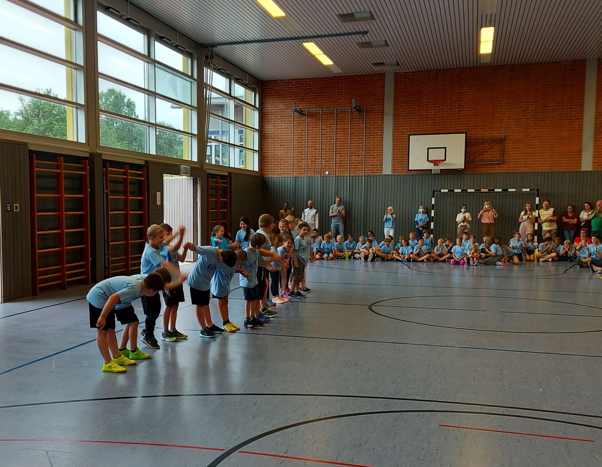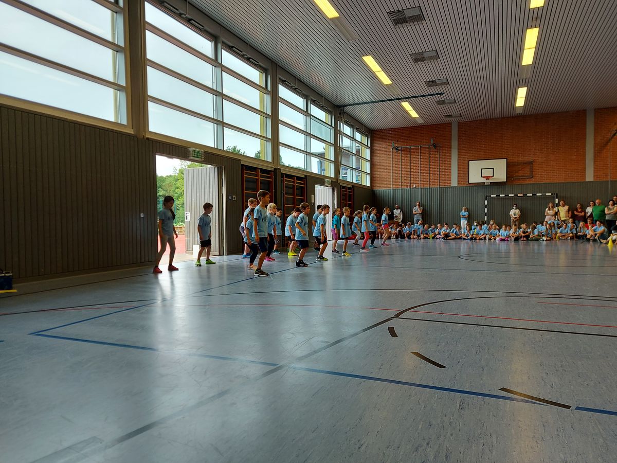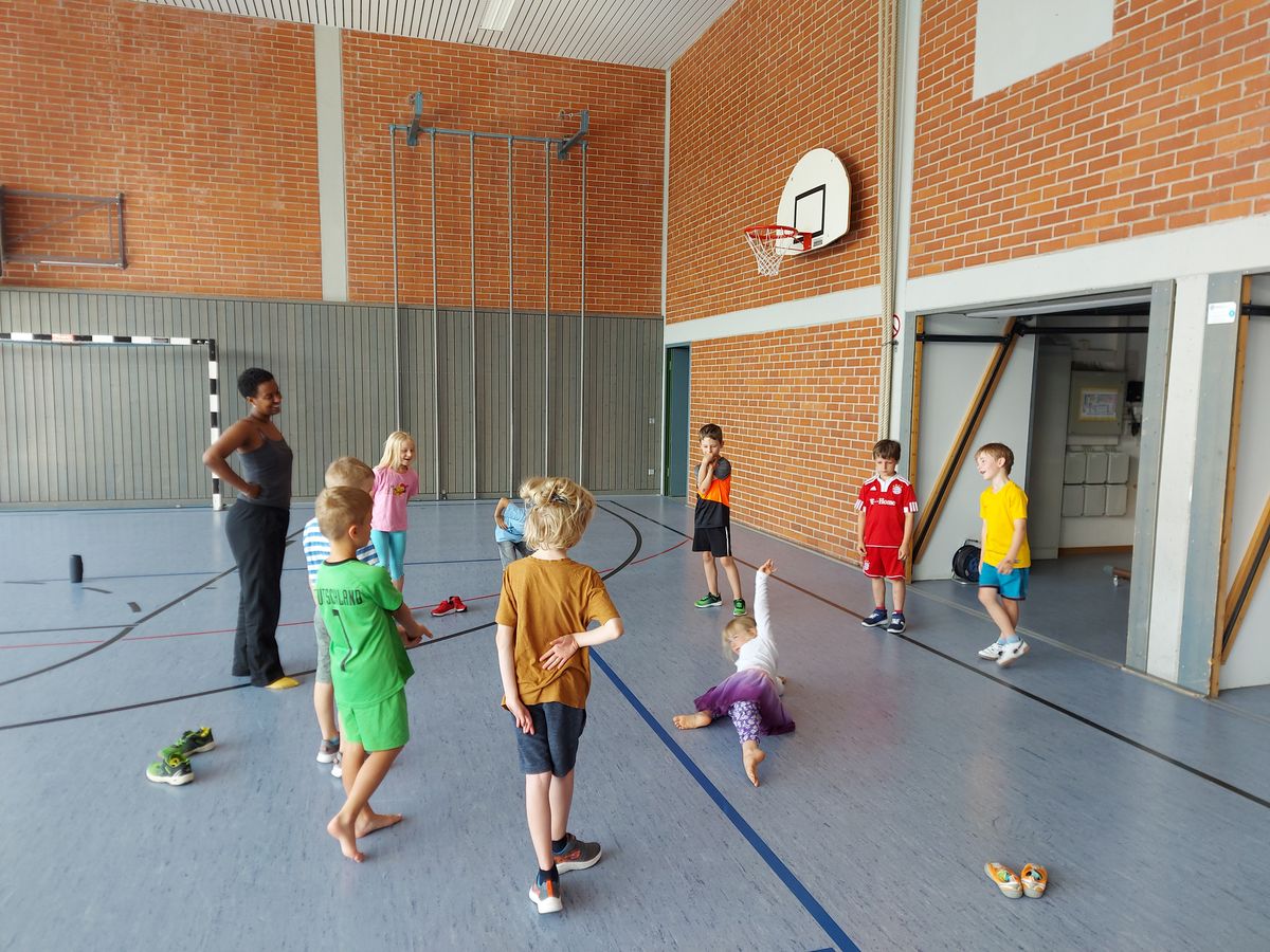 Das "POWERprojekt Schultanzwoche" begeisterte nicht nur unsere Schüler und Lehrkräfte, sondern auch Eltern, Großeltern und viele Gäste. In der Woche vom 27.6. bis 1.7.2022 nahm unsere Schule am Tanzprojekt "Wir bewegen Schule" teil. Zwei professionelle Tanzlehrer haben innerhalb von einer Woche eine beeindruckende Choreographie aus Hip-Hop bzw. Breakdance Elementen mit jeder Klasse einstudiert. Lulia und Sebastian schafften es, aus jedem Kind Bestleistungen mit viel Spaß und Freude herauszuholen. Unsere Schüler haben motiviert und voller Begeisterung an diesem Projekt teilgenommen. Herzlichen Dank an unsere beiden Profitänzer! Bei der großen Tanzaufführung am Freitag präsentierten alle Klassen in der Turnhalle ihre einstudierten Tänze. Höhepunkte waren dabei ihre selbst erarbeiteten freien „Moves“. Das begeisterte Publikum belohnte die kleinen Tänzer mit stürmischem Applause. Unser Dank gilt unserem Förderverein, welcher den Hauptteil der Kosten übernommen hat, und dem Elternbeirat für Kaffee und Kuchen.