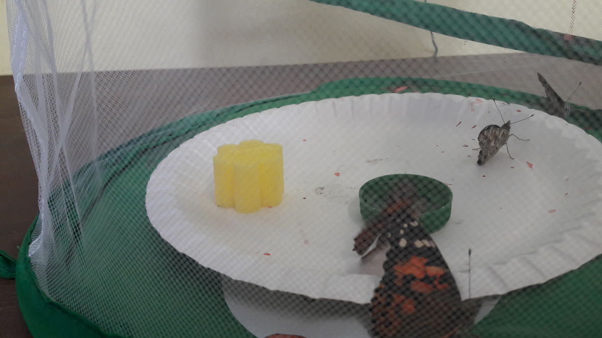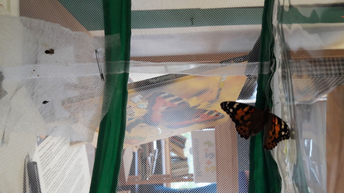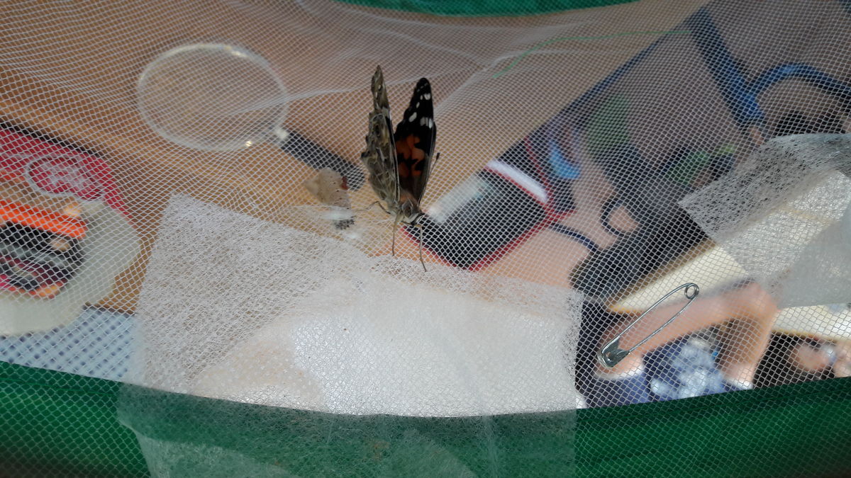 Mit großen Augen wurden die Puppen nun täglich sehr genau beobachtet. Hatte sich da etwas bewegt? Wann ist es nur soweit? Ein wenig Geduld mussten wir schon haben, aber dann war die Freude riesig. Im ersten Klassenzimmer waren aus den Puppen wunderschöne Schmetterlinge geschlüpft. Nach und nach konnten alle Schüler ihre Falter bestaunen, fast alle Raupen hatten sich in bunte Distelfalter verwandelt. Nach einigen Stunden flatterten diese in den Aufzuchtvolieren herum. Jetzt begann die große Fütterung. Eine Speziallösung wurde angerührt und auf kleine "Blütenschwämme" geträufelt. Jede frei Minute schauten die Kinder nach den Schmetterlingen und entdeckten Neues. Natürlich gehören Schmetterlinge in die Freiheit, deshalb wurden alle Distelfalter unter lautem Jubel in die Natur entlassen. Dieses Wunder ganz nah zu erleben, war wirklich ein großes Erlebnis für unsere Schüler und auch die Lehrerinnen.