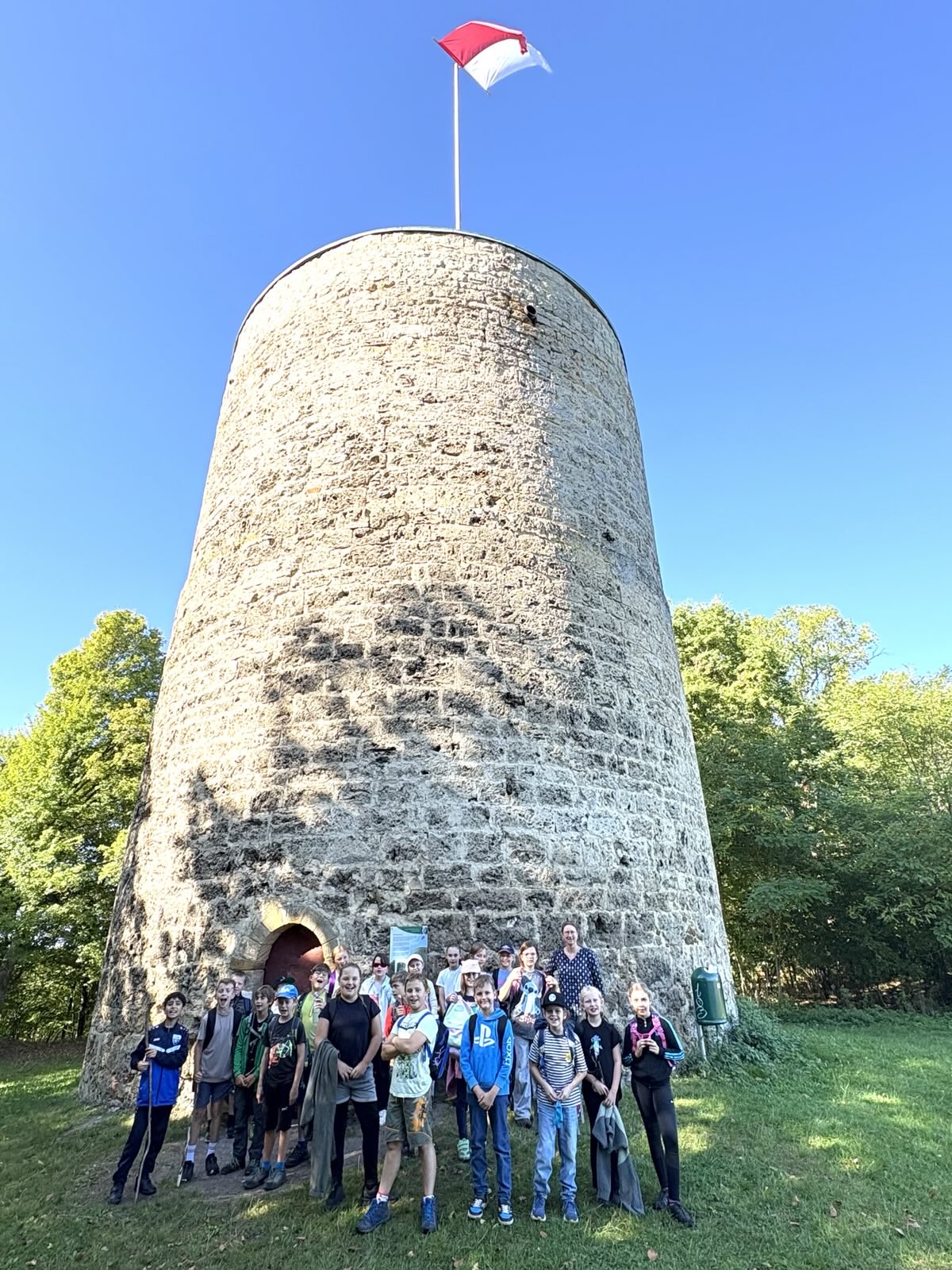 Bei wunderbarem Wanderwetter ging es für die gesamte Schule raus in die Natur. An diesem Freitag strahlten die Kinder mit der Sonne um die Wette. Die Klassen erkundeten ihre nähere Umgebung. Die beiden 1. Klassen liefen nach Limmersdorf zum Spielplatz. Dort wurde auf der Tanzlinde gefrühstückt. Ebenfalls Richtung Limmersdorf ging es für die Drittklässler. Sie hörten die Geschichte vom Fliegerdenkmal. Zur Aubachquelle wanderte die Klasse 2a und die 4. Klasse eroberte den Magnusturm in Kasendorf. Da sich unsere Schule wieder zum World-Cleanup Day angemeldet hatte, hieß es auch tüchtig Müll sammeln. Erfreulicherweise entdeckten wir nicht so viel Müll in Wald und Wiese, trotzdem brachten wir 3 kg zum Entsorgen mit in die Schule. Dafür gab es eine Urkunde dieser Aktion.