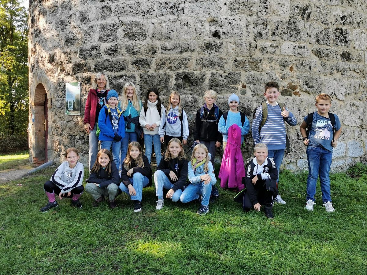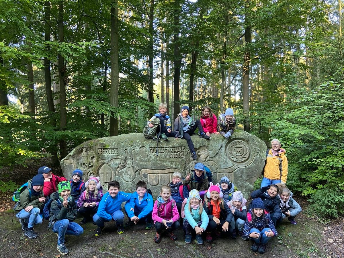Der dichte Nebel am Morgen hatte sich bereits nach wenigen Schritten verzogen und die Herbstsonne zeigte sich zum Wandertag von ihrer besten Seite. Mit gutem Schuhwerk und einer leckeren Brotzeit im Rucksack begaben sich alle Klassen auf Schusters Rappen. Auf dem Weg zur Aubachquelle, zum Magnusturm und durch den Hutschdorfer Wald gab es viel zu entdecken.