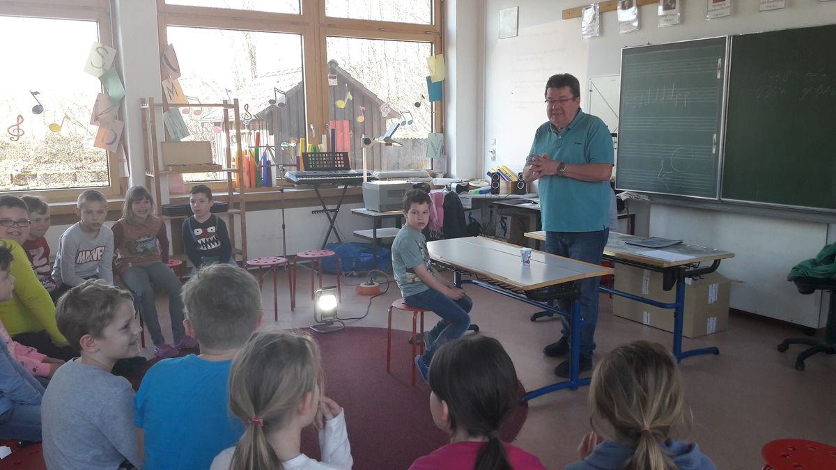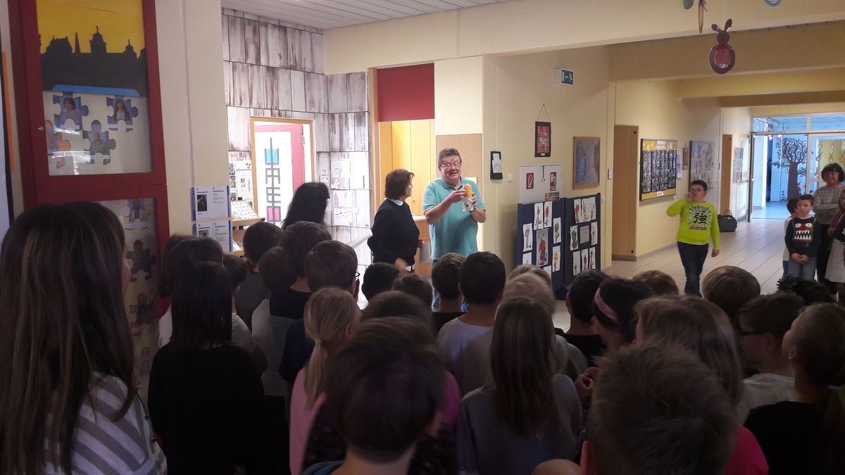 Mit vollem Einsatz und viel Freude hat ZA Herbert Weigel auf sehr unterhaltsame und kindgemäße Art und Weise die Notwendigkeit richtiger Zahnpflege erklärt. Mit seiner Super-Quizshow vermittelte er Wissen rund um den Zahn und konnte, wie jedes Jahr, die Kinder begeistern. Bei seiner Abschiedstournee in diesem Jahr wurde er nun von den Schülern überrascht. Heimlich schlichen sich alle Klassen und die Lehrer in die Aula und gaben ein besonderes Ständchen für ihn. Beim -weit über die Grenzen von Thurnau- bekannten "Zahnputzlied" fehlten ihm beinah die Worte. Wir sagen ganz herzlich DANKESCHÖN!